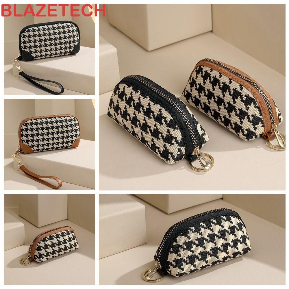Blazetech กระเป๋าสตางค์สไตล์ยาว, หนัง Pu ผ้าใบ Houndstooth กระเป๋าซิป, กระเป๋ากุญแจรถแบบพกพาผู้ถือบัตรกระเป๋าใส่เหรียญสแควร์เปลี่ยนกระเป๋าเดินทาง