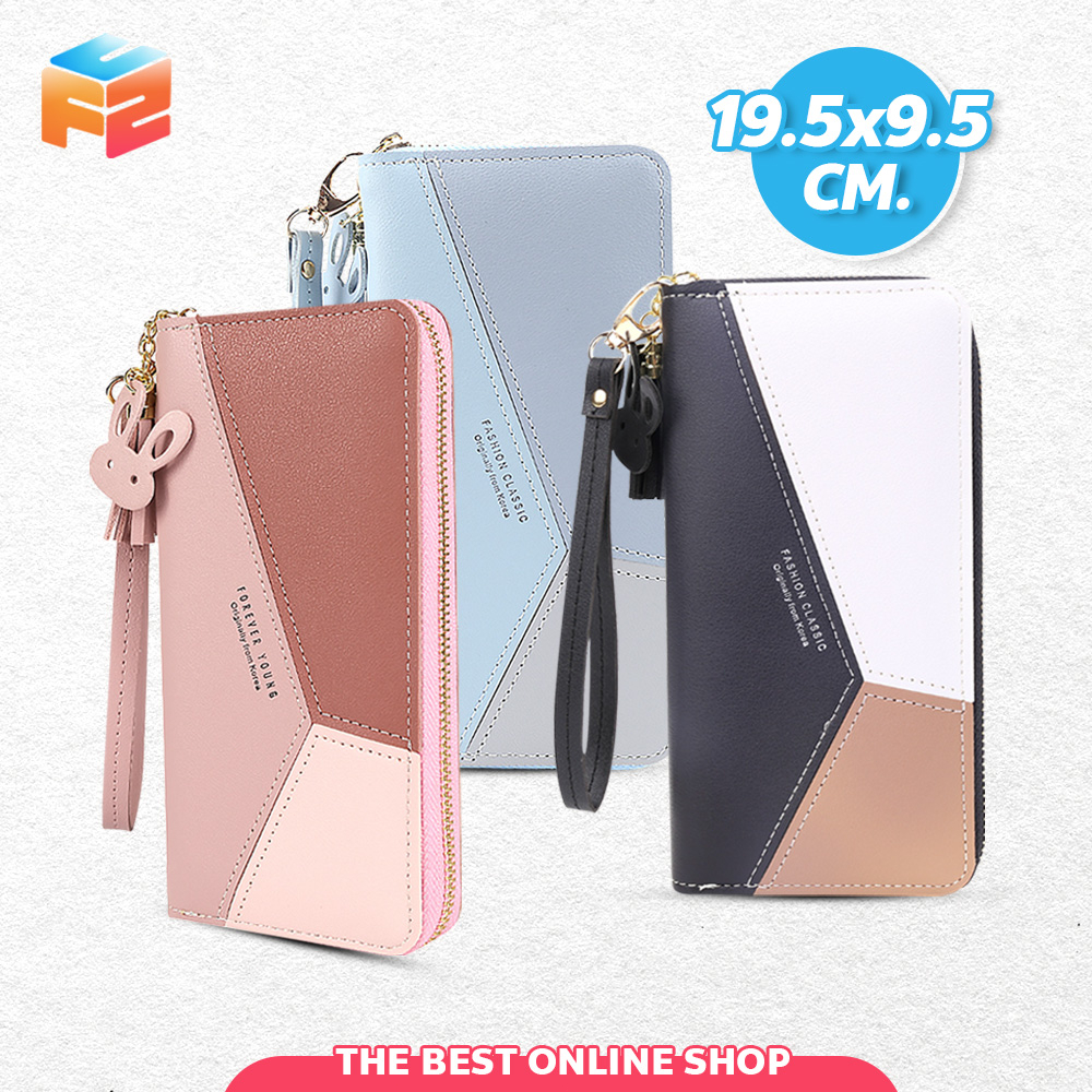 F2C กระเป๋าสตางค์ใบยาว กระเป๋าเงินผู้หญิง Fashion Classic 3 เฉดสี(ซิปรอบ)