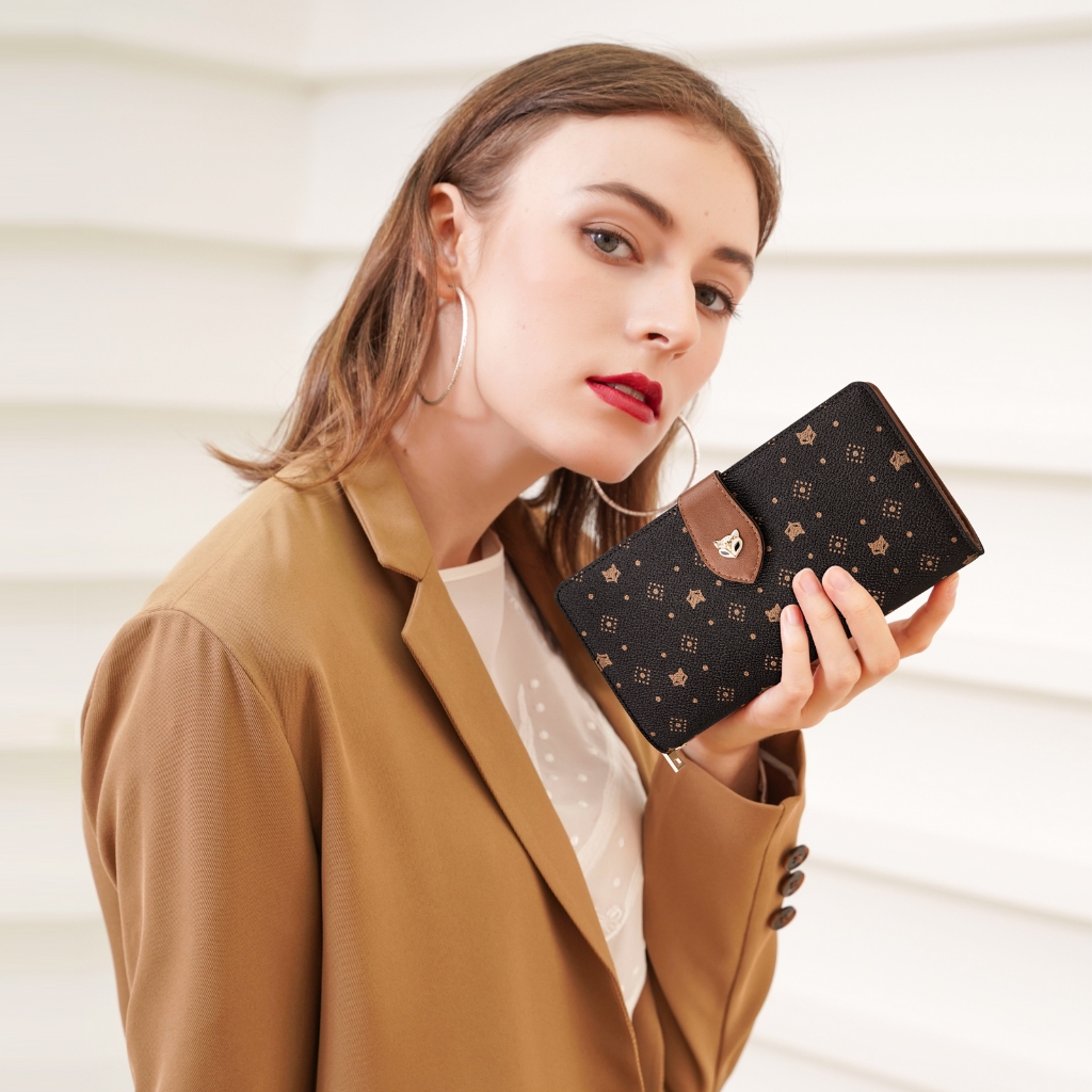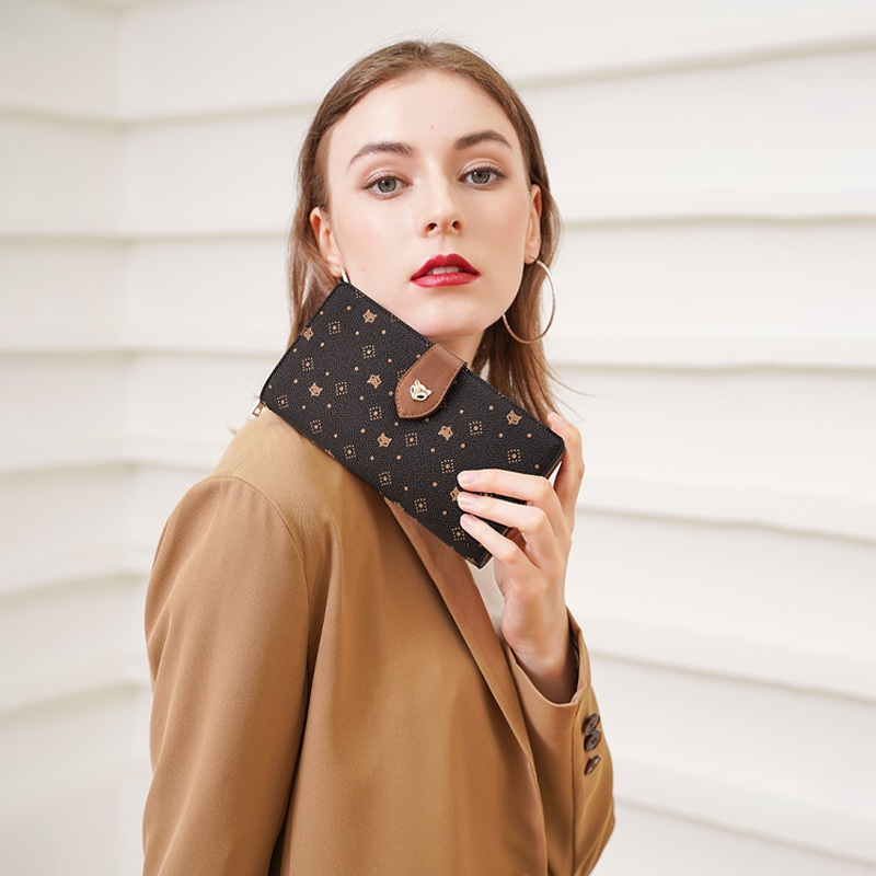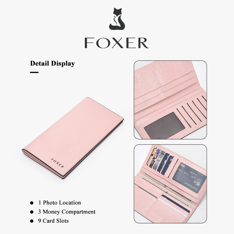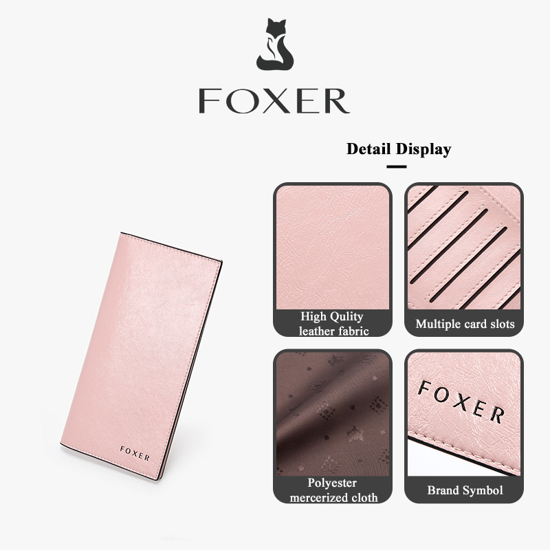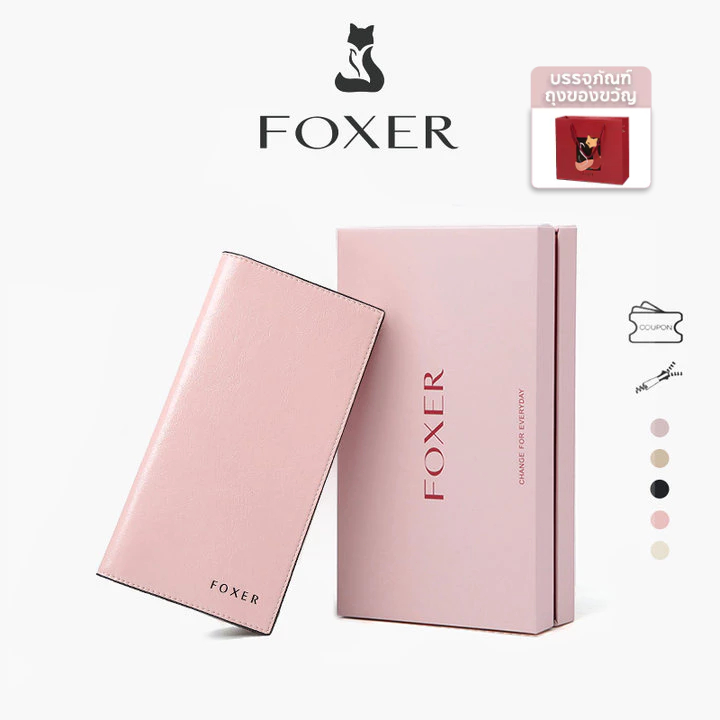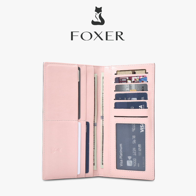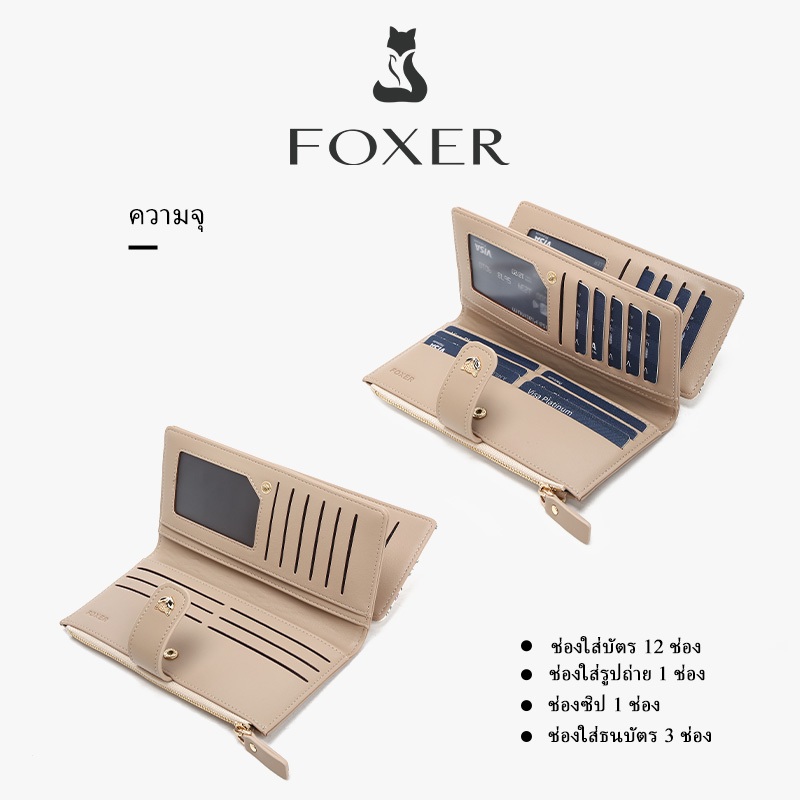 FOXER กระเป๋าสตางค์ผู้หญิง กระเป๋าสตางค์หนังยาว ที่ใส่บัตรเครดิต กระเป๋าคลัตช์อเนกประสงค์