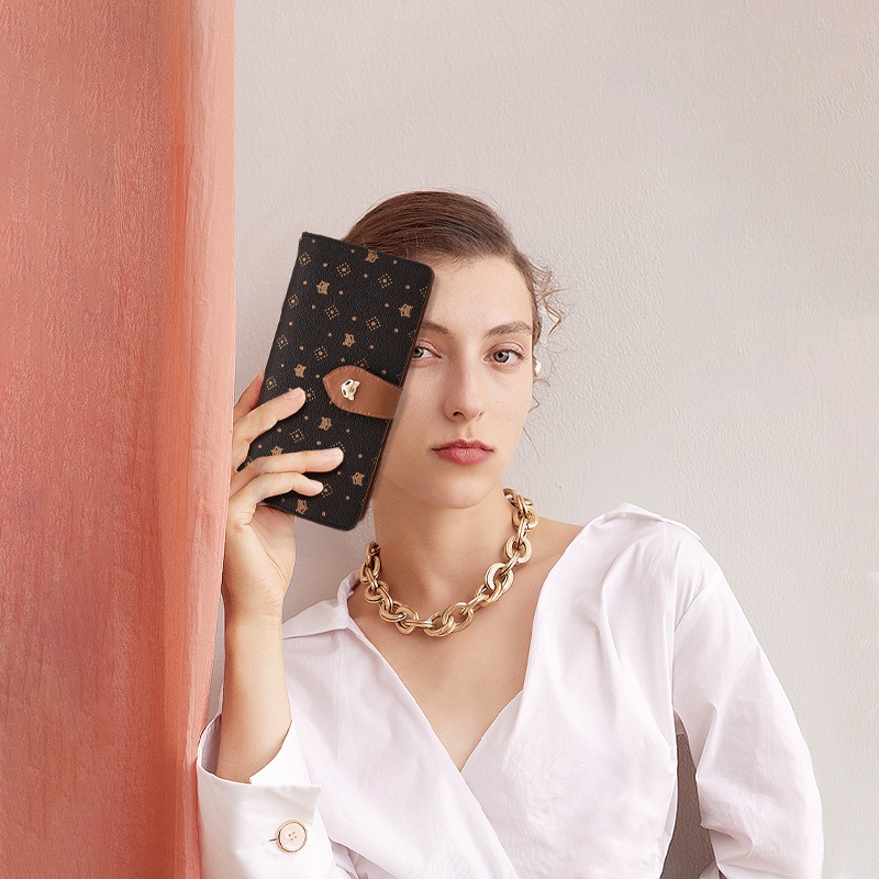 Cowhide Wallet Women Long Wallet Ultra-Thin Hot-sell Clutch Wallet Niche Design ประณีต