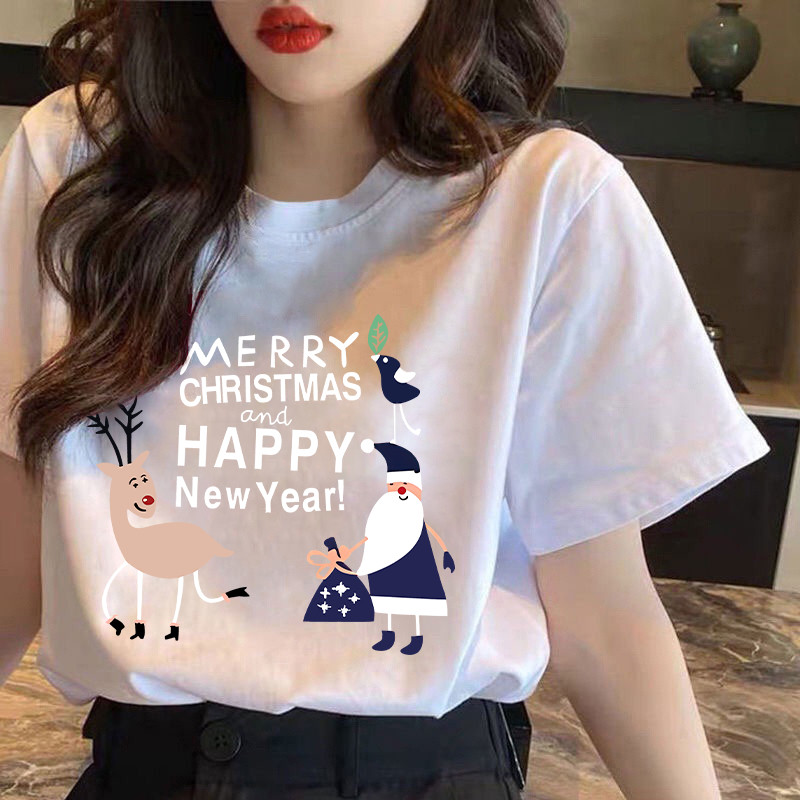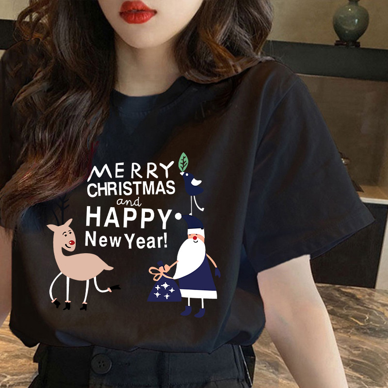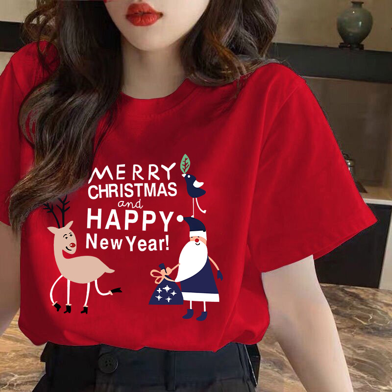??เสื้อคริสมาสต์ Happy New Year & Merry Christmas ลายน่ารักๆ ผ้า Cotton ใส่สบาย สีสันสดใส ขนาด M-3XL