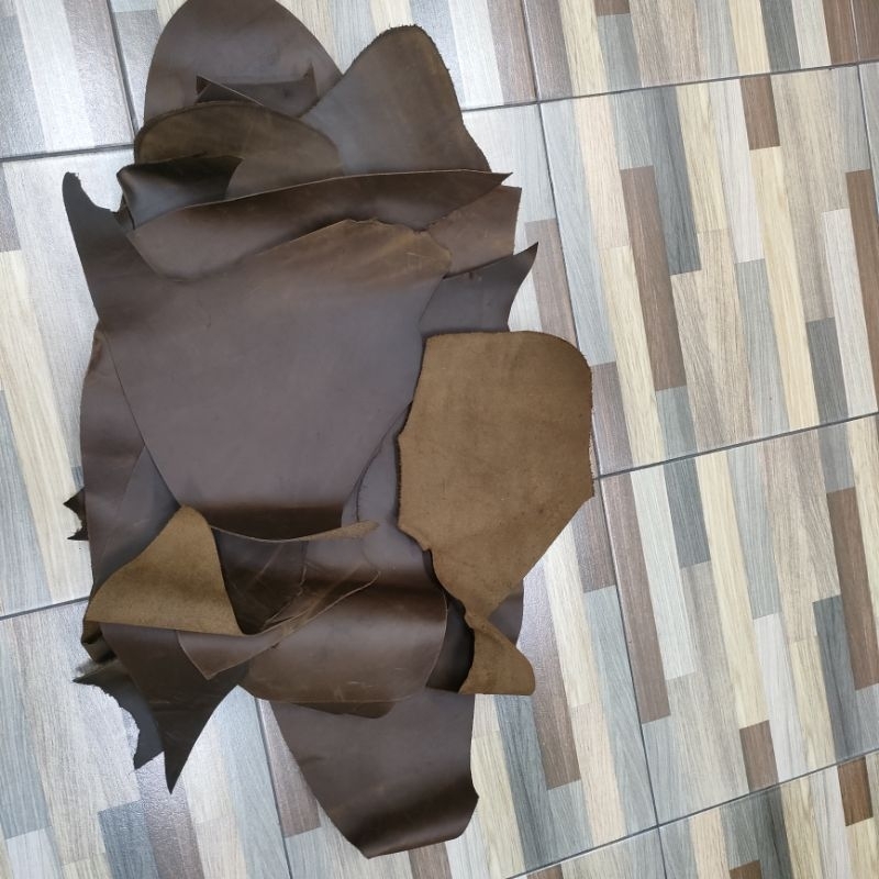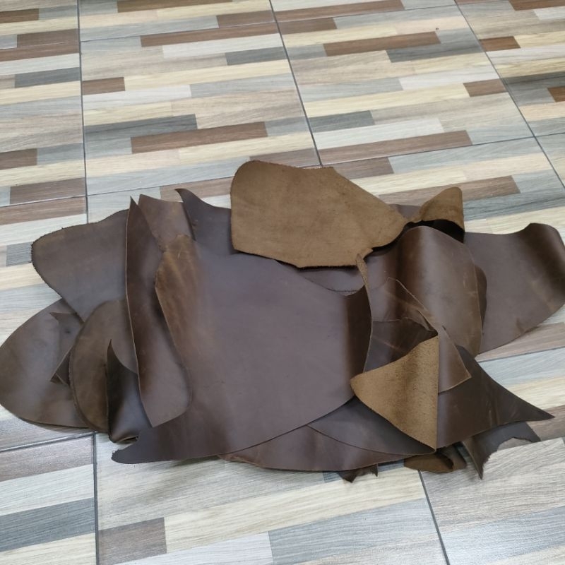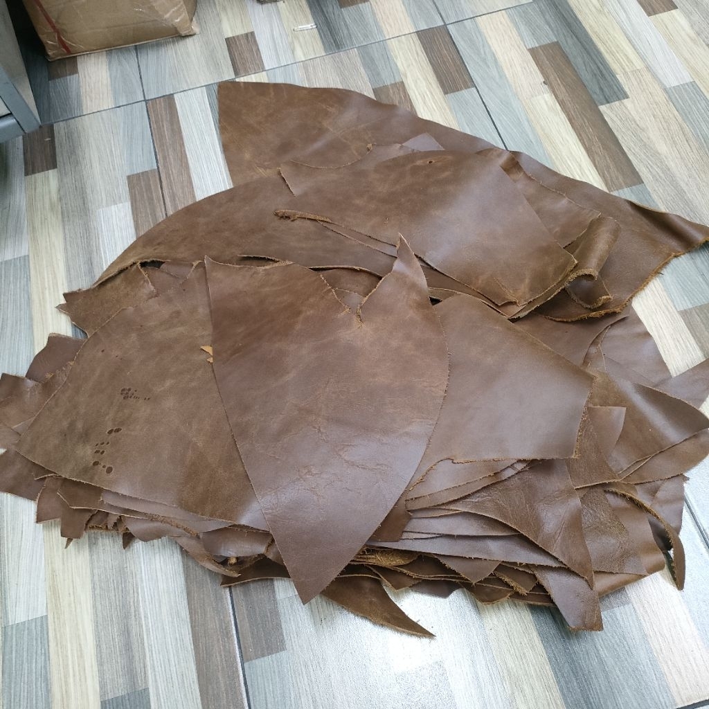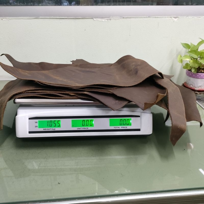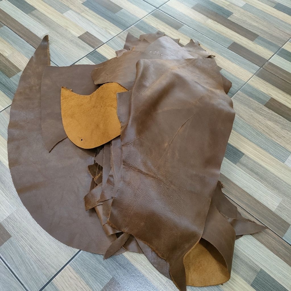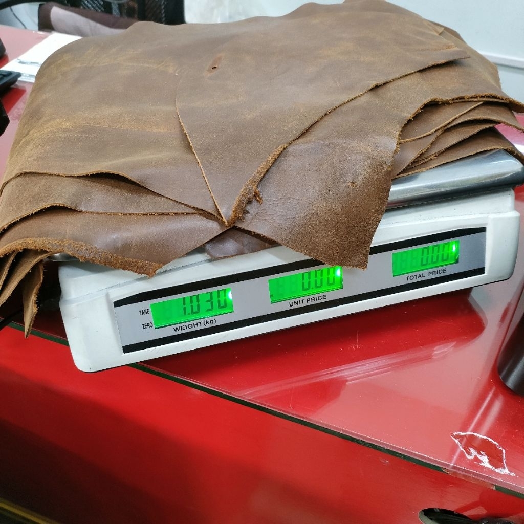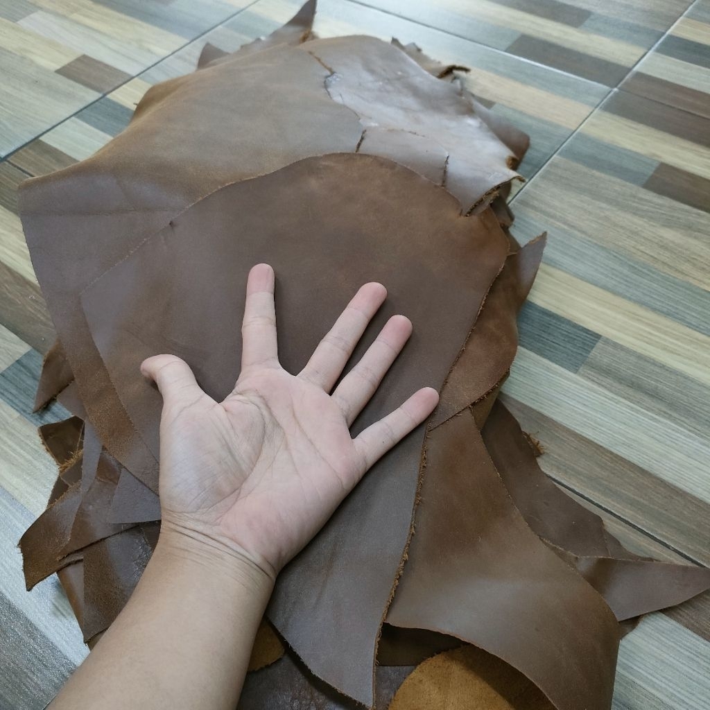 เศษหนังแท้- ออยเครซี่ : หนังออยเครซี่ /หนา 1.2-1.8 มม./ขนาด:ใหญ่กว่าฝ่ามือขึ้นไป,2ฝ่ามือ