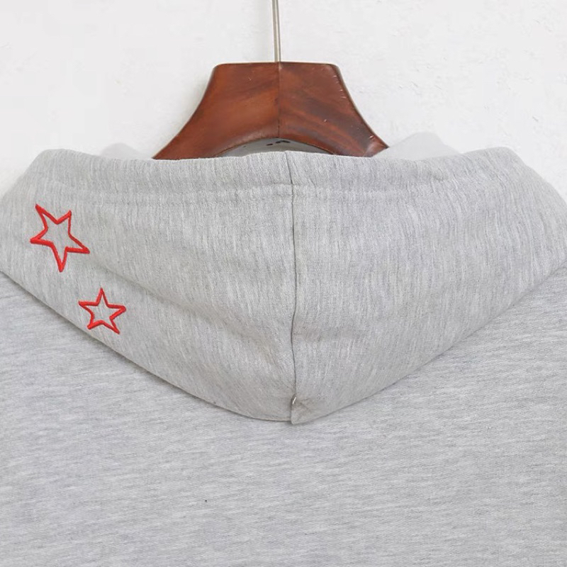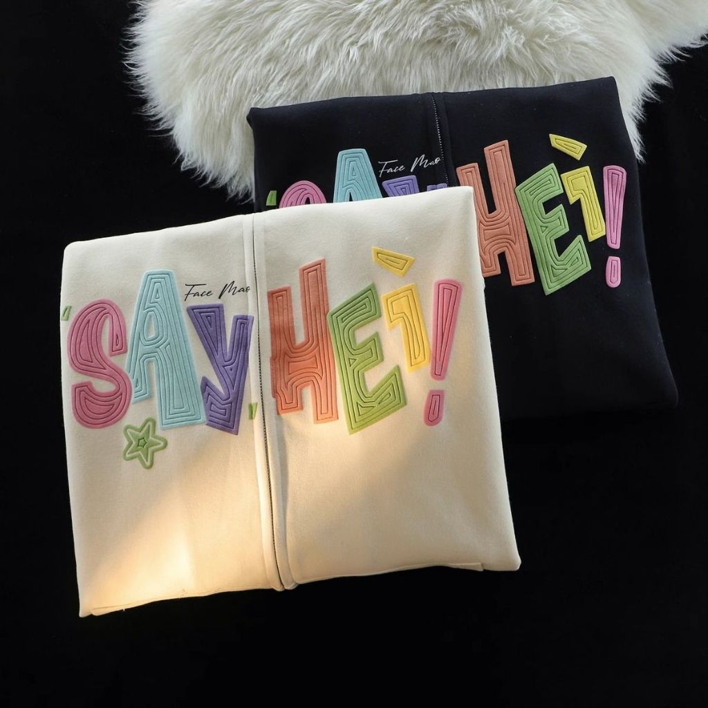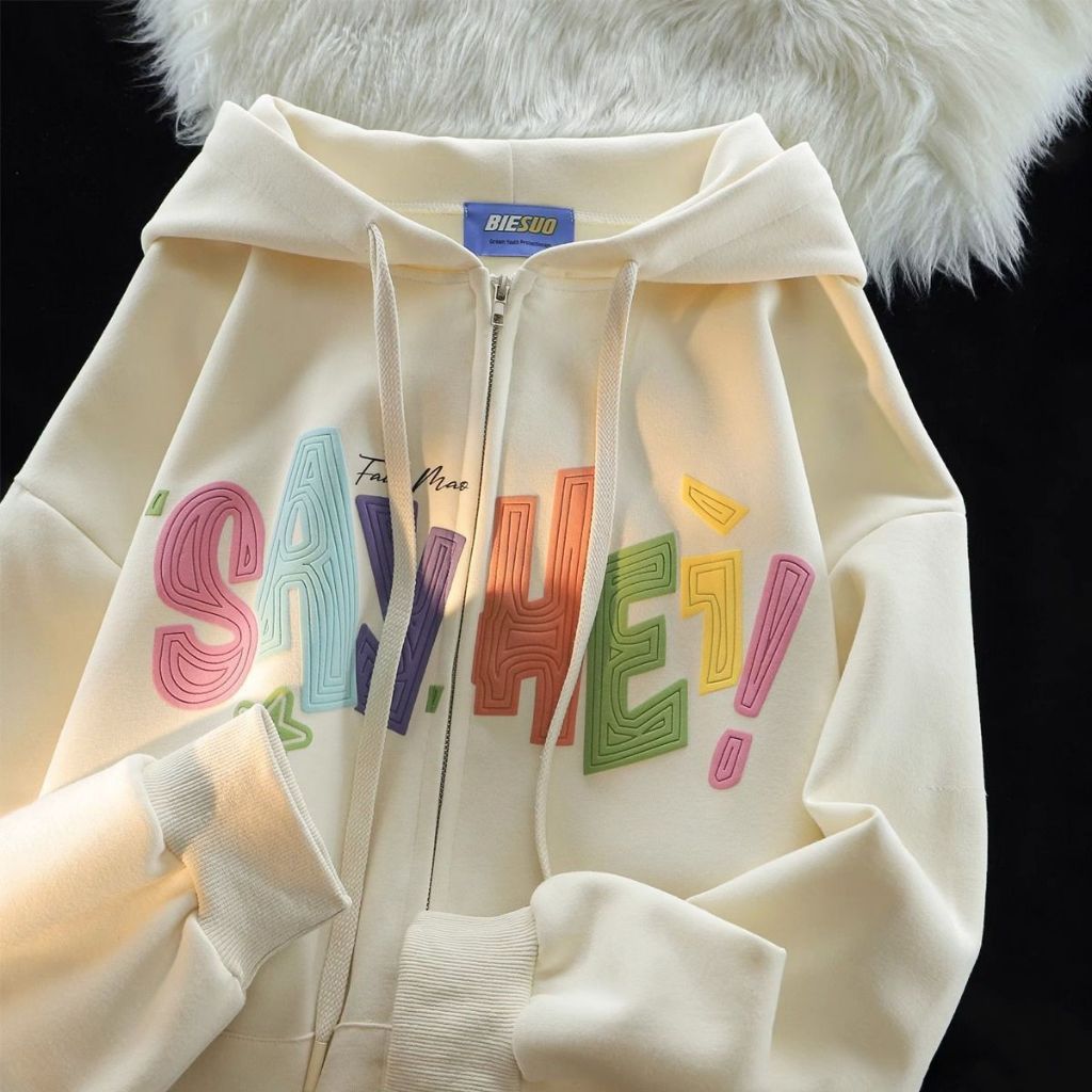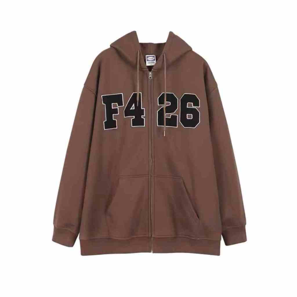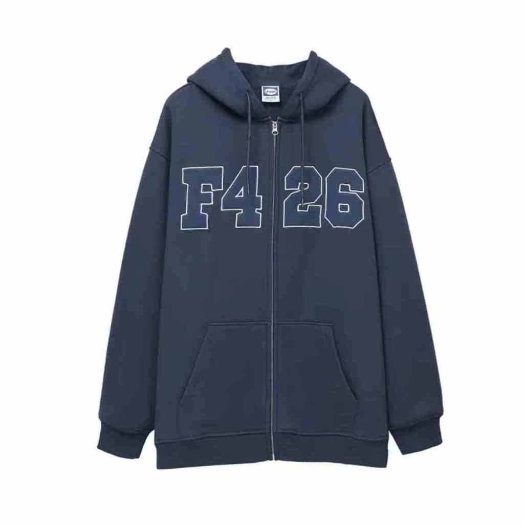 MIUCHO 2473 Boxy Zip Hoodie Jacket คุณภาพสูงหนา Basic Double หนังขนแกะ Easy to Coordinate พิมพ์ Typography