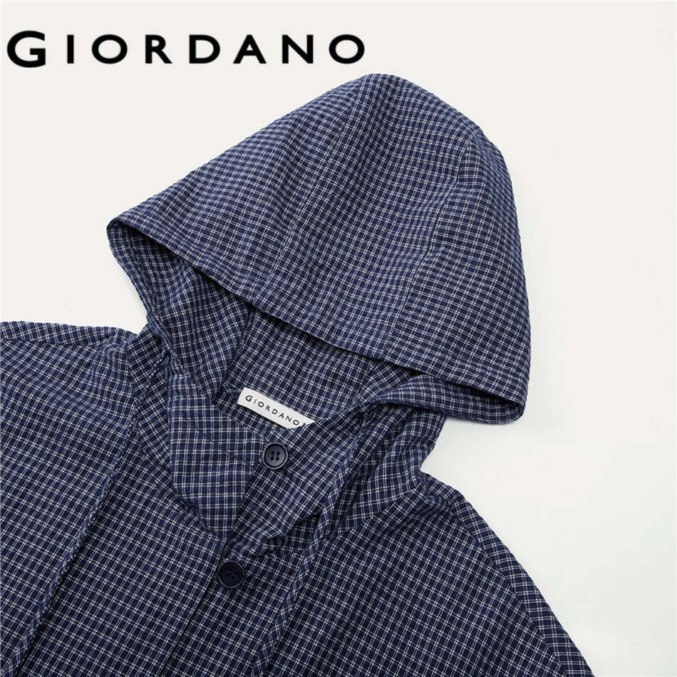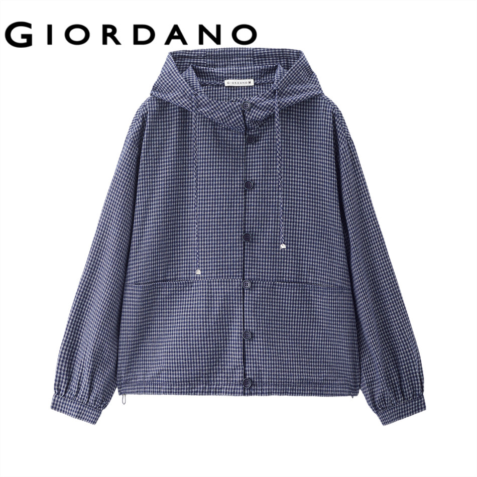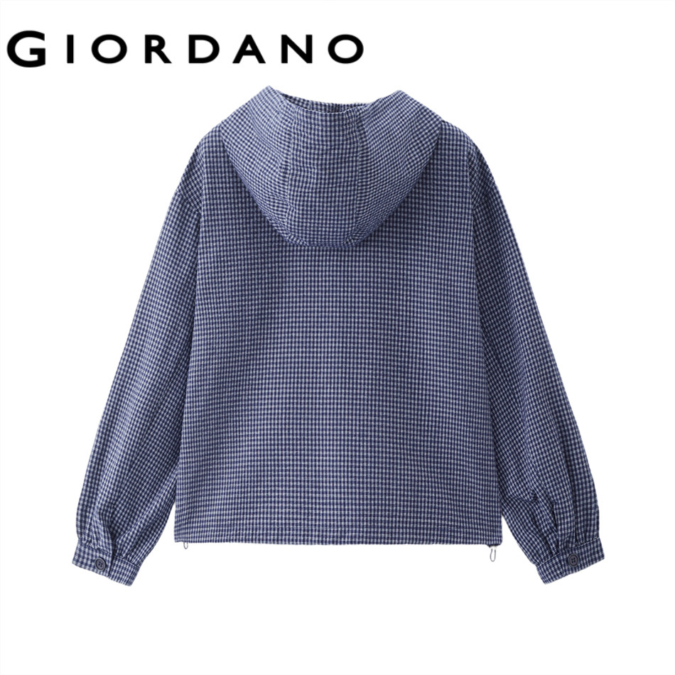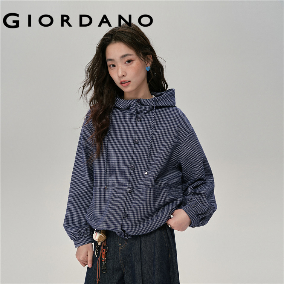 GIORDANO WOMEN Mini plaid drawstring hooded jacket 18375806