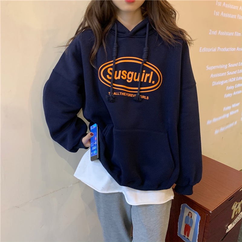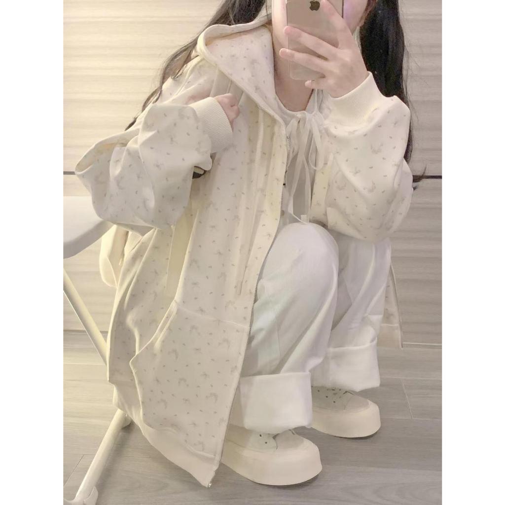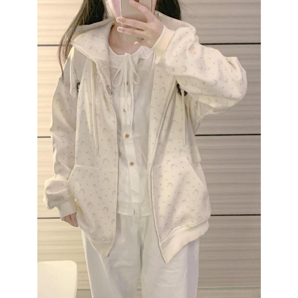 MOSESQUEEN มอสส์ ราชินี เสื้อกันหนาวมีฮู้ดสำหรับผู้หญิง ทรงหลวมสวมใส่ง่าย เหมาะสมแก่การใช้งานทั่วไปและการช้อปปิ้ง #63244