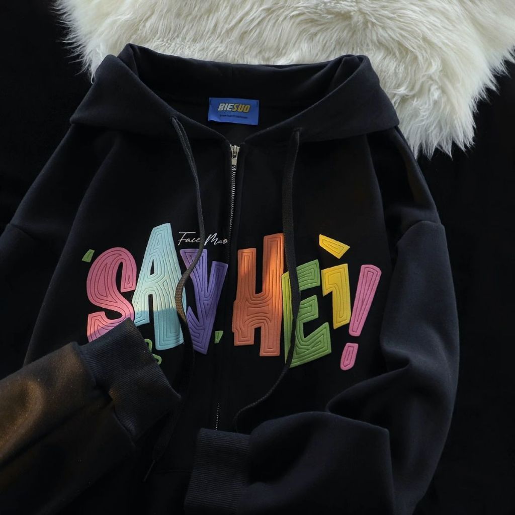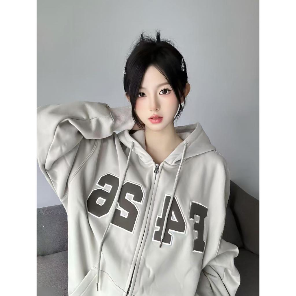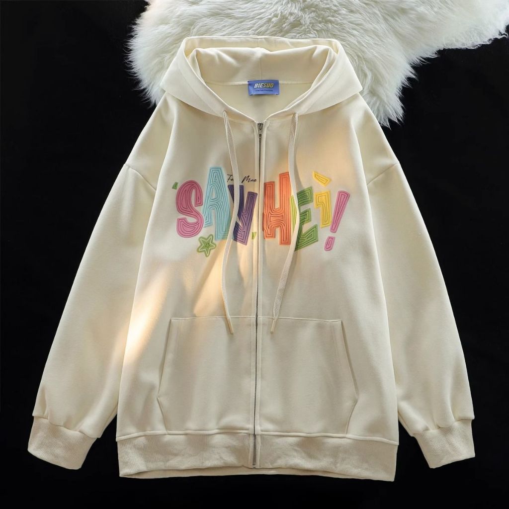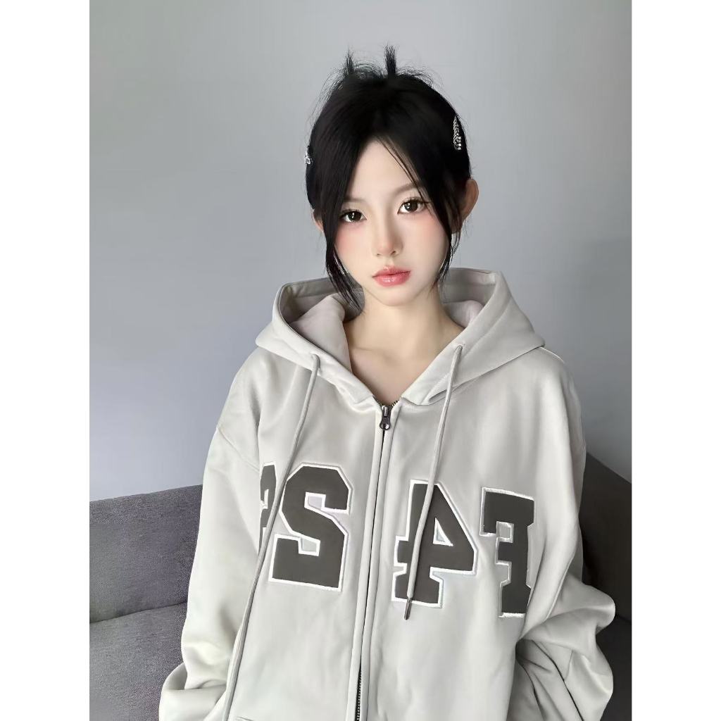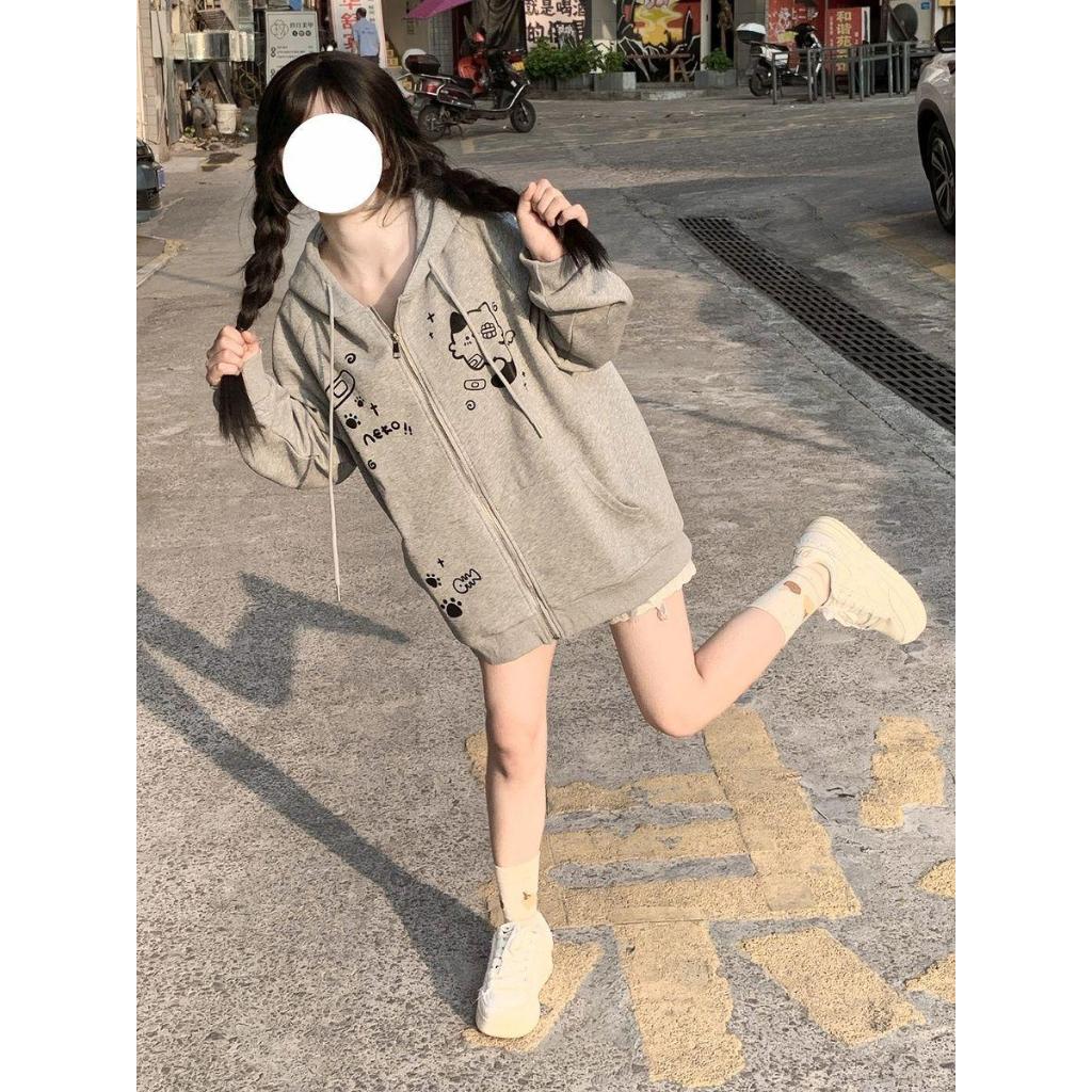 KKS⭐️พร้อมส่ง⭐️เสื้อฮู้ดแขนยาวมีซิป เสื้อกันหนาวสไตล์เกาหลี ทรงหลวม ใส่สบาย 83569