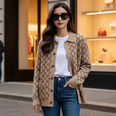 GoodNine พร้อมส่ง เสื้อแขนยาวไหมพรมสวยหรูดูดีผ้าเนื้อเนียนนุ่มเกรดคุณภาพทอลายแบรนด์ทั้งตัว