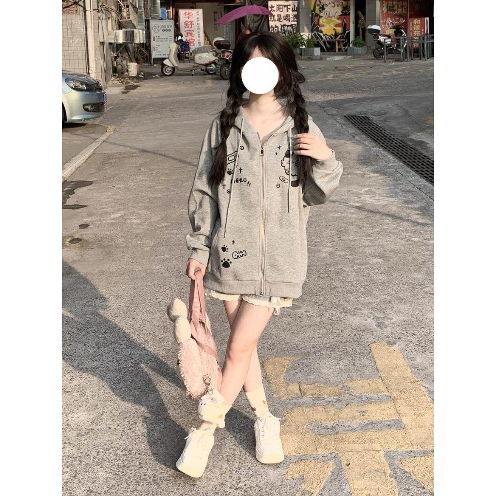 KKS⭐️พร้อมส่ง⭐️เสื้อกันหนาว เสื้อฮู้ด แขนยาว สไตล์เกาหลี ลายน่ารัก ใส่สบาย ทรงหลวม #91513