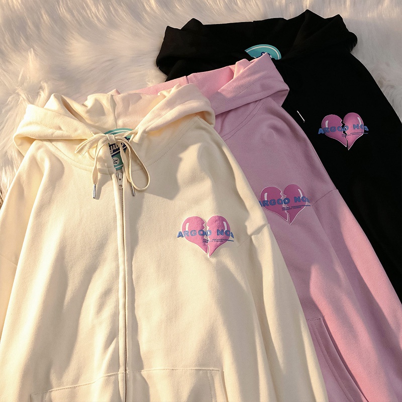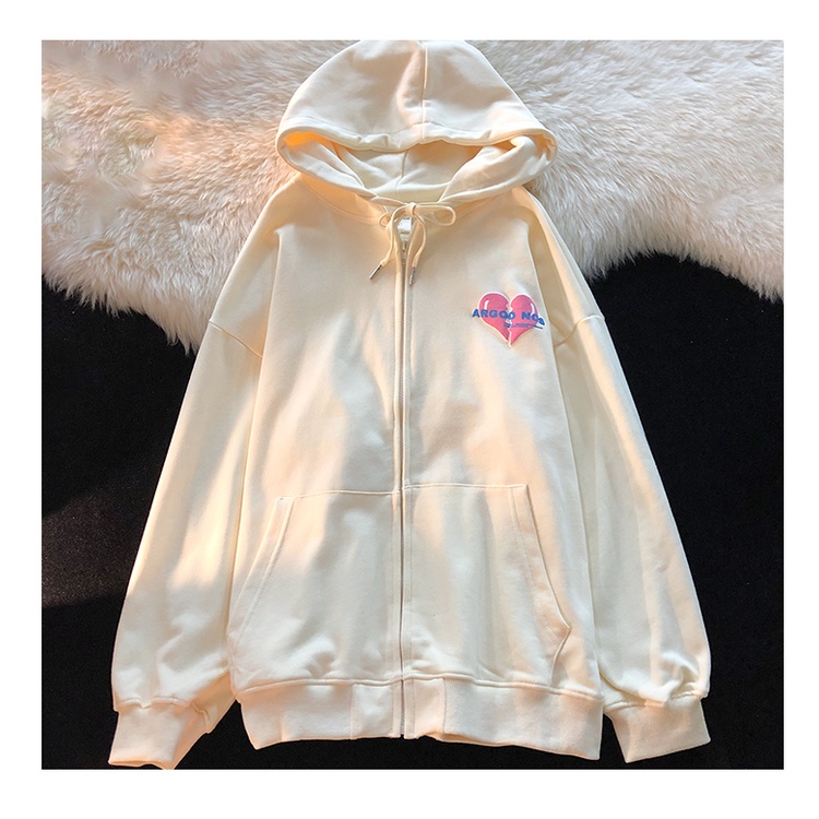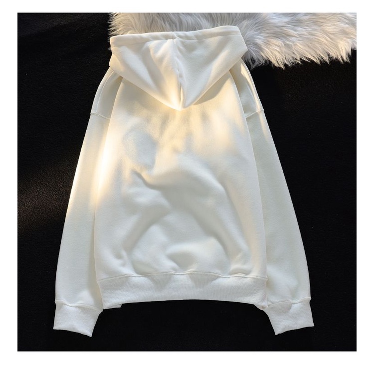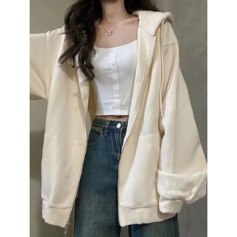 ฤดูใบไม้ร่วงใหม่ญี่ปุ่นสีครีมสุดน่ารักซิปขนาดใหญ่เสื้อกันหนาวหมวกผู้หญิงกํามะหยี่หลวมสไตล์วิทยาลัยคลุมด้วยผ้า