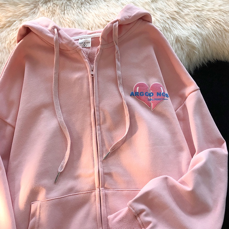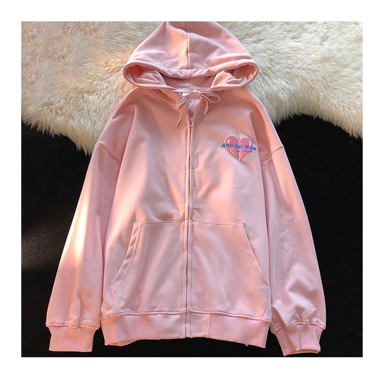หมีหูแขนยาวซิปเสื้อกันหนาวหมวกผู้หญิงญี่ปุ่นหวานหวานสบายๆด้านบน