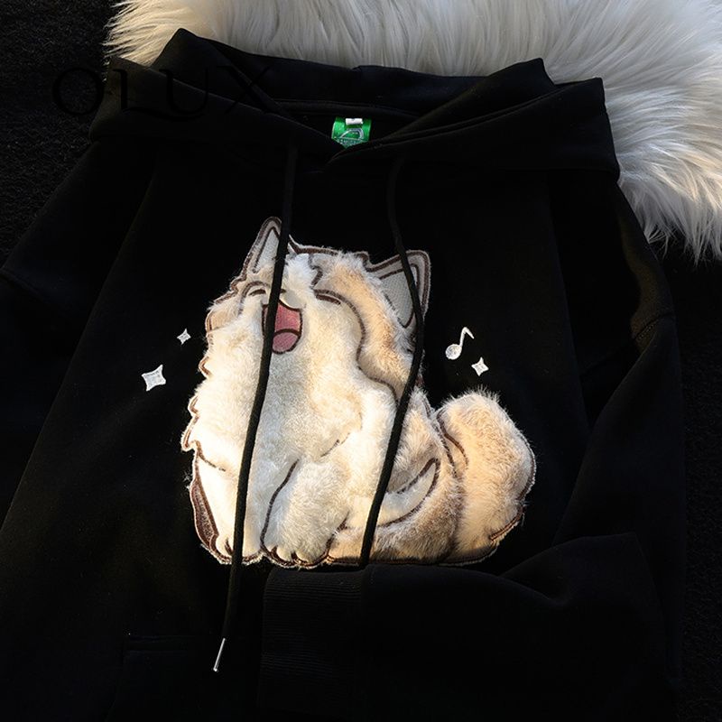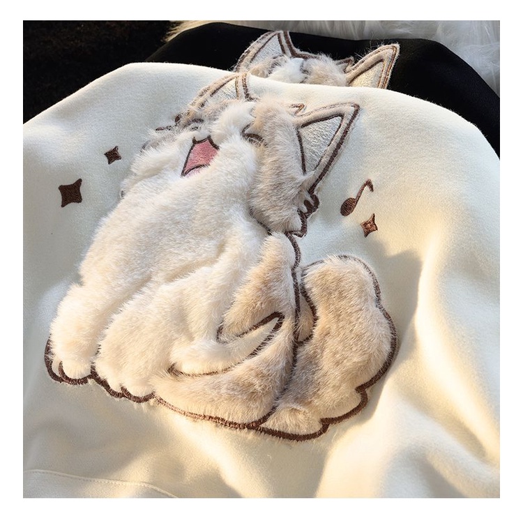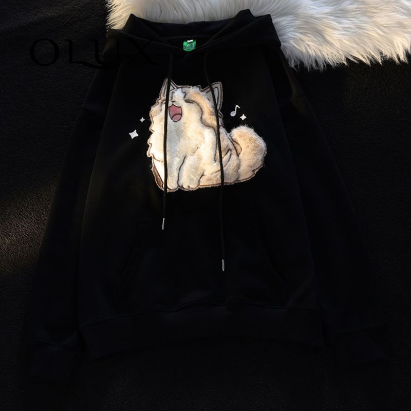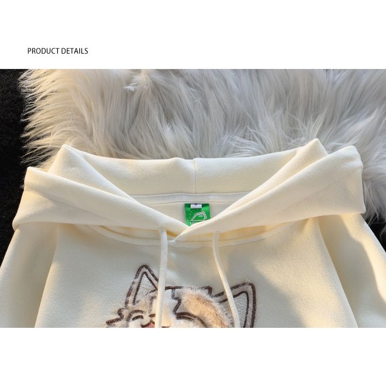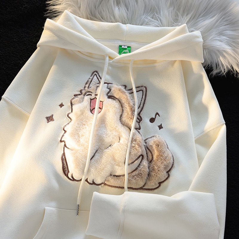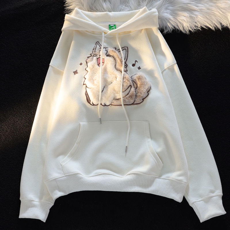 เสื้อกันหนาว มีฮู้ด ปักลายแมวน่ารัก ทรงหลวม เข้ากับทุกการแต่งกาย แฟชั่นฤดูใบไม้ผลิ และฤดูใบไม้ร่วง สไตล์ญี่ปุ่น สําหรับผู้หญิง