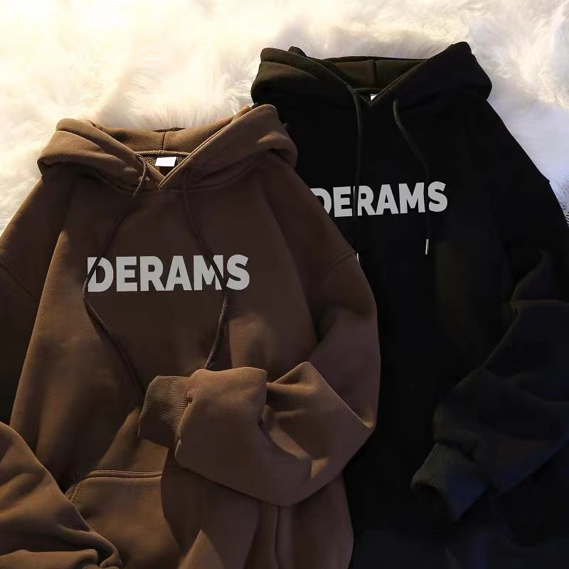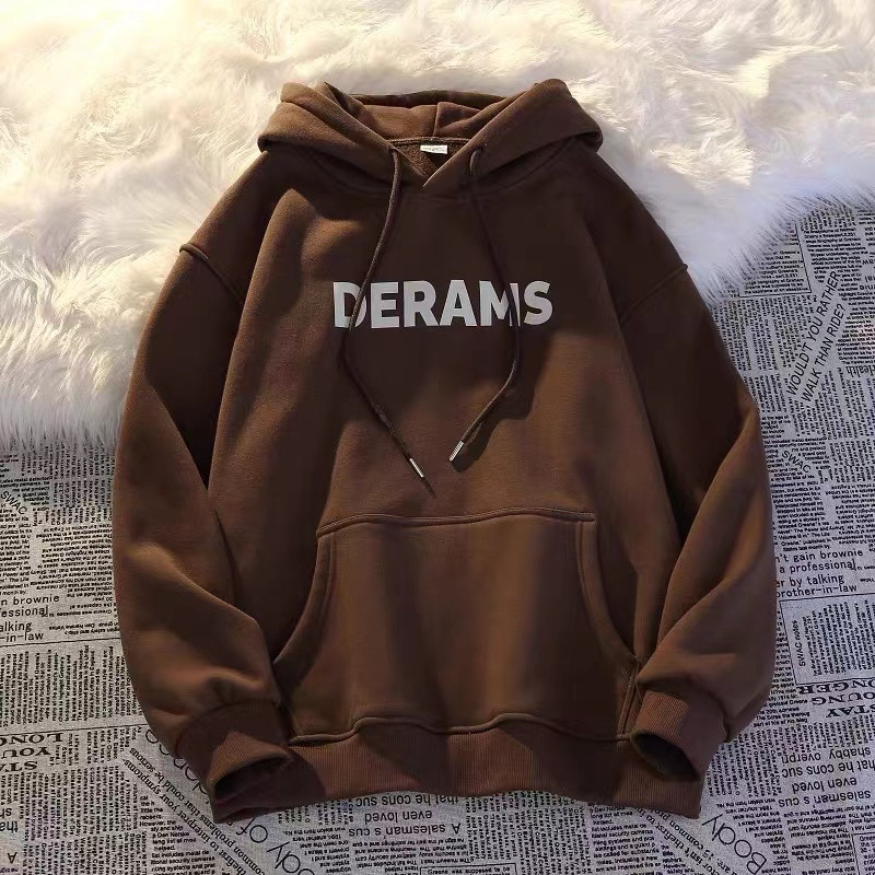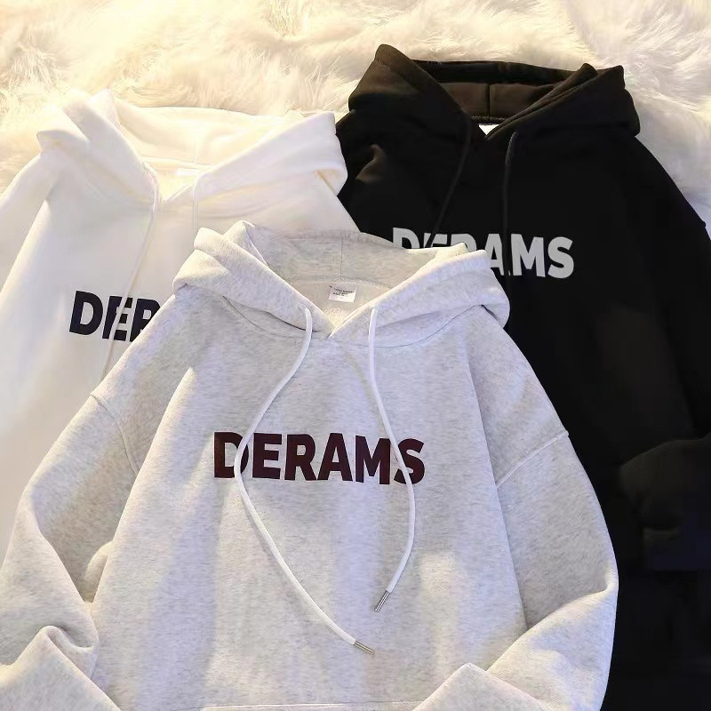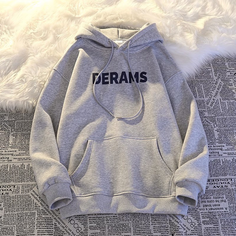 ฮาราจูกุผู้หญิงแขนยาวเสื้อกันหนาวหมวก ไม่จํากัดเพศ จดหมายหลวมเสื้อกันหนาวสไตล์เกาหลีเสื้อลําลอง