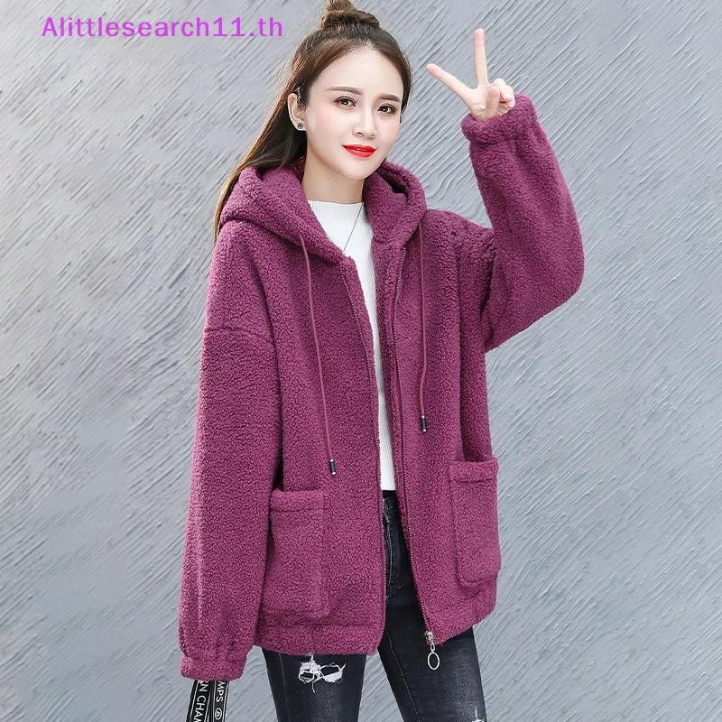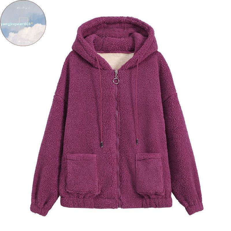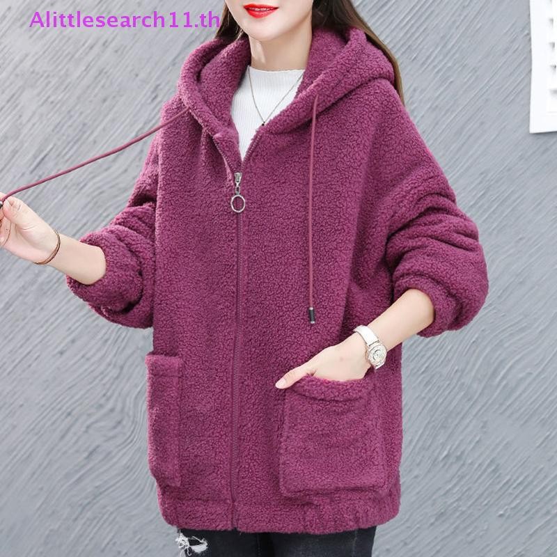 อบอุ่นและสวยงาม เสื้อกันหนาวมีฮู้ด สีชมพูเข้ม คาร์ดิแกนซิปแขนยาว6สี M-2XLเสื้อคลุมสีดำ