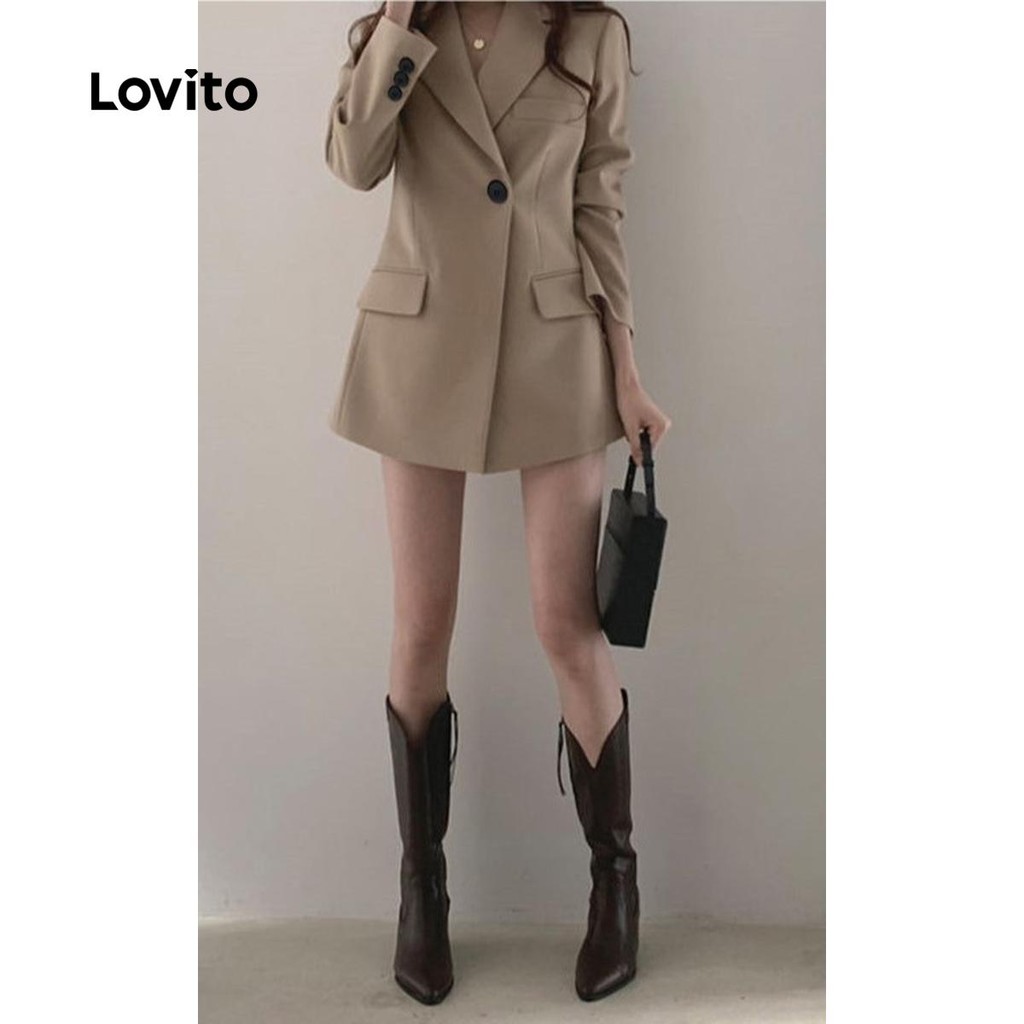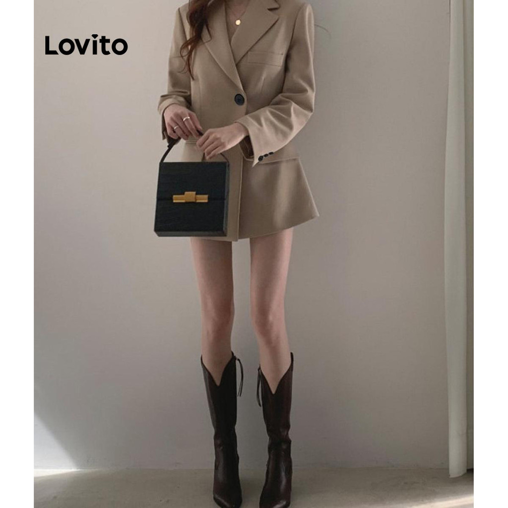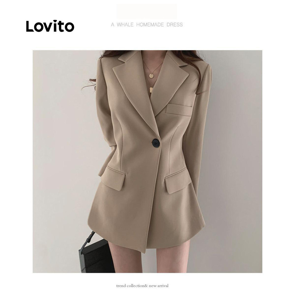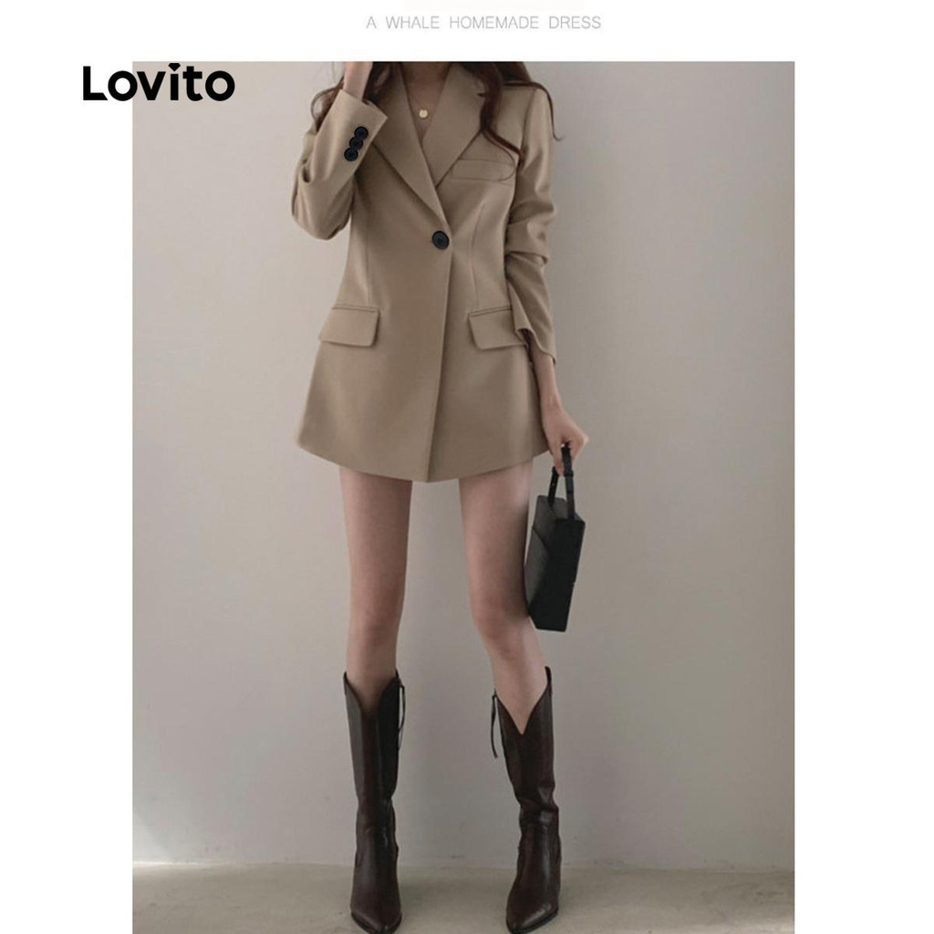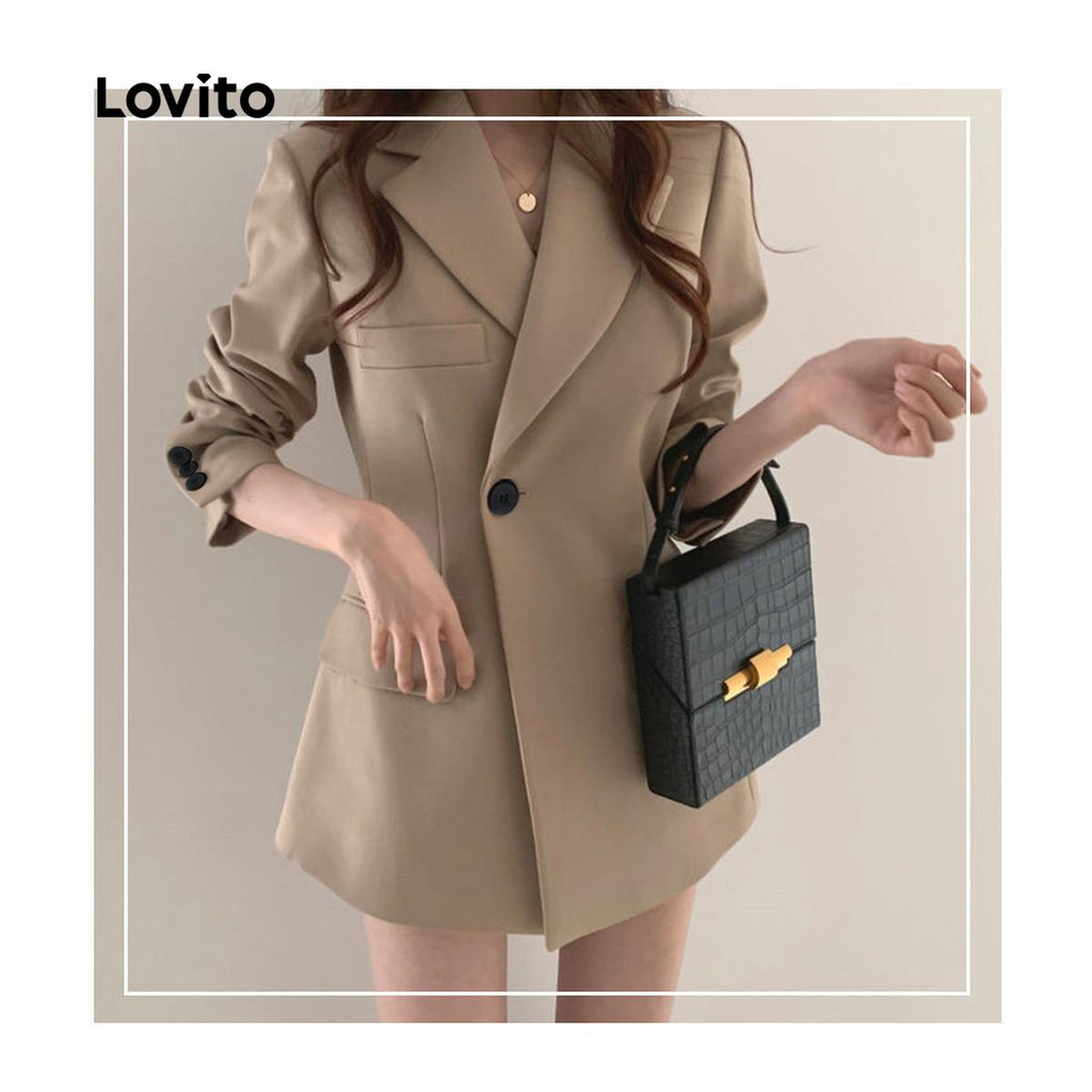 Lovito เสื้อเบลเซอร์ทรงสวยเก๋ติดกระดุมธรรมดาสำหรับฤดูใบไม้ร่วง/ฤดูหนาวสำหรับผู้หญิง LNL101618