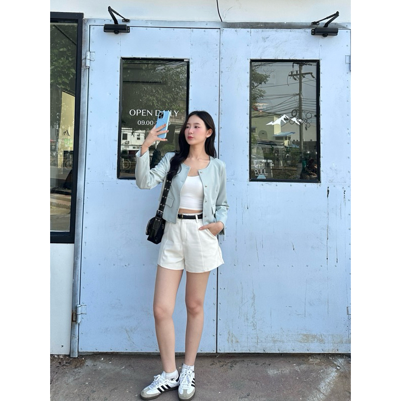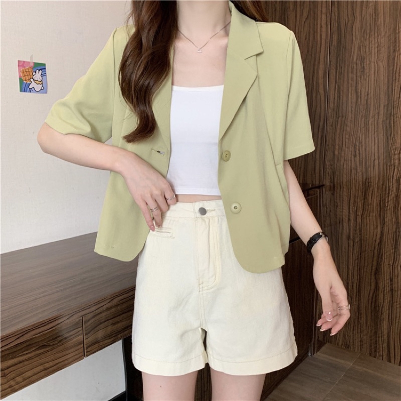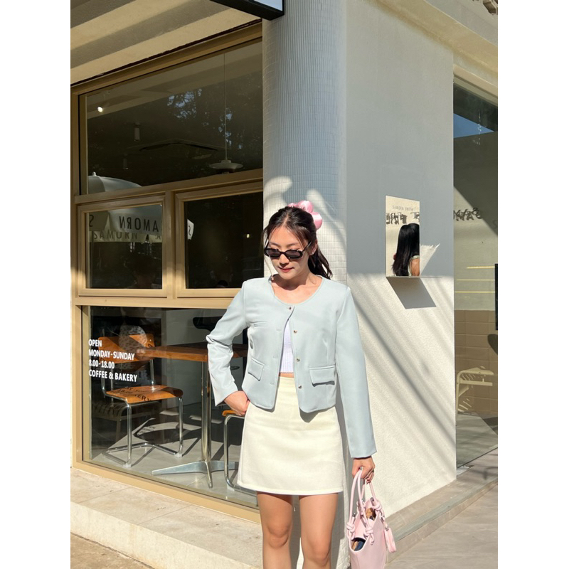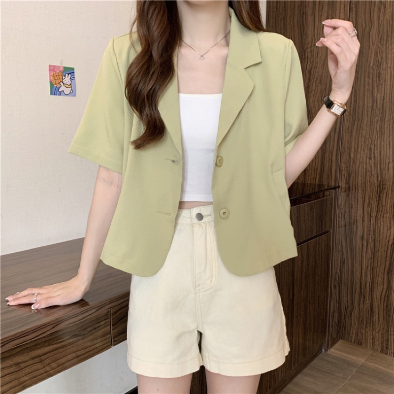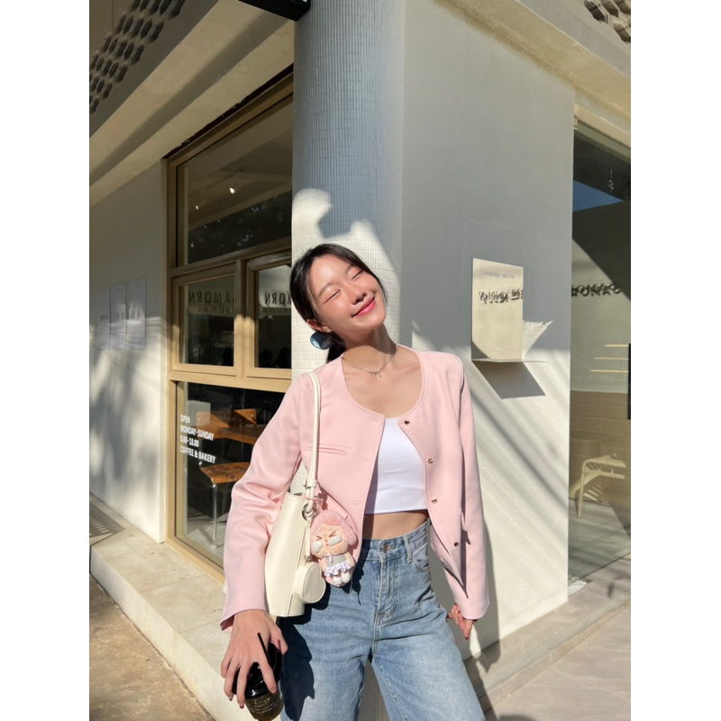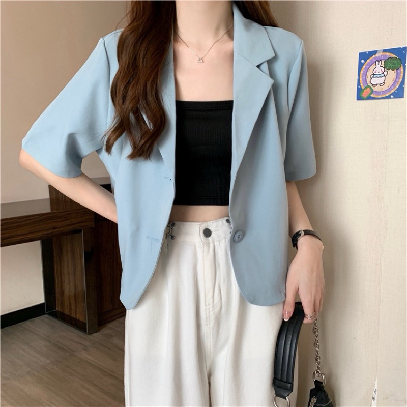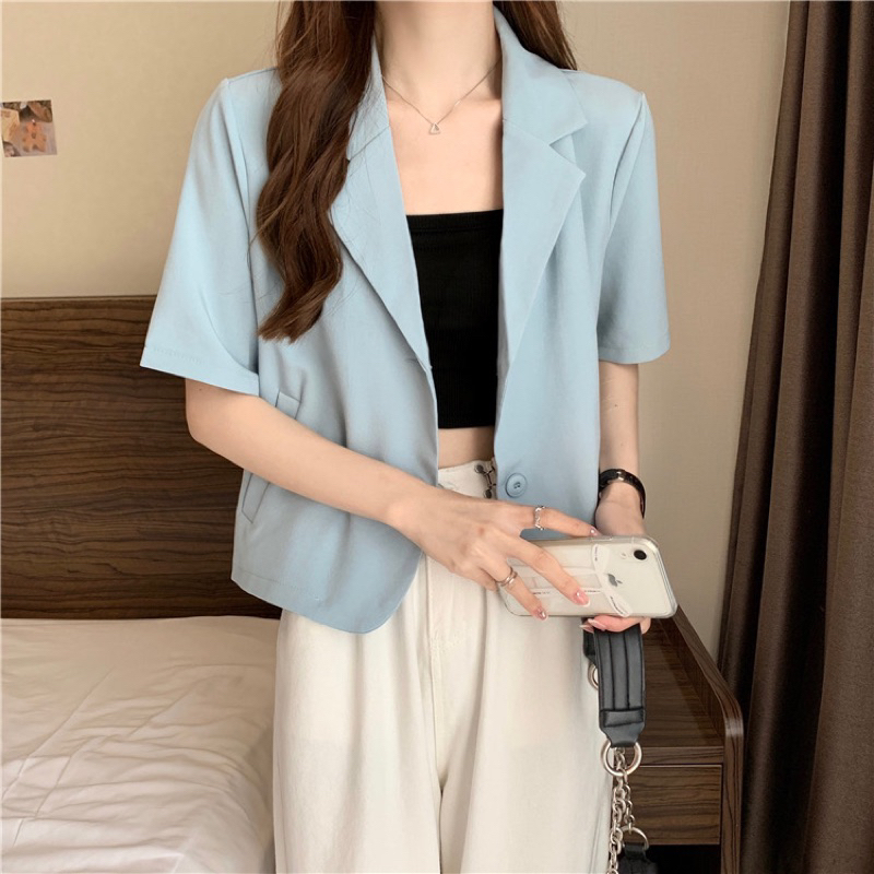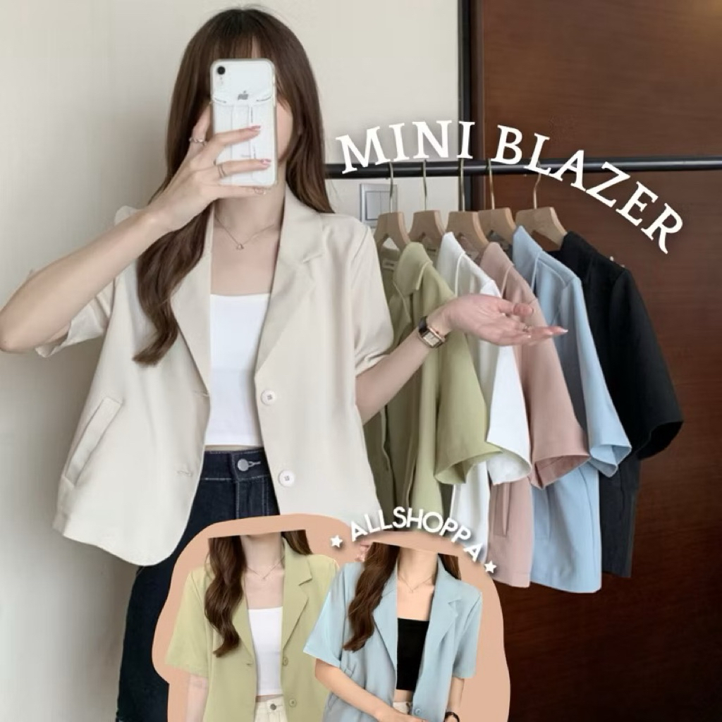 Mini Pastel Blazer | Allshoppa เสื้อคลุมเบลเซอร์ทรงครอป สีพาสเทล เสื้อคอปก ลุคทำงาน ผ้านิ่มใส่สบาย