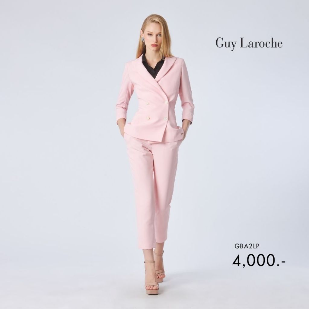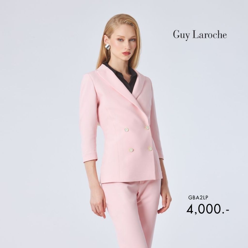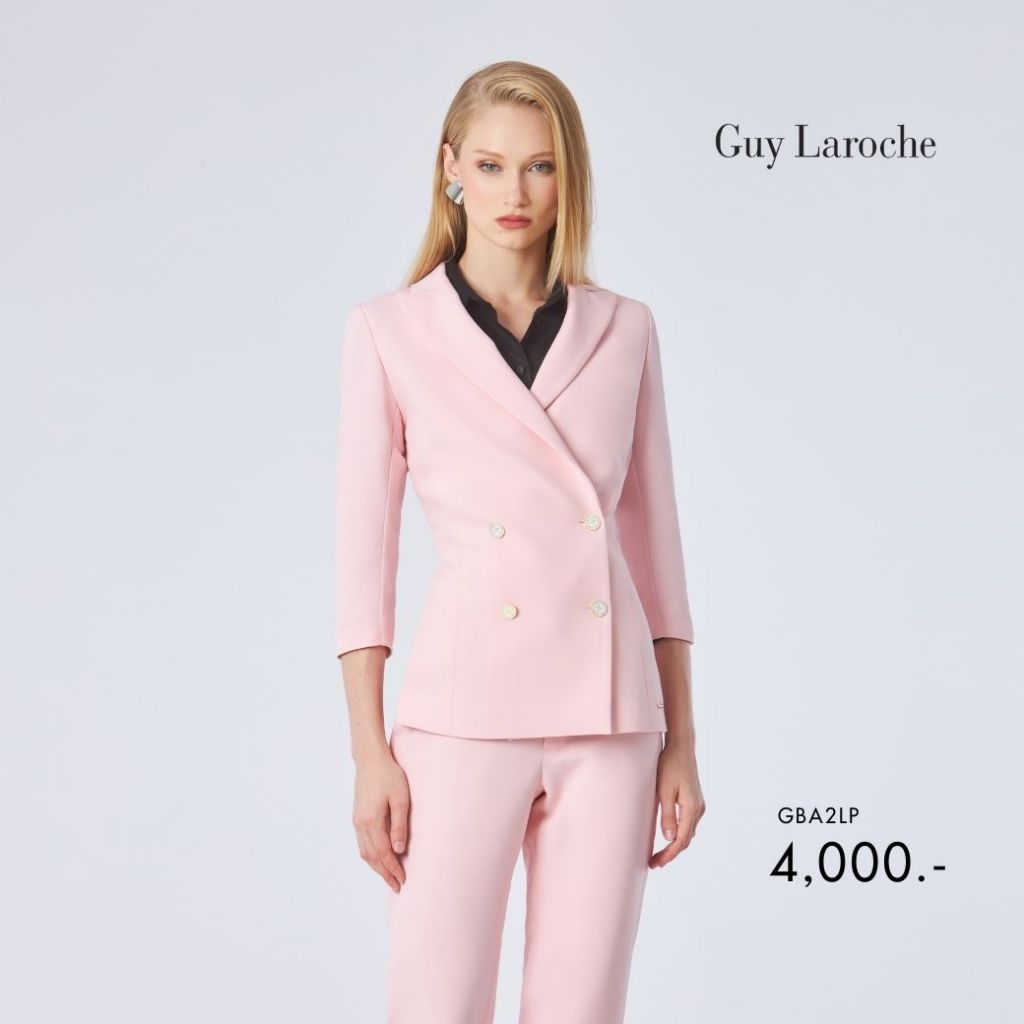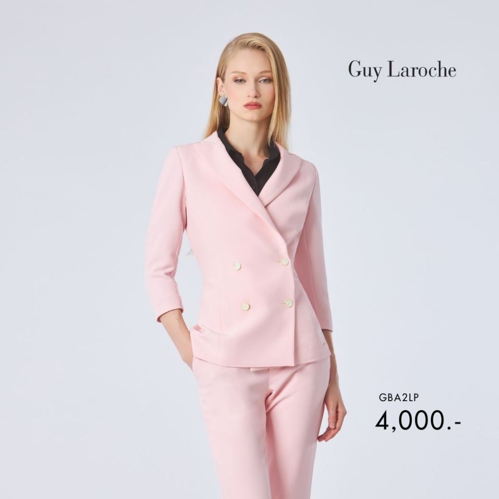 Guy Laroche แจ็คเก็ตทรงเข้ารูป แขนสามส่วน กระดุม 4 เม็ด สีชมพู GBA2LP