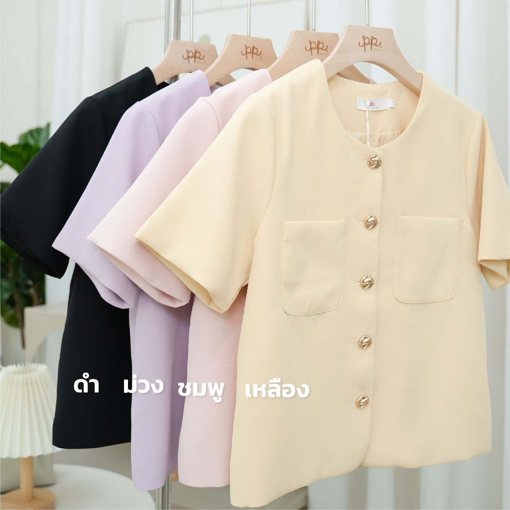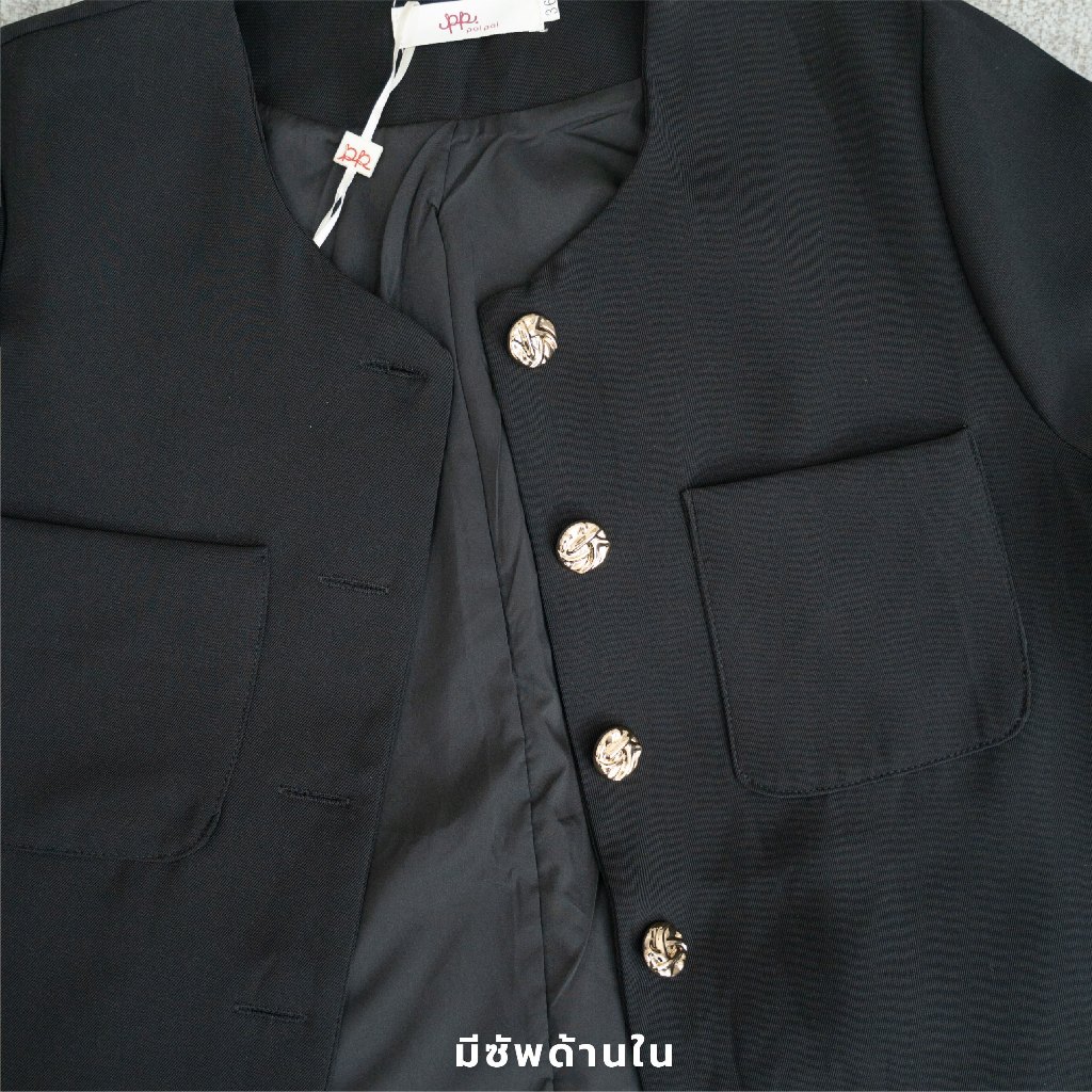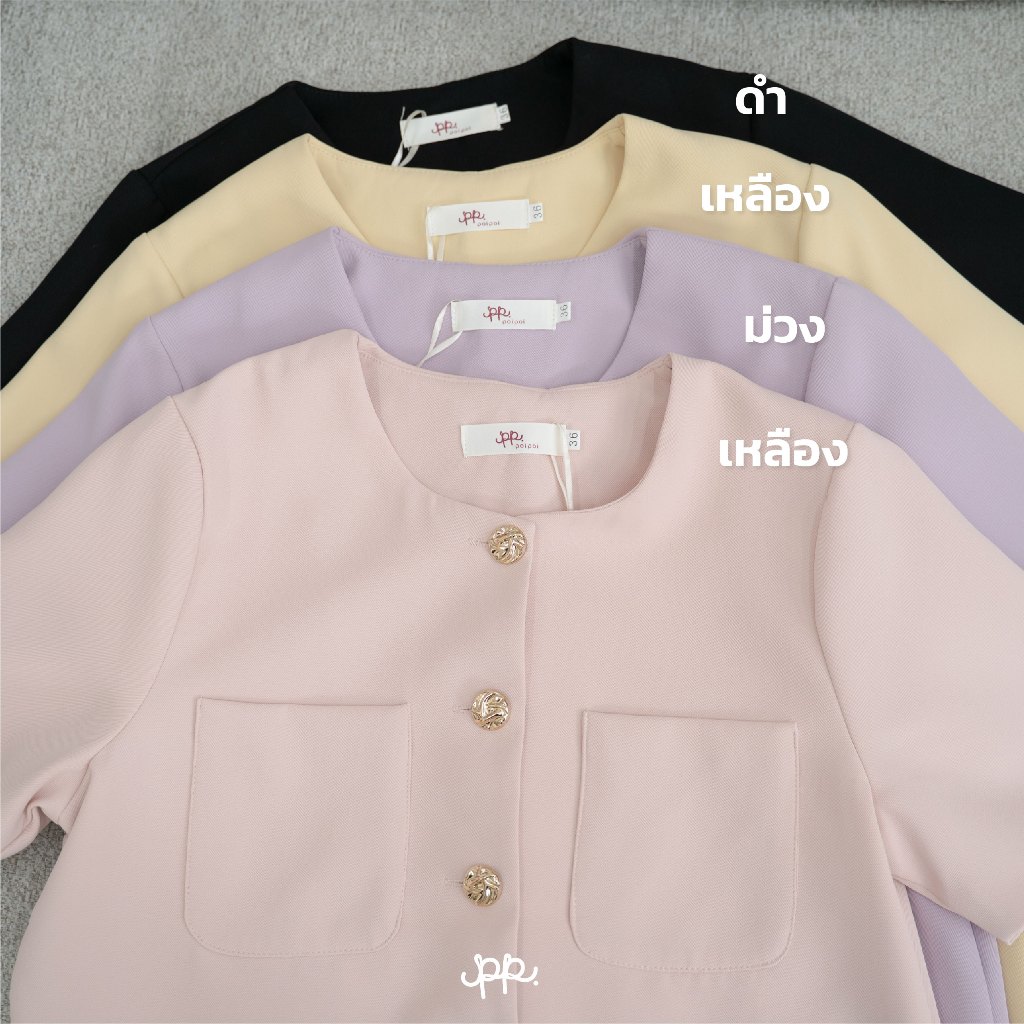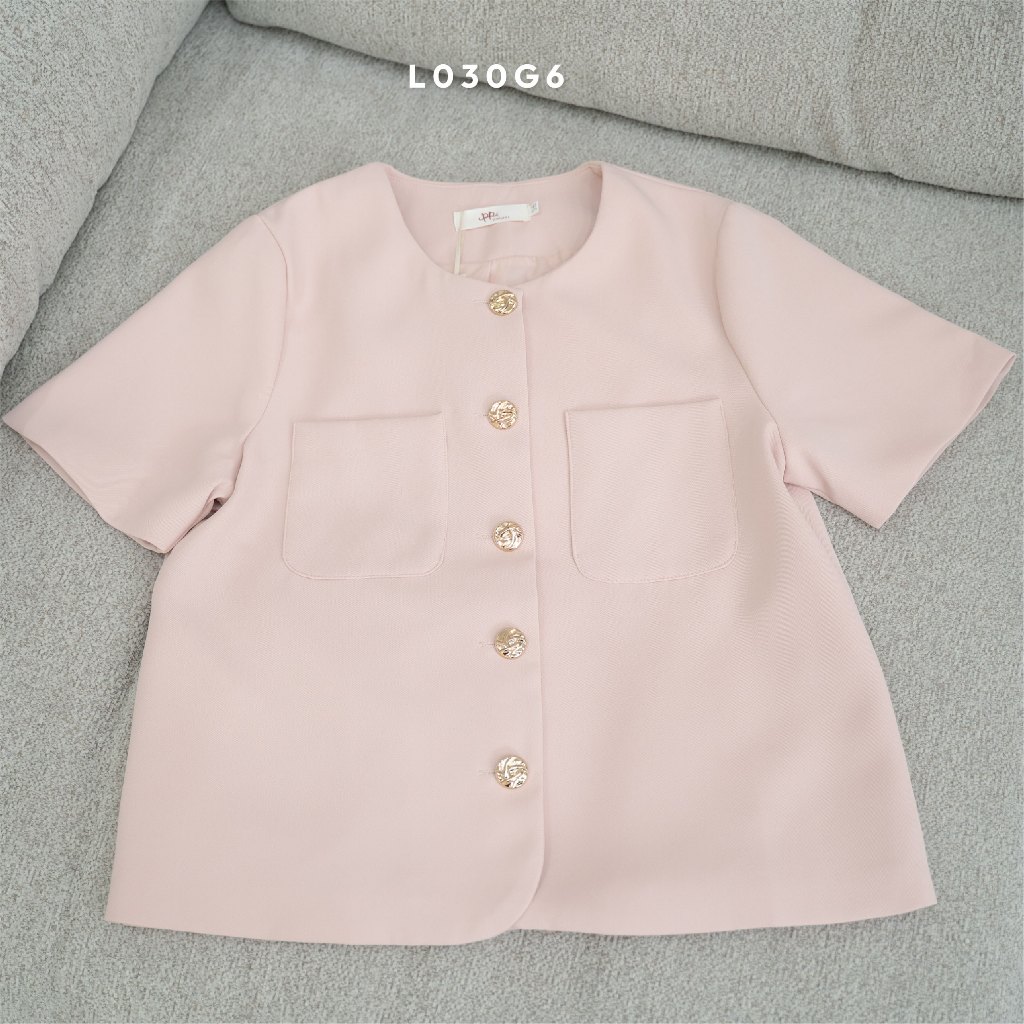L030G6 : POI เสื้อสูทผ้าเจลลี่คอกลมแขนสั้นกระดุมทอง