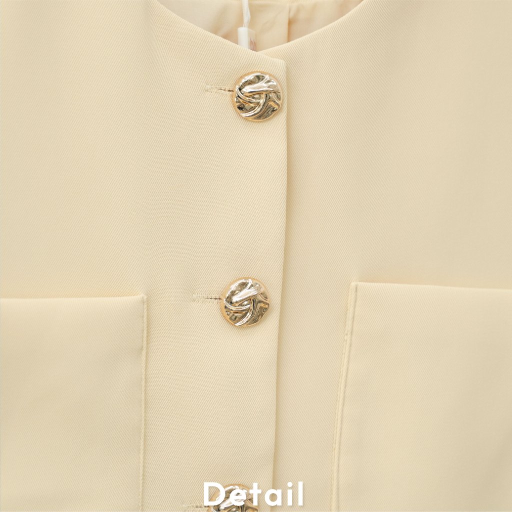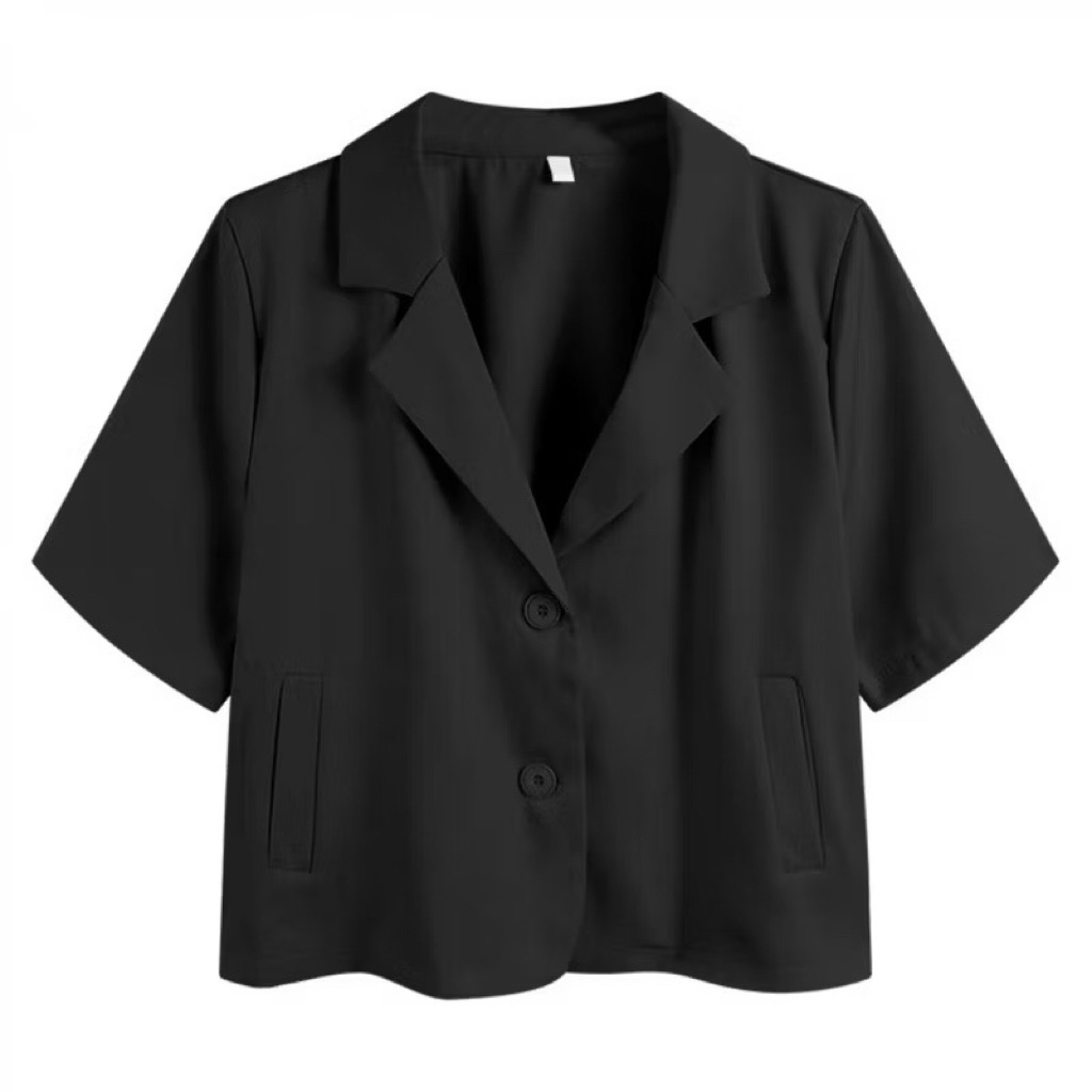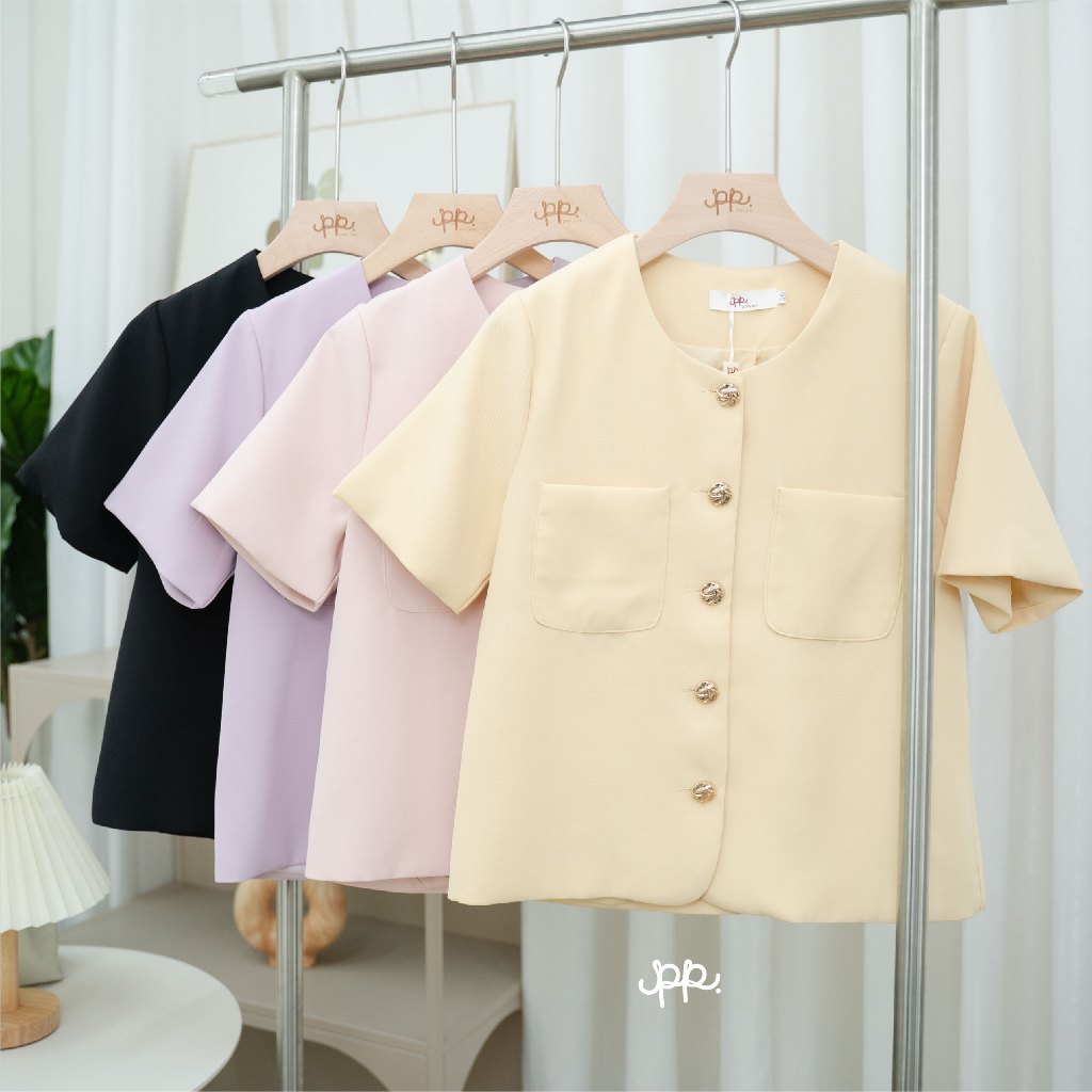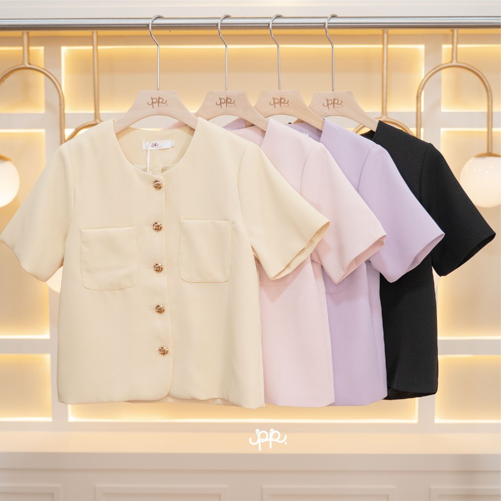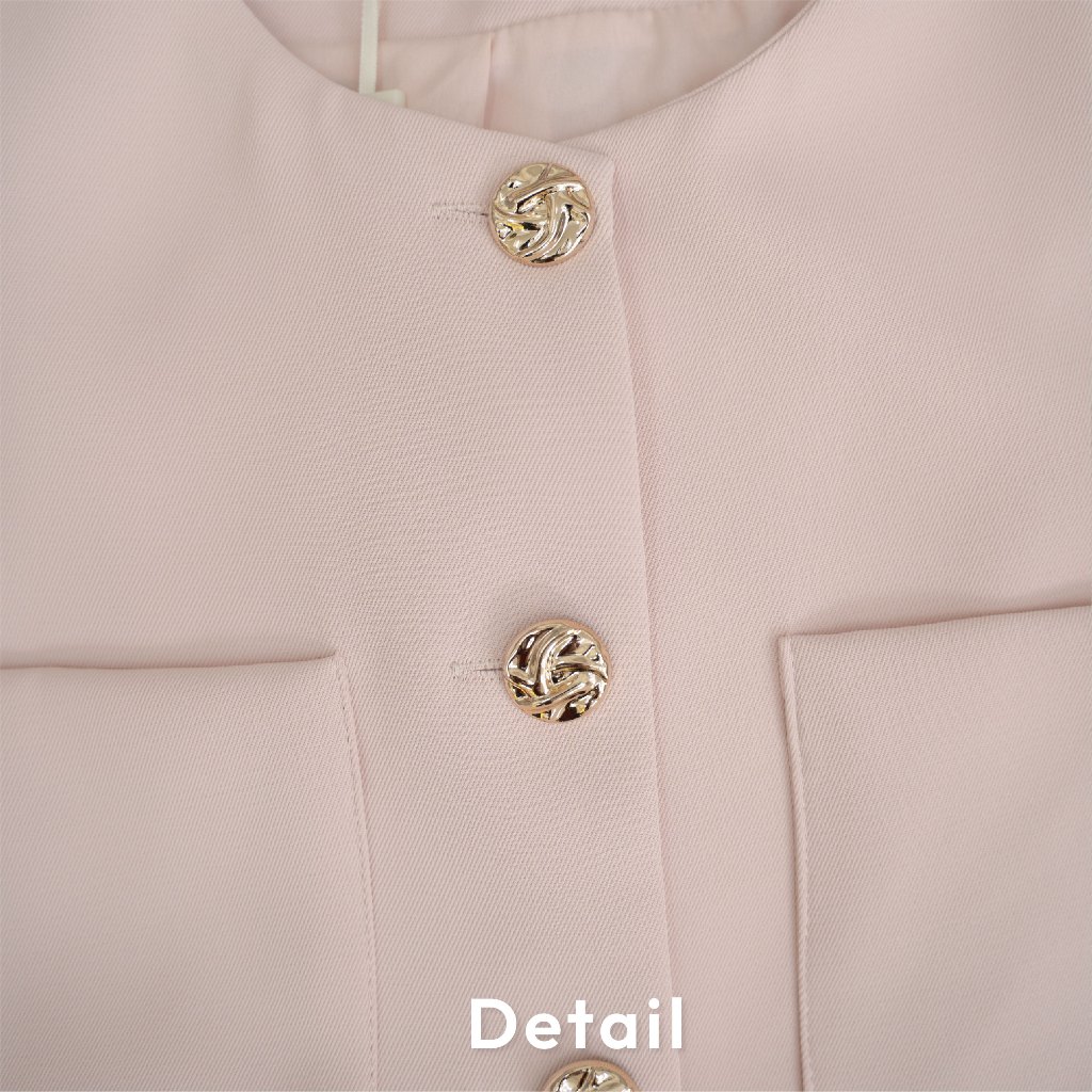 L030G6 : POI เสื้อสูทผ้าเจลลี่คอกลมแขนสั้นกระดุมทอง