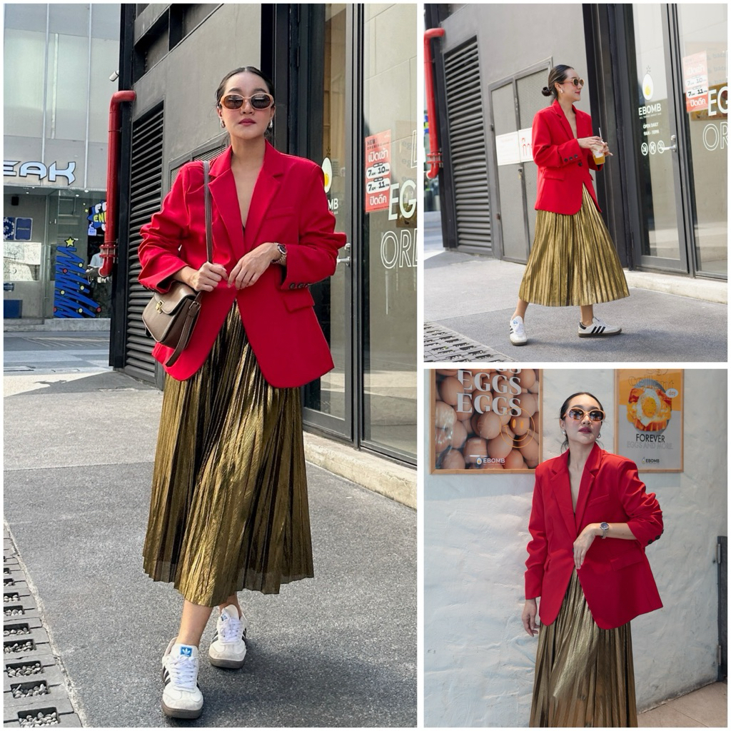 red โค้ท เสื้อสีแดง เสื้อคลุมแขนยาวผู้หญิง เบลเซอร์ ผู้หญิง ทํางาน เบลเซอร์ แฟชั่น สะดวก สบาย