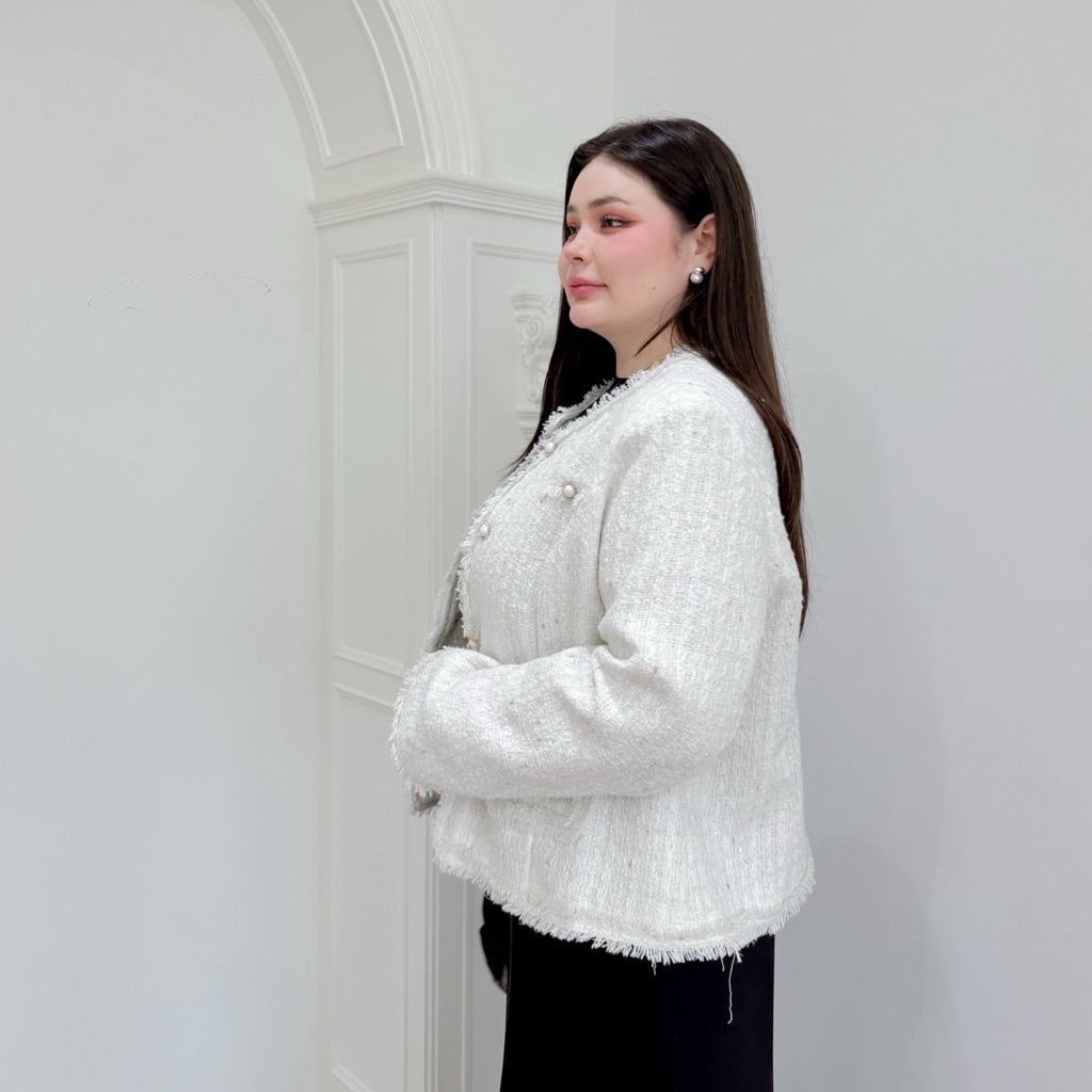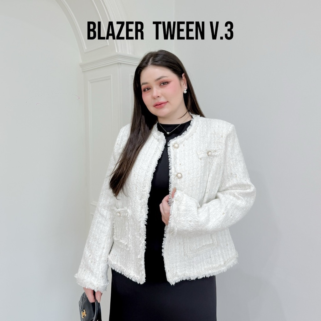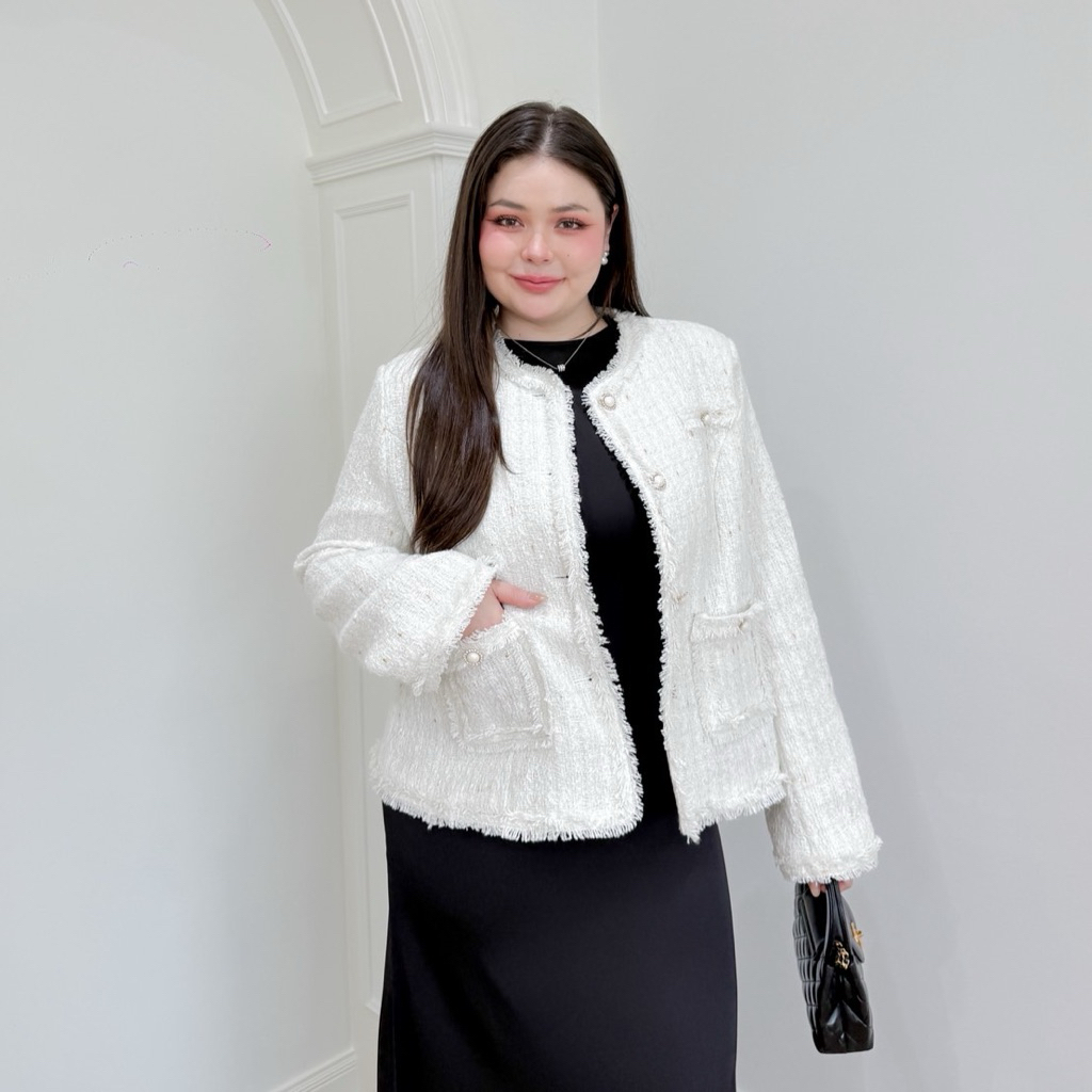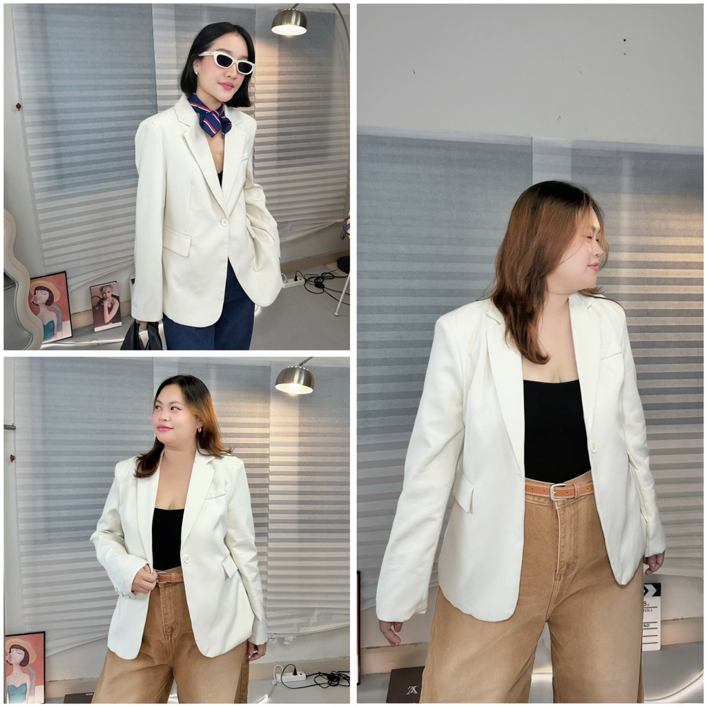 Lady M | BLAZER TWEEN V.3 เสื้อแจ็กเก็ตสีขาวนวล สาวอวบ ลุคเรียบหรู ดูแพง แมทช์ง่ายใส่ทำงาน ประชุม หรือออกงานในโอกาสต่างๆ
