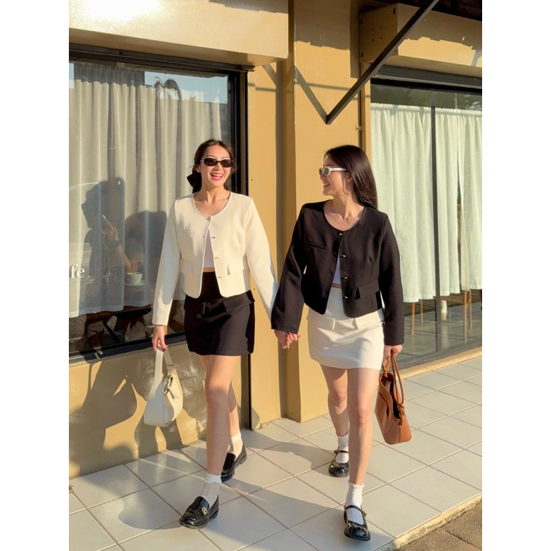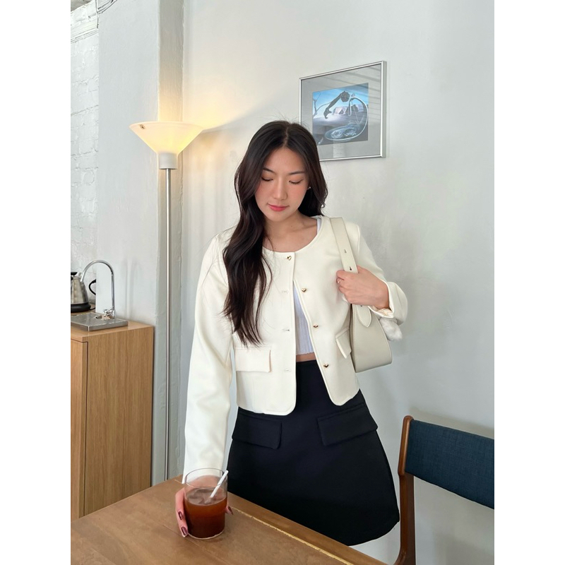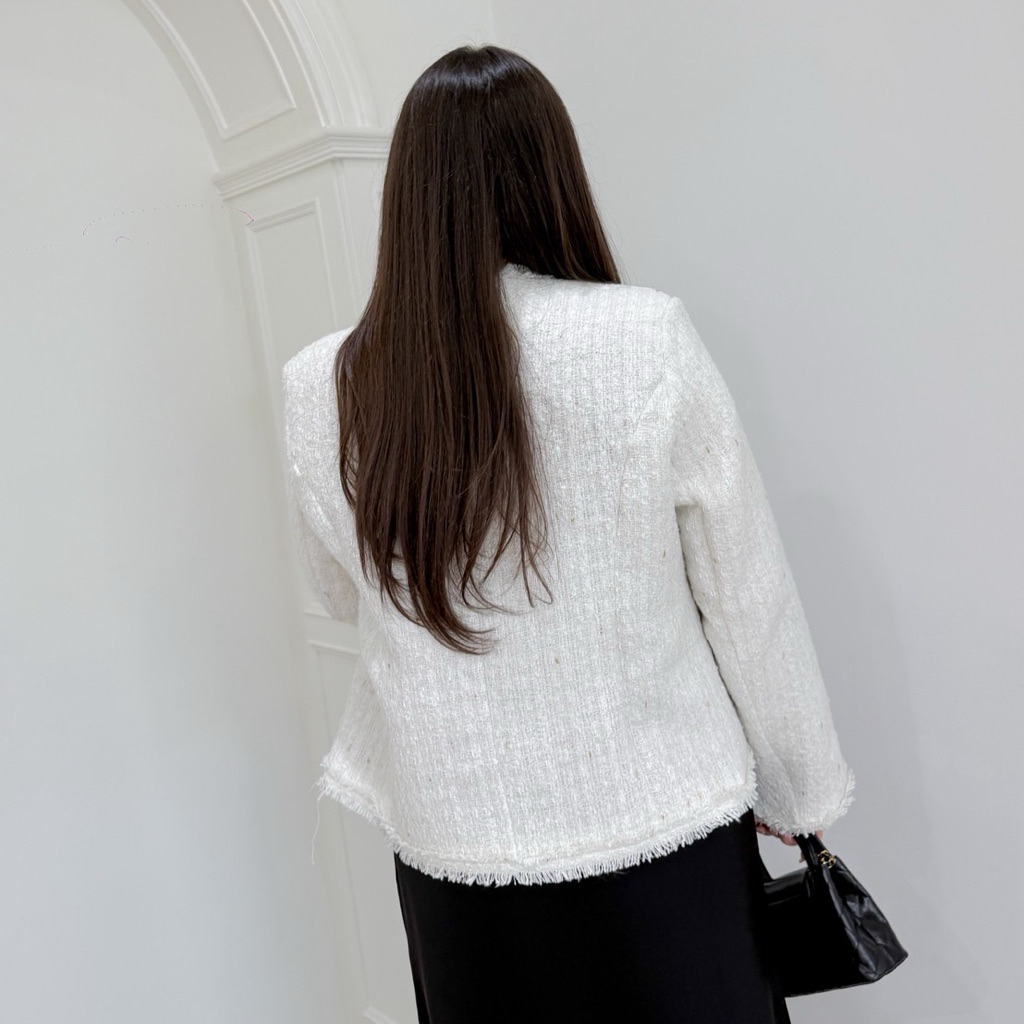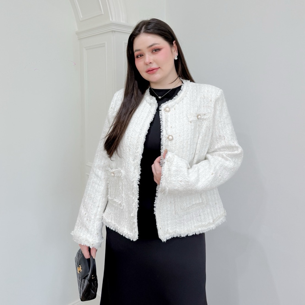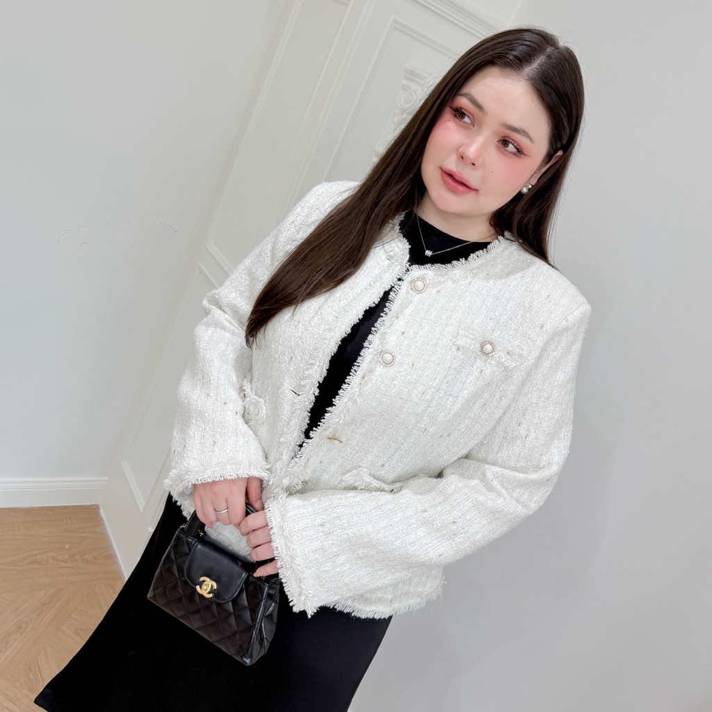 Lady M | BLAZER TWEEN V.3 เสื้อแจ็กเก็ตสีขาวนวล สาวอวบ ลุคเรียบหรู ดูแพง แมทช์ง่ายใส่ทำงาน ประชุม หรือออกงานในโอกาสต่างๆ