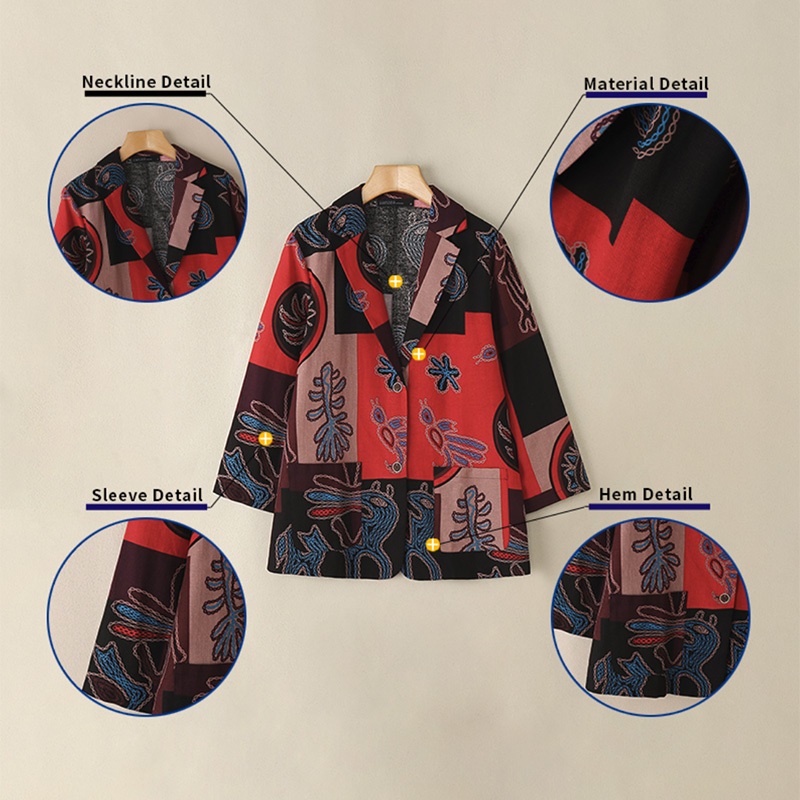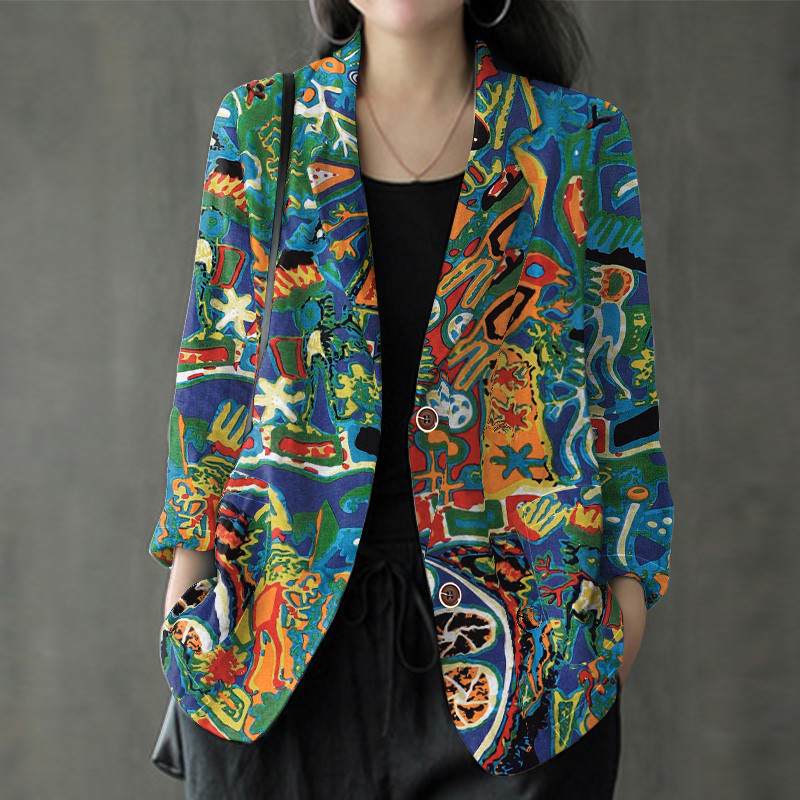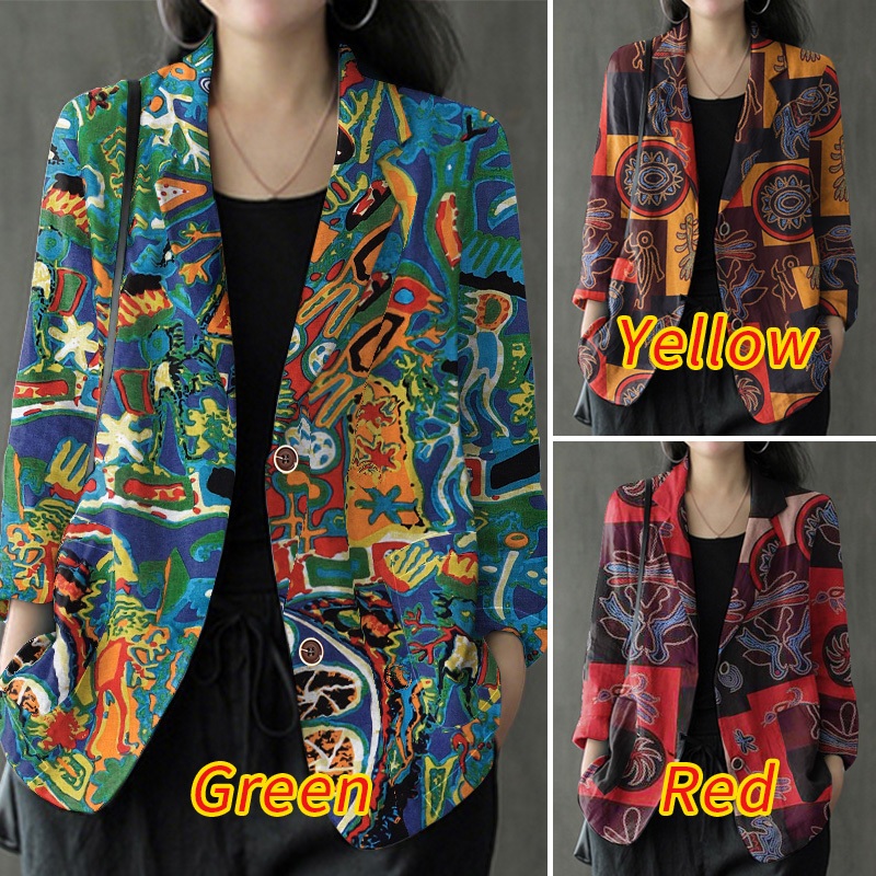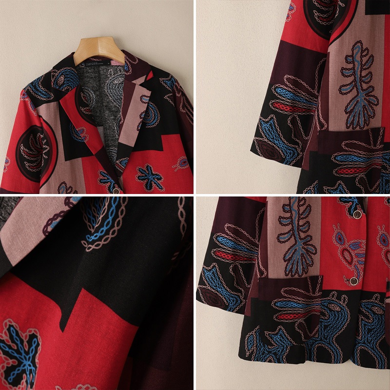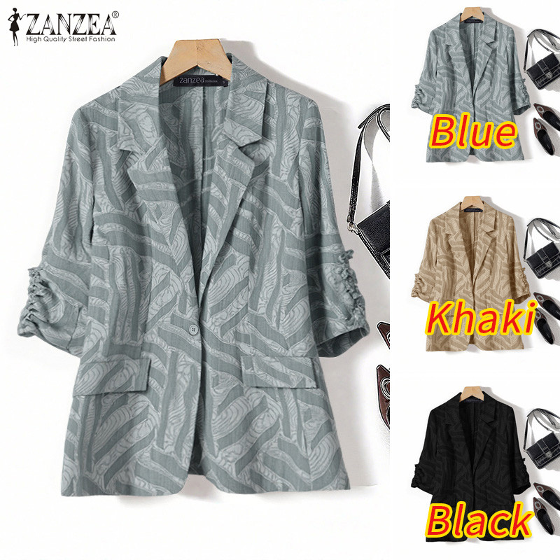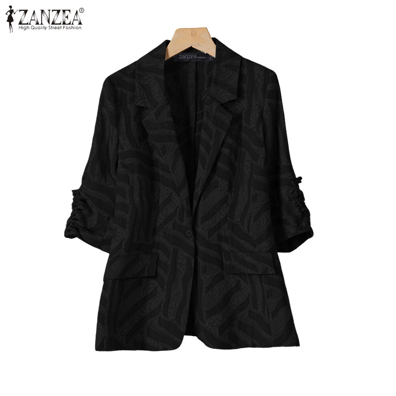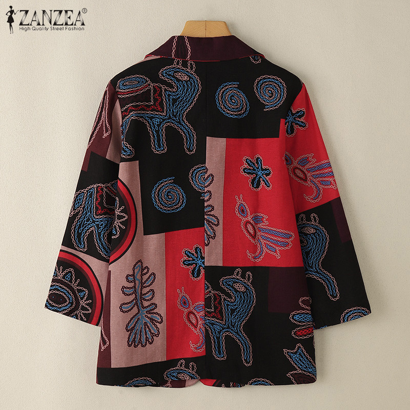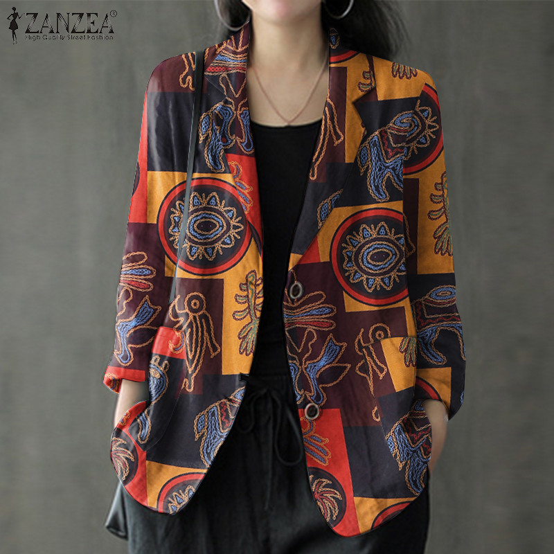 Zanzea ผู้หญิงอารมณ์กระเป๋าลําลองปุ่มสุ่มพิมพ์ Blazer