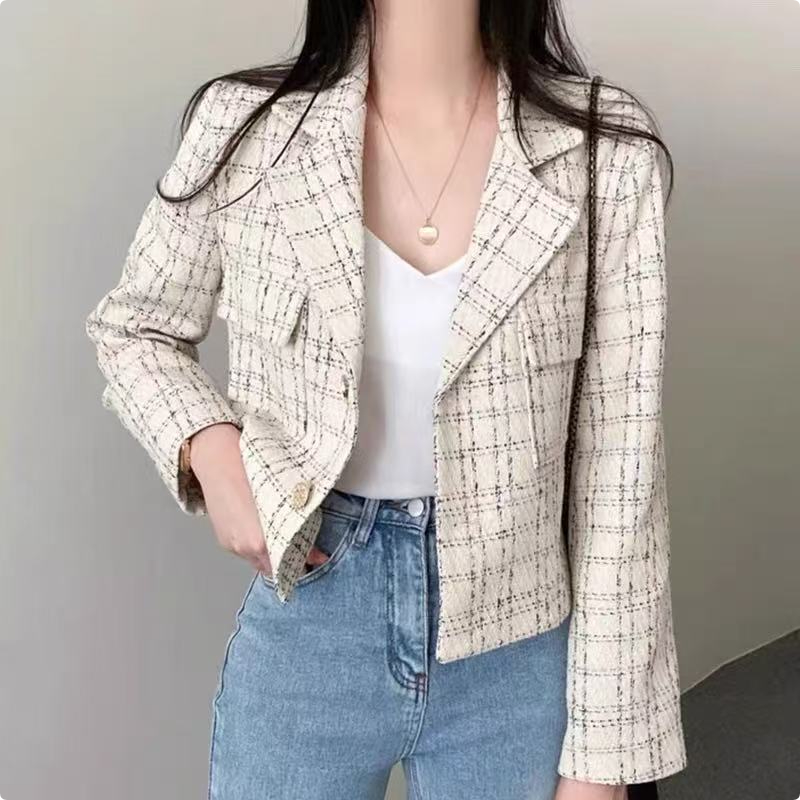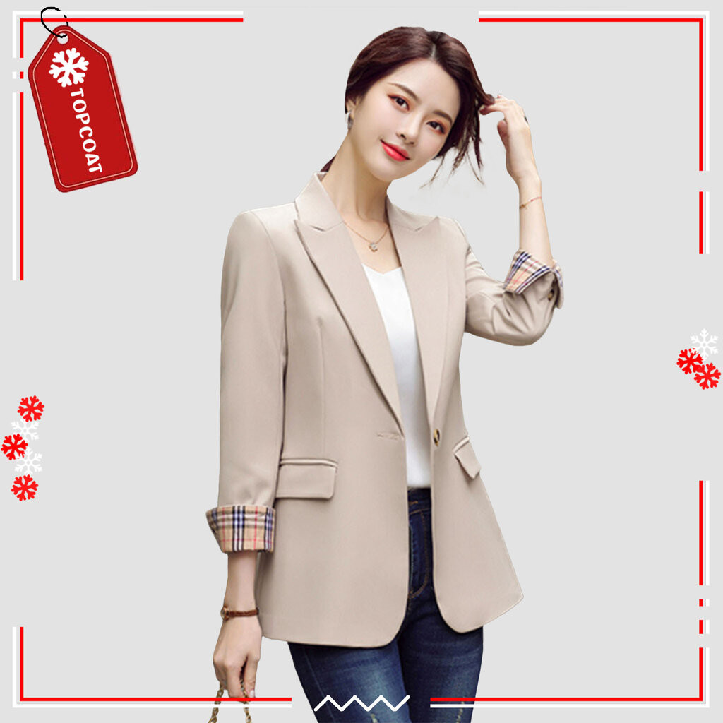 TOPCOAT เบลเซอร์ สูทผู้หญิง กระดุมเดียว แขนพับลายตาราง ทรงเข้ารูป (เสื้อเดี่ยว) Size : S-4XL