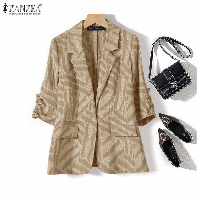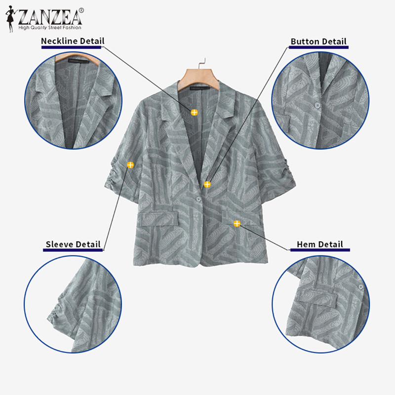 ZANZEA เสื้อสูทเอวแขน 3/4 สำหรับผู้หญิง