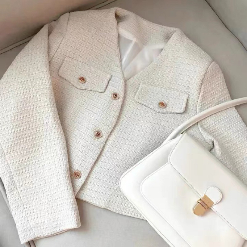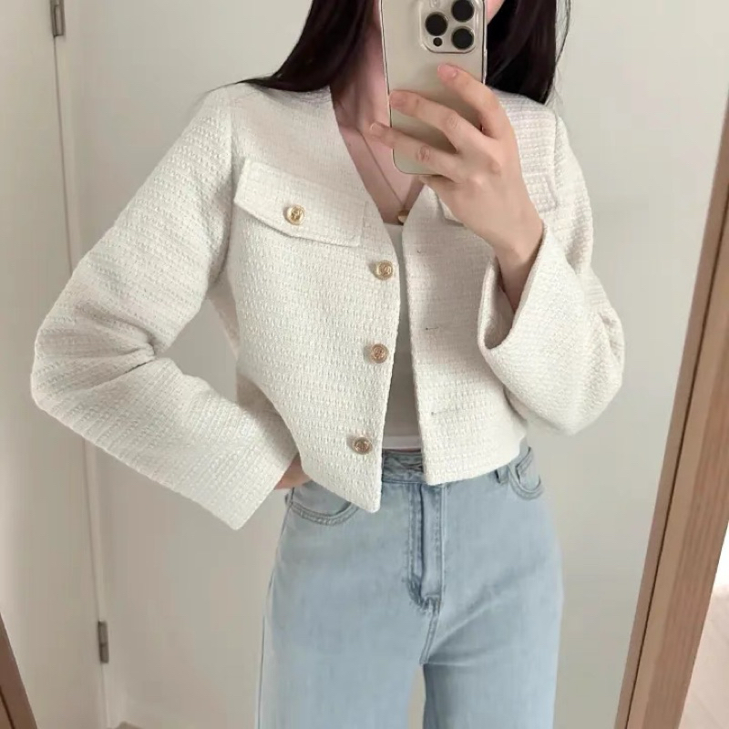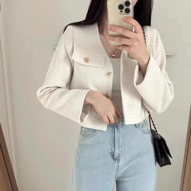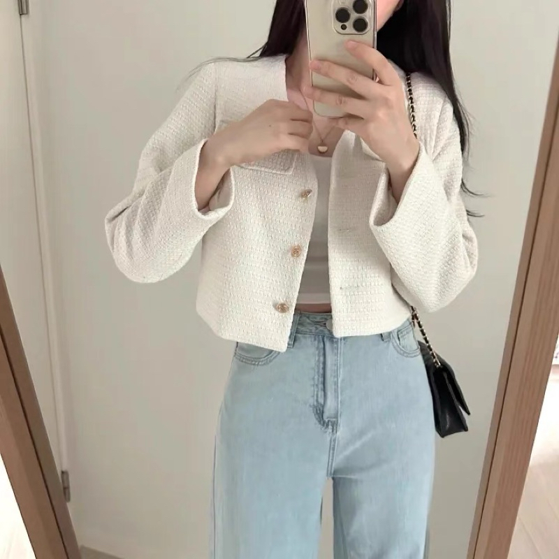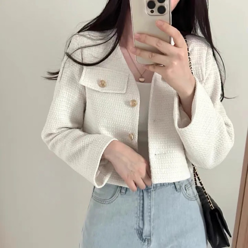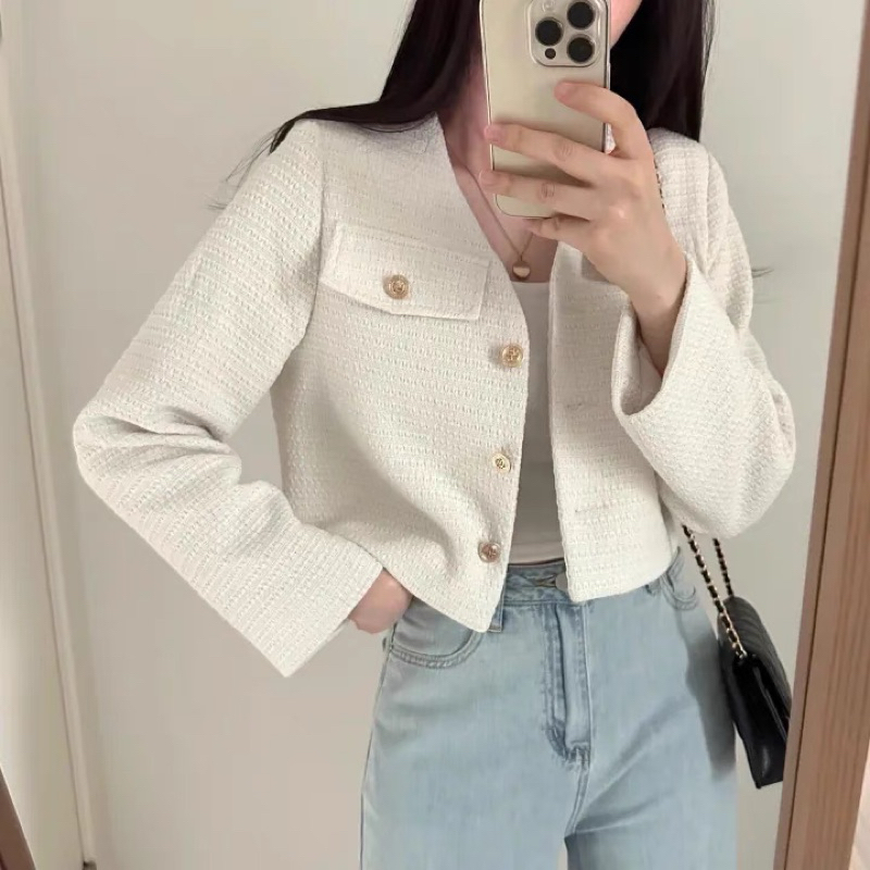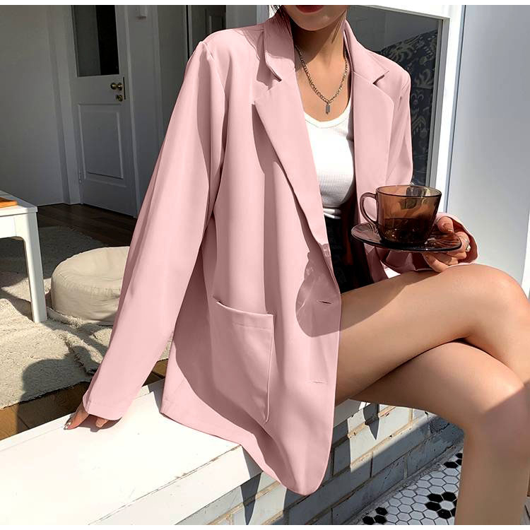 บลาร์เซอร์เกาหลีสำหรับผู้หญิง สไตล์ออฟฟิศแคชวล ออกแบบเสื้อกลับกระดุมแถวเดียว