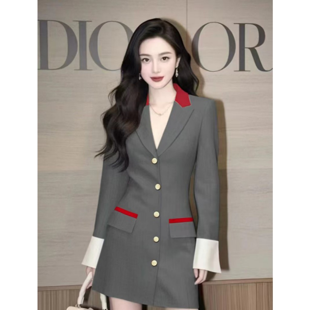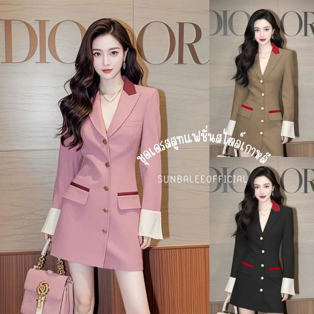 SUIT-27?เดรสสูทแฟชั่น สไตล์เกาหลี เดรสเบลเซอร์ แขนยาวทรงสวย ผ้านิ่ม ชุดเดรสสูทสีพื้น ชุดทำงานผู้หญิง?