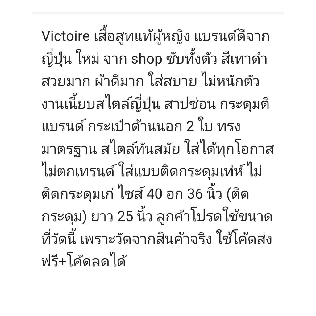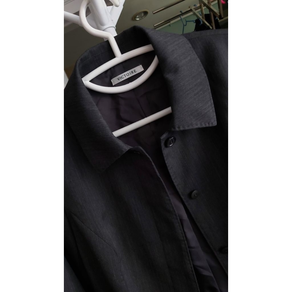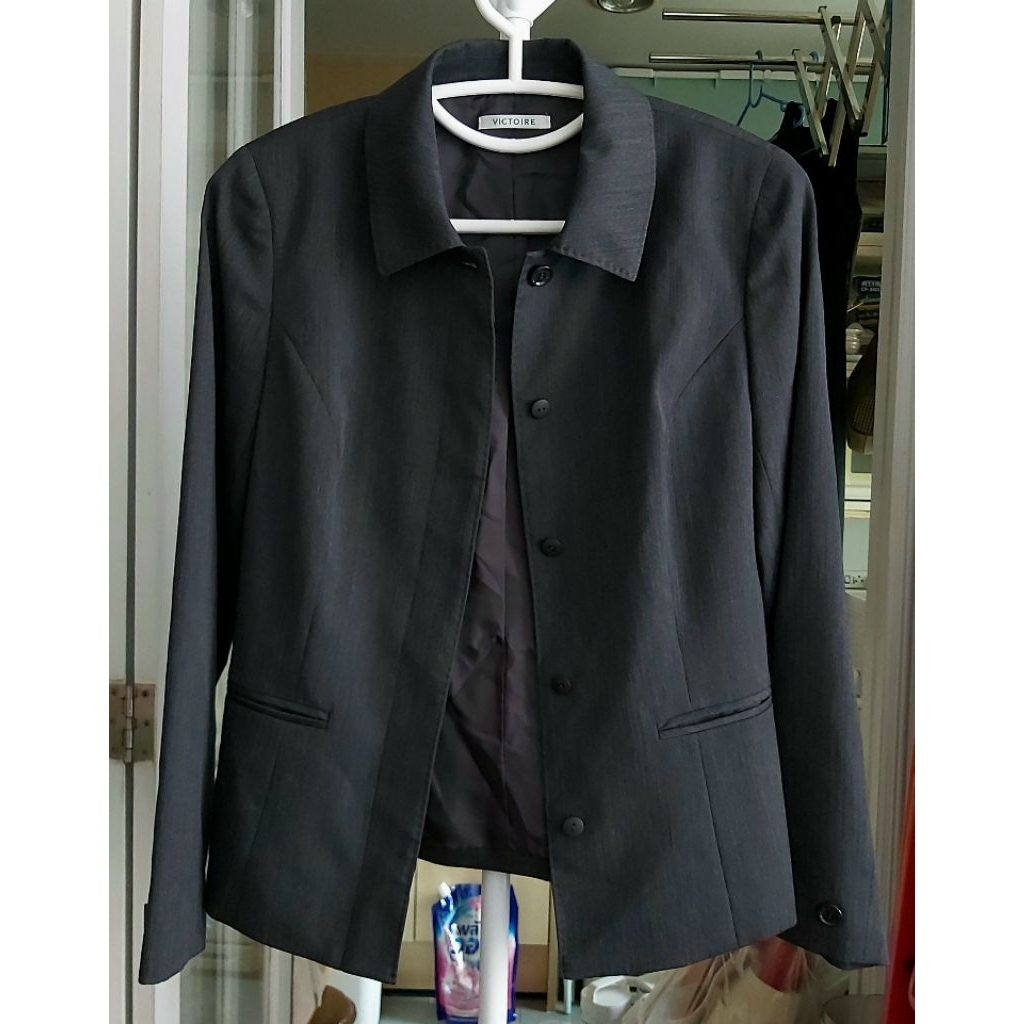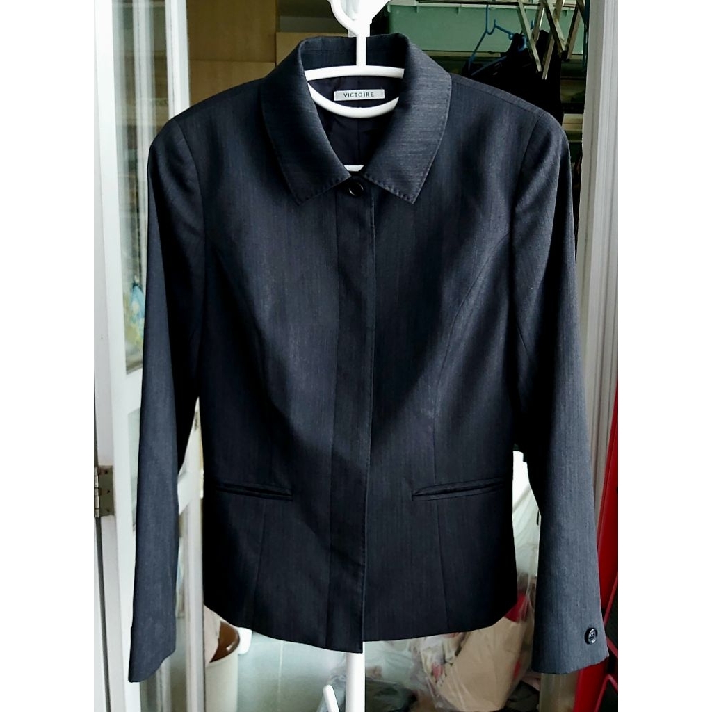Victoire สูทแท้สีเทาดำเข้ม ใหม่ แบรนด์ดีจากญี่ปุ่น ซับทั้งตัว แบบทันสมัย สวยเท่ห์ใส่ได้ทุกโอกาส