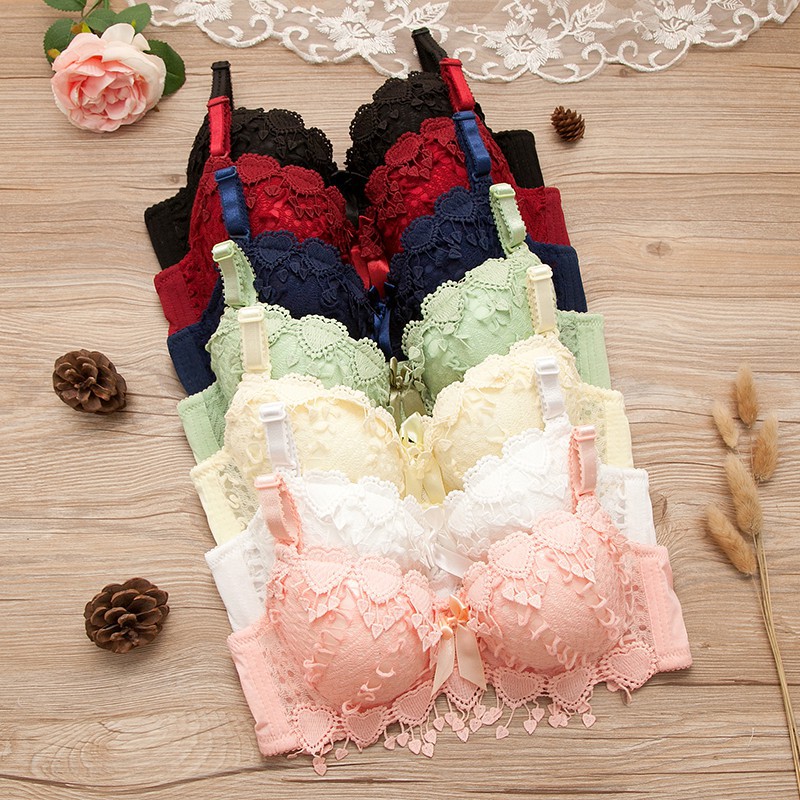 ชุดบรา ผู้หญิงแหวนเหล็กอ่อนชุดชั้นในหน้าอกเล็กความสะดวกสบายลวดสุภาพสตรีลูกไม้ชุดชั้นใน บราเลตต์