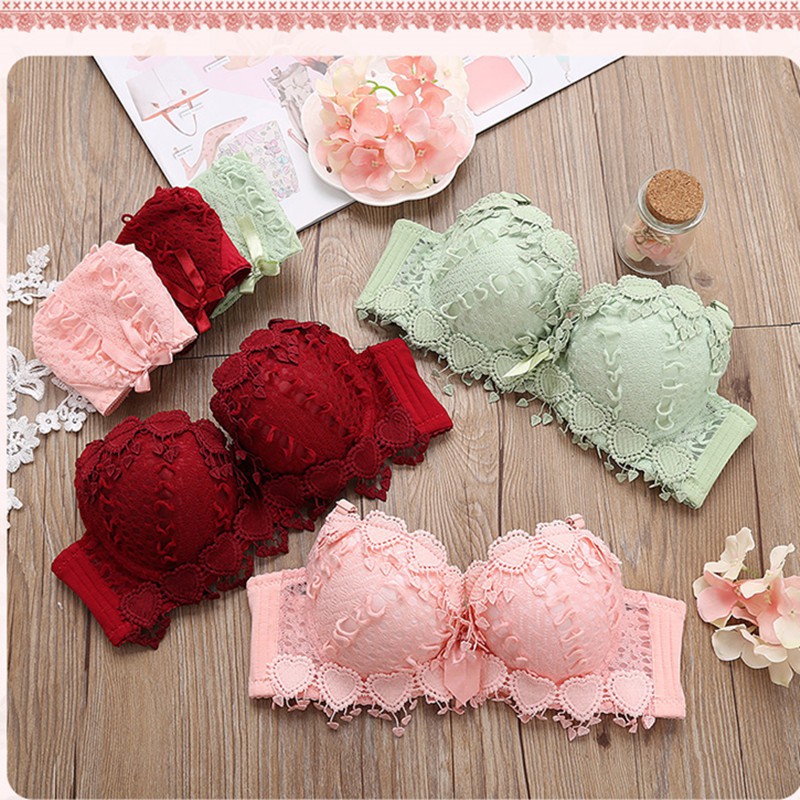 ชุดบรา หน้าอกเล็ก ดัน ขึ้น สาวชุดชั้นในลูกไม้เย็บปักถักร้อยนุ่มไร้สายชุดชั้นในสตรี