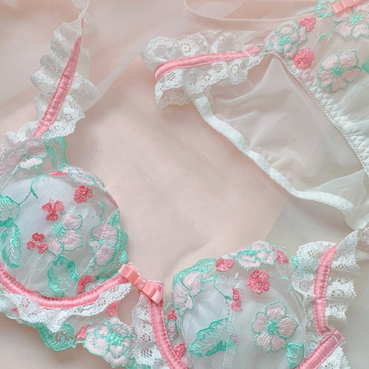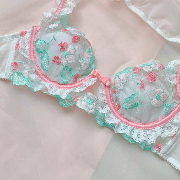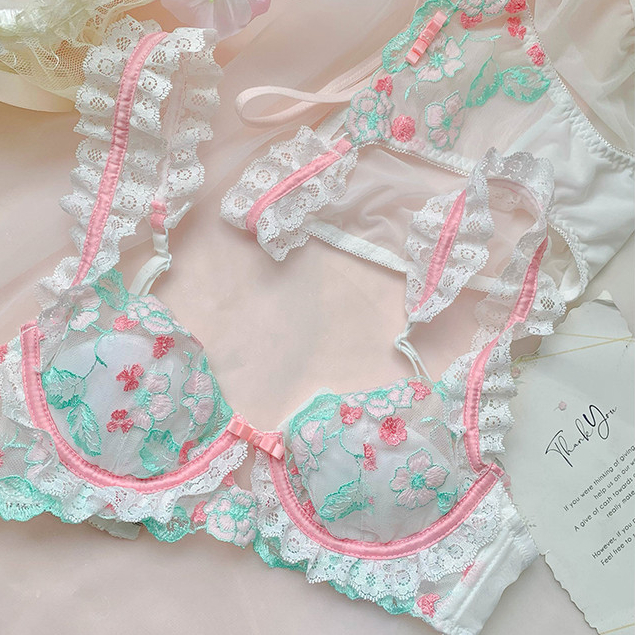 เซ็กซี่สไตล์หวานกลีบออกแบบชุดชั้นในสไตล์หรูหราปักออกแบบหน้าอก ดัน-ขึ้น ออกแบบหน้าอกใหญ่ออกแบบกลวงชุดชั้นในผ้าคุณภาพสูงชุ
