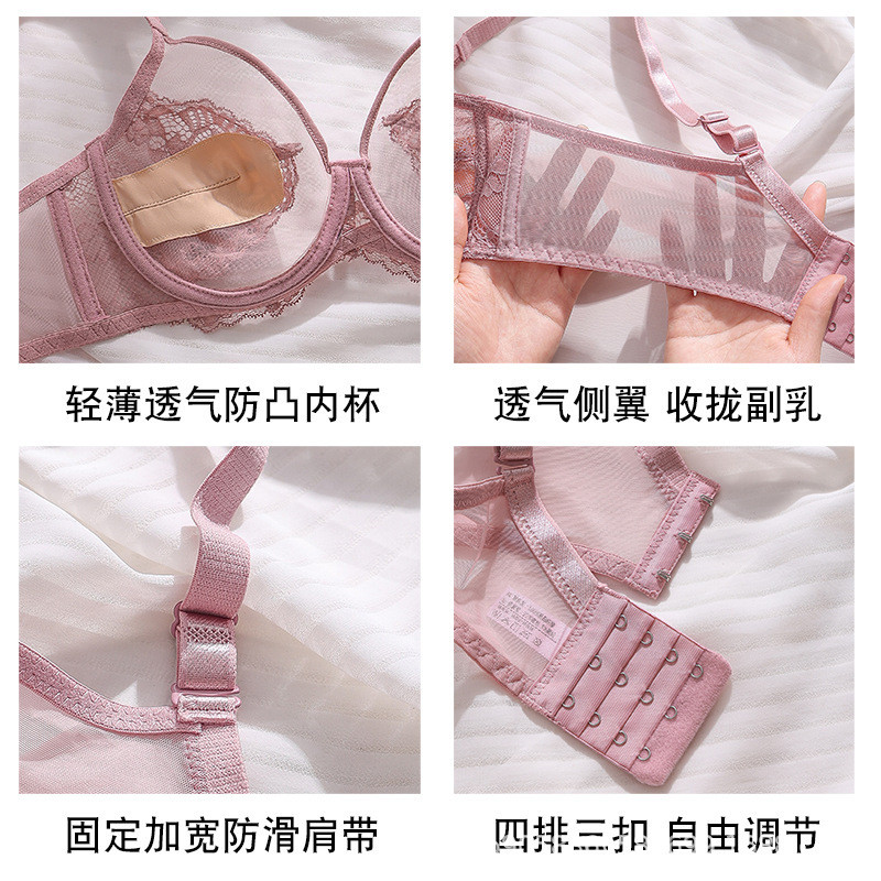 ใหม่ลูกไม้แหวนเหล็กนุ่มชุดชั้นในเซ็กซี่ชุดเต็มถ้วยป้องกันการหย่อนคล้อยกําเริบชุดชั้นในบางเฉียบ