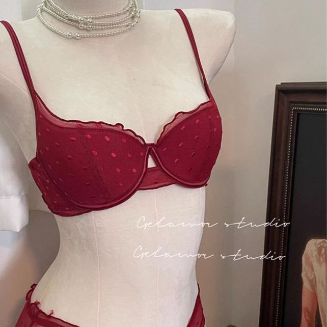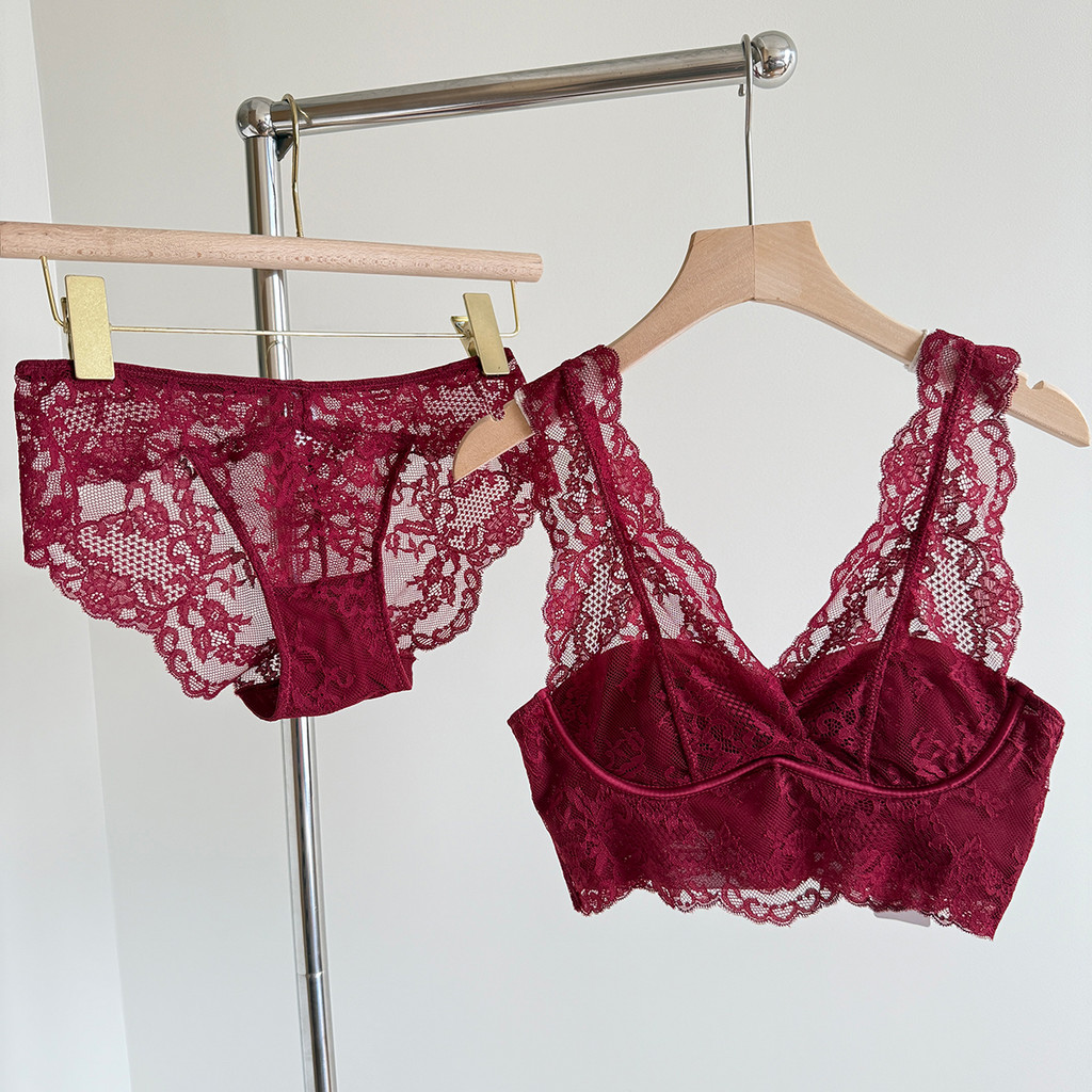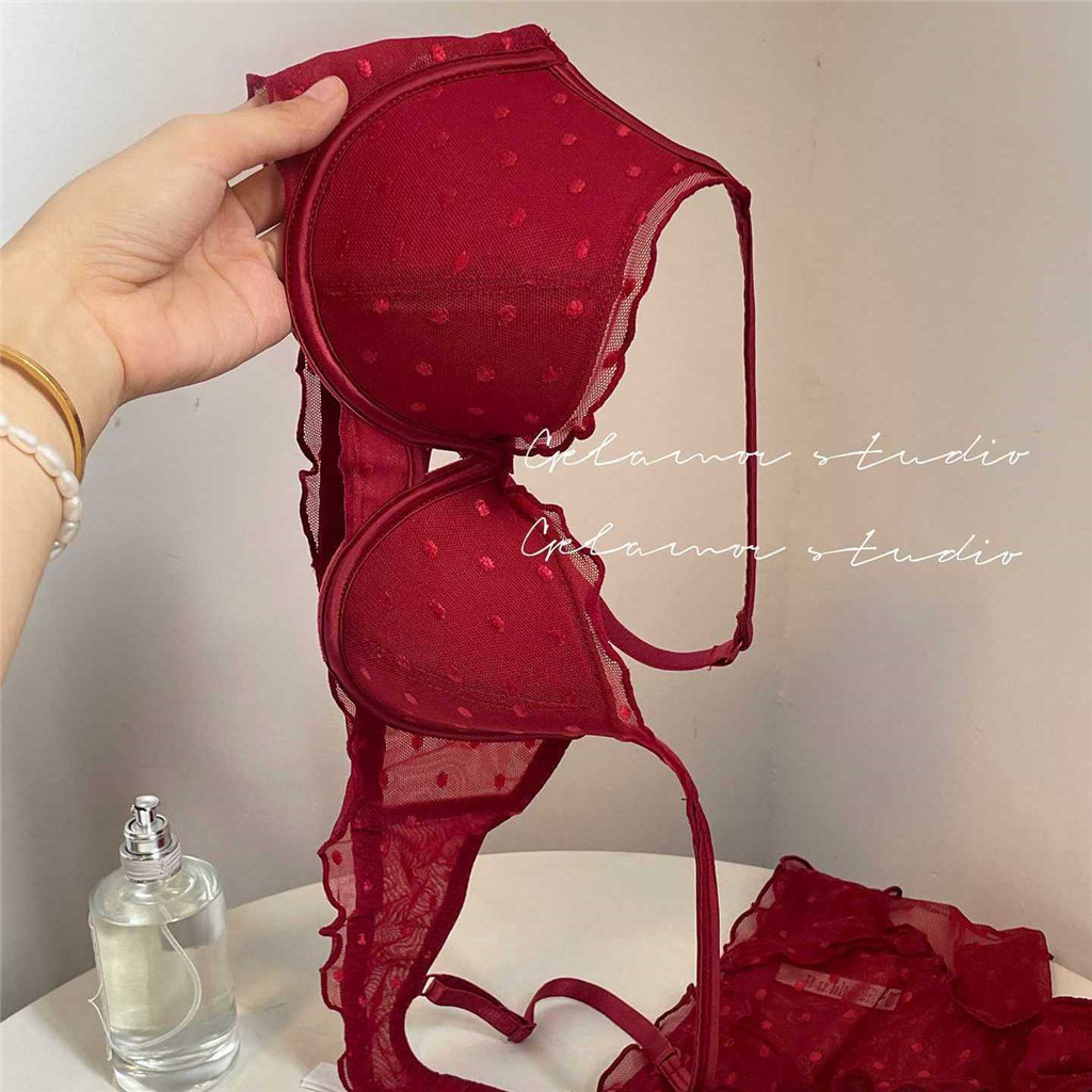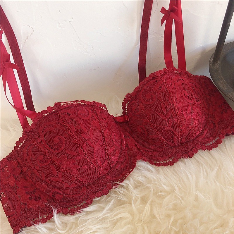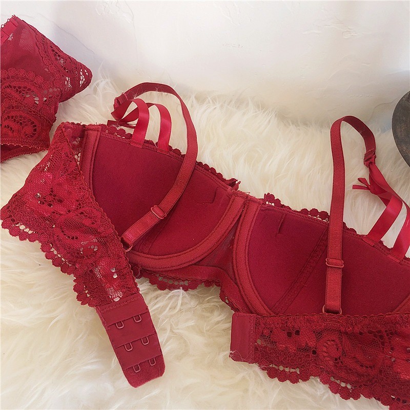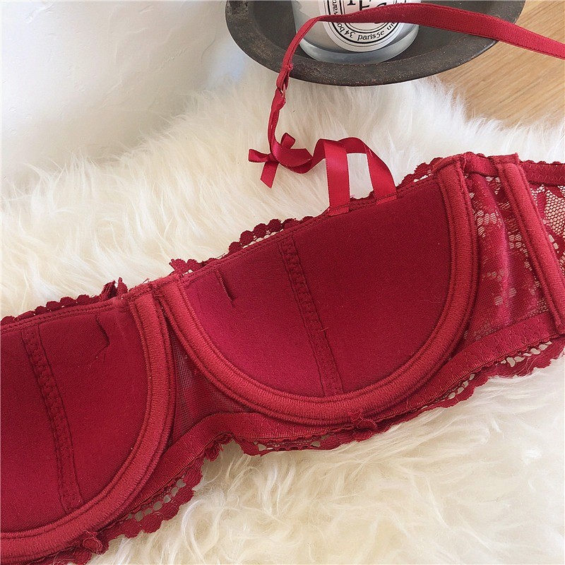 ใหม่สไตล์ฝรั่งเศสสีแดงเซ็กซี่ลูกไม้ชุดชั้นในสตรีรวบรวมด้านบนสนับสนุนชุดชั้นในป้องกันการหย่อนคล้อยชุด