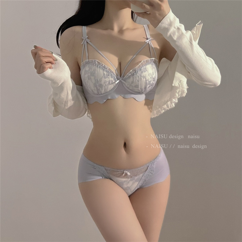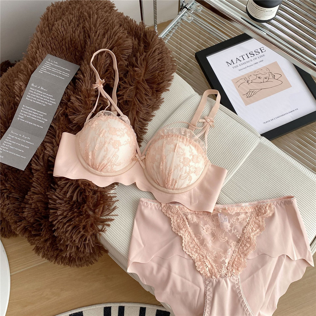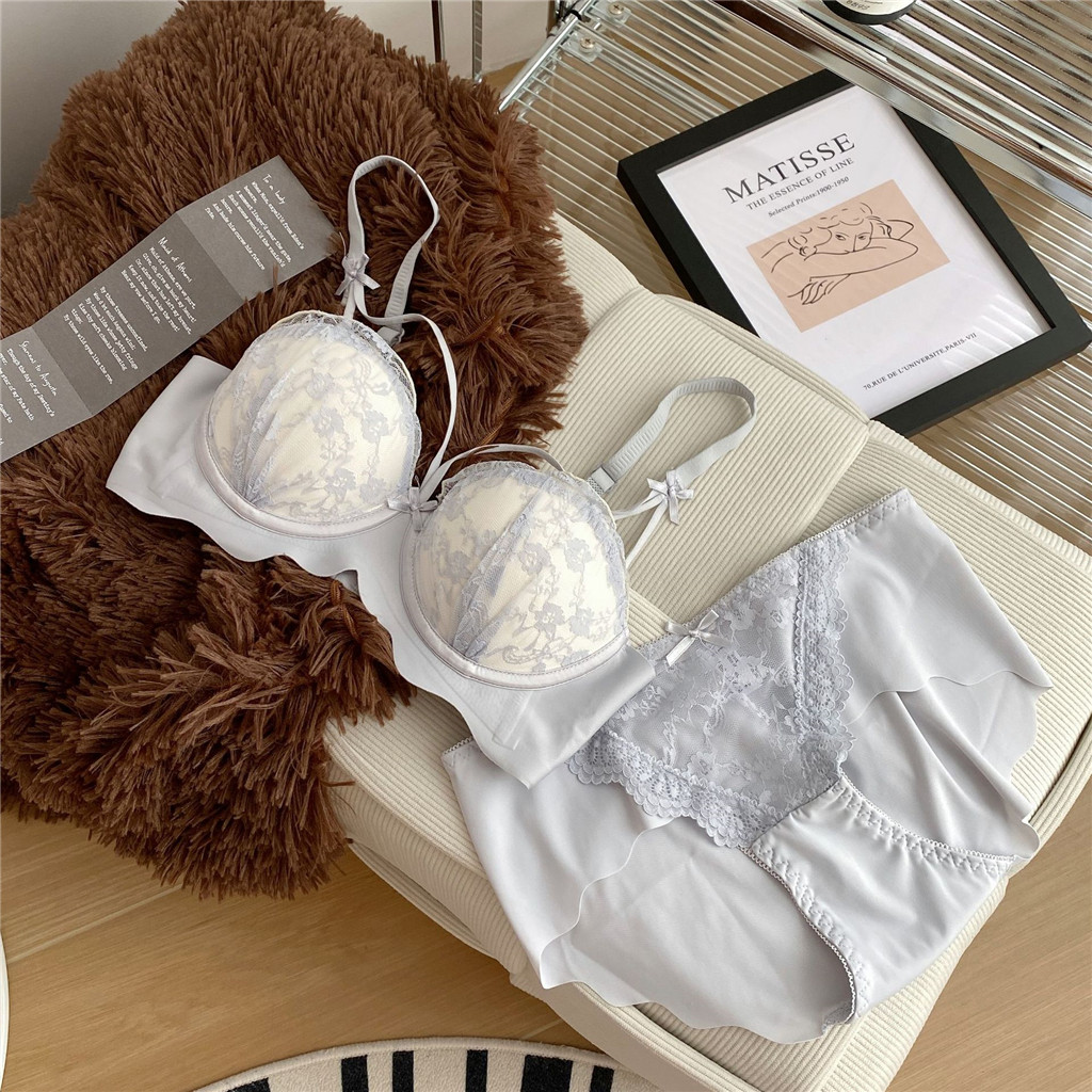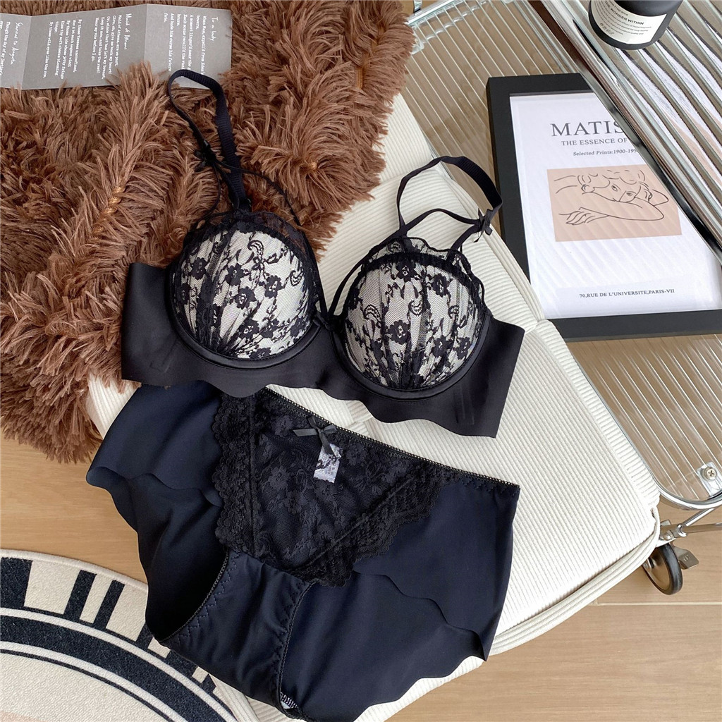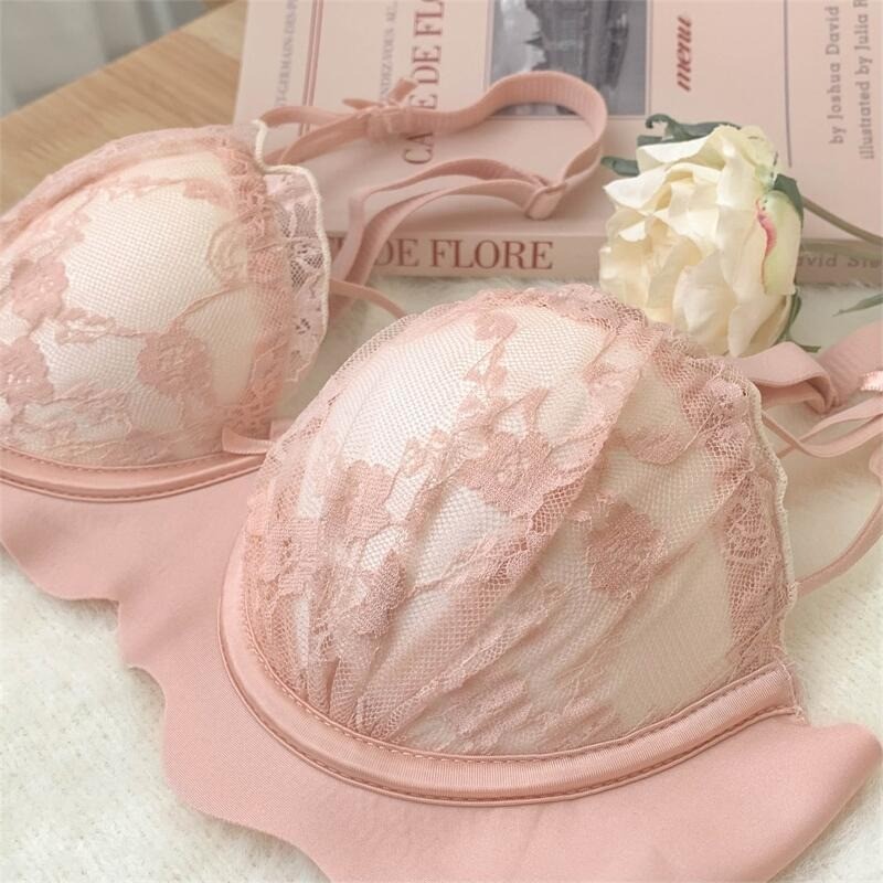 ฝรั่งเศสชุดชั้นในสตรีหน้าอกใหญ่ดูหน้าอกเล็ก2025สไตล์ฤดูใบไม้ร่วงหน้าอกรับป้องกันการหย่อนคล้อยเซ็กซี่ลูกไม้ชุดชั้นในชุด