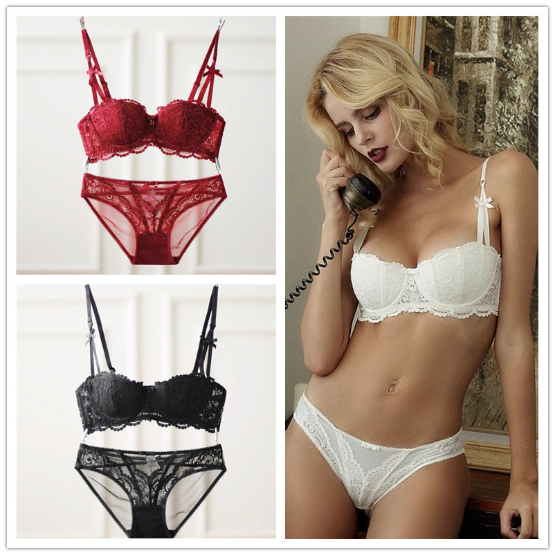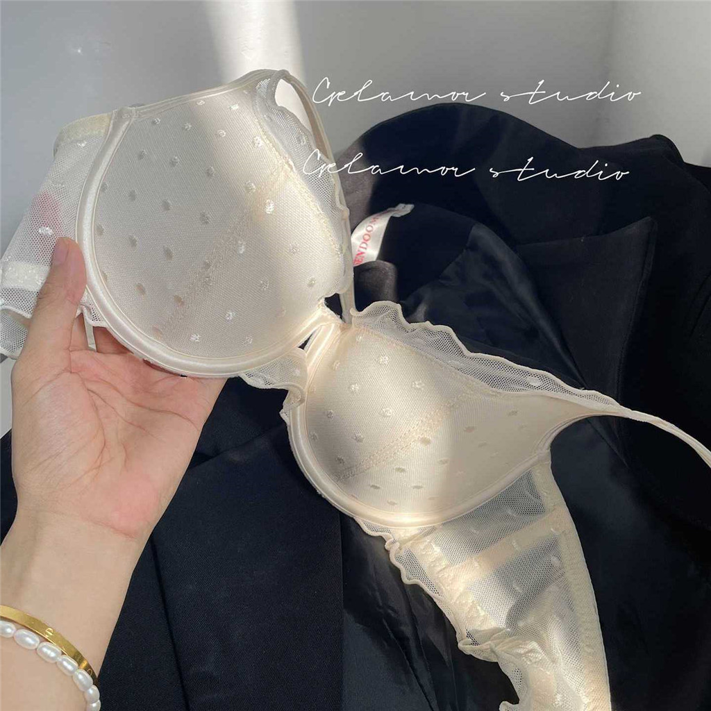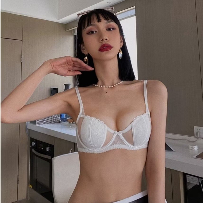 น้ําหนักเบา Half-Cup ชุดชั้นในสตรี Gathering Slimmer ดูเซ็กซี่ลูกไม้ Anti-Sgging Unnompty ถ้วย Bra ชุด