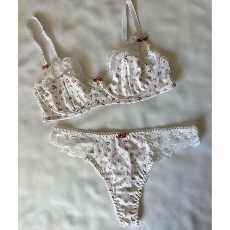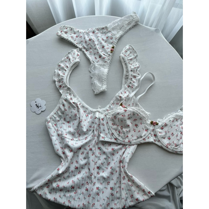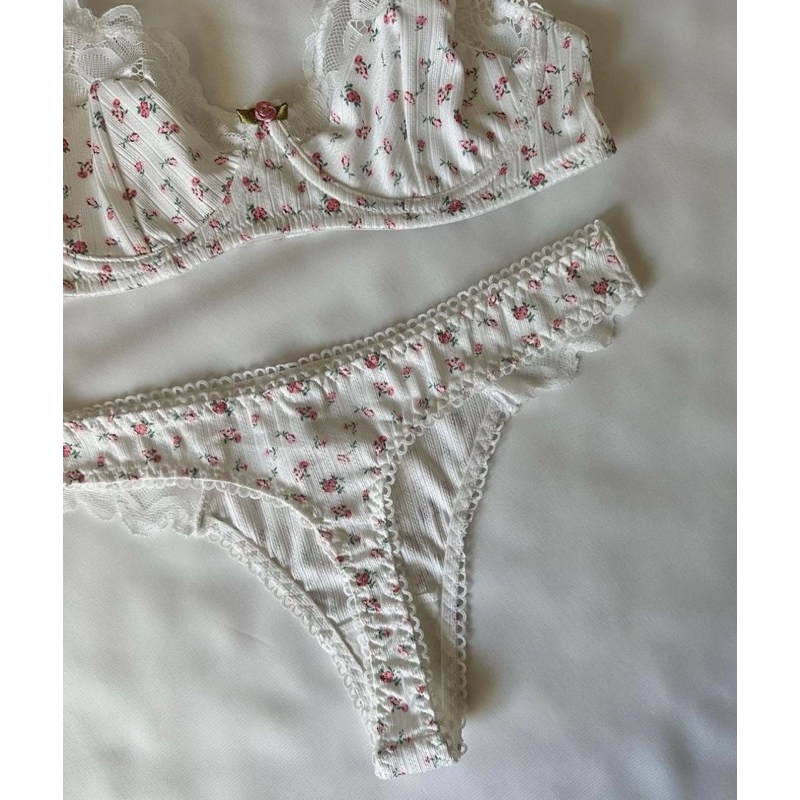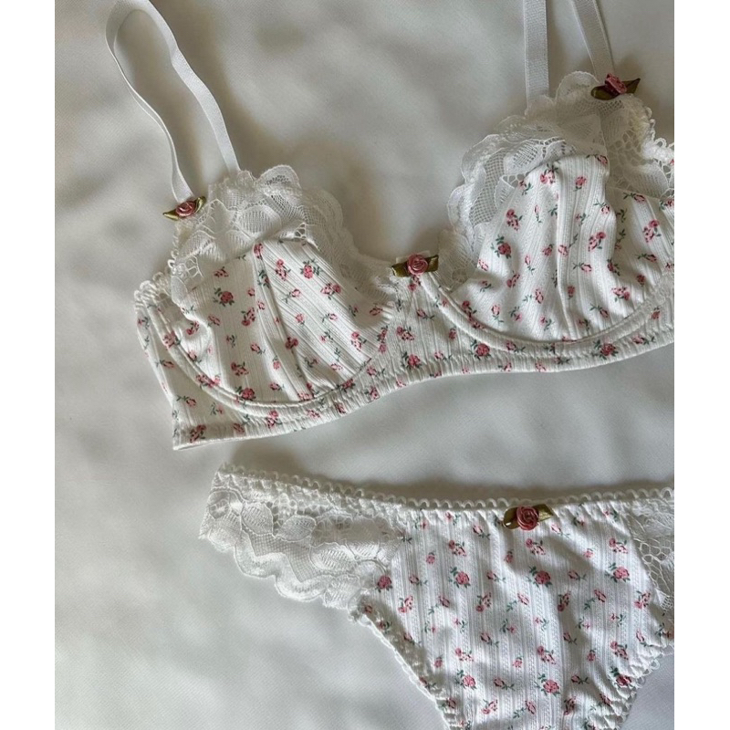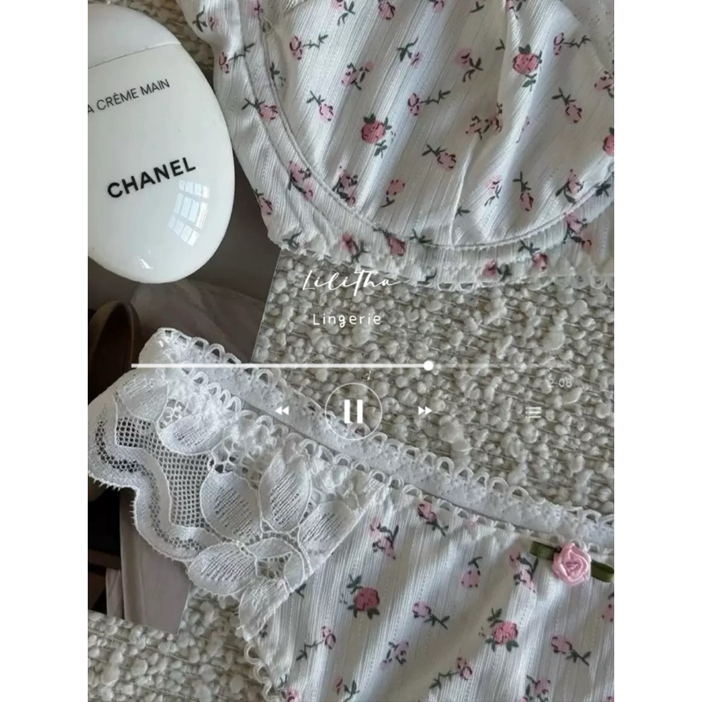 บรายกกระชับหน้าอก Set + ชุดชั้นใน ชุดชั้นในดันทรง พิมพ์ลายดอกไม้ ลูกไม้ สำหรับผู้หญิง