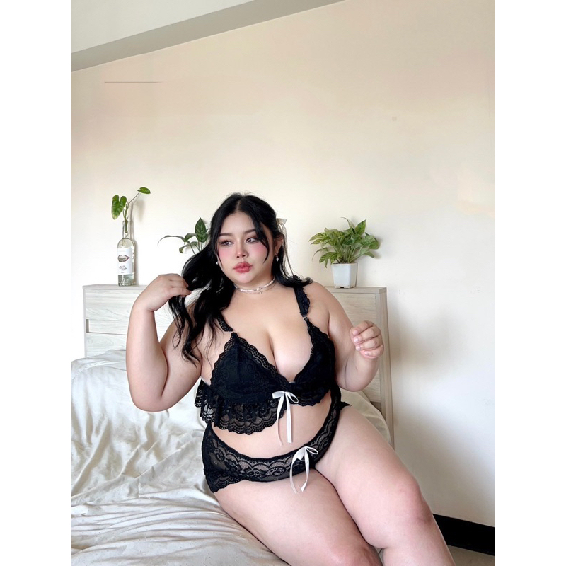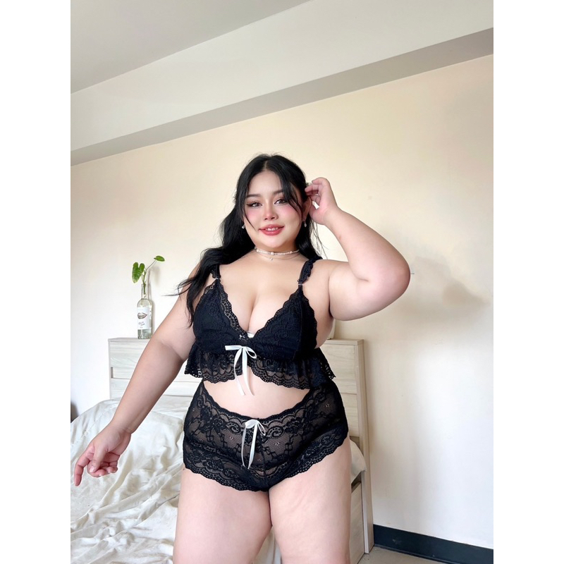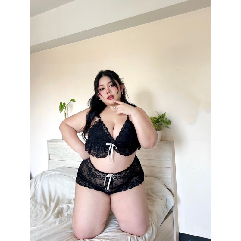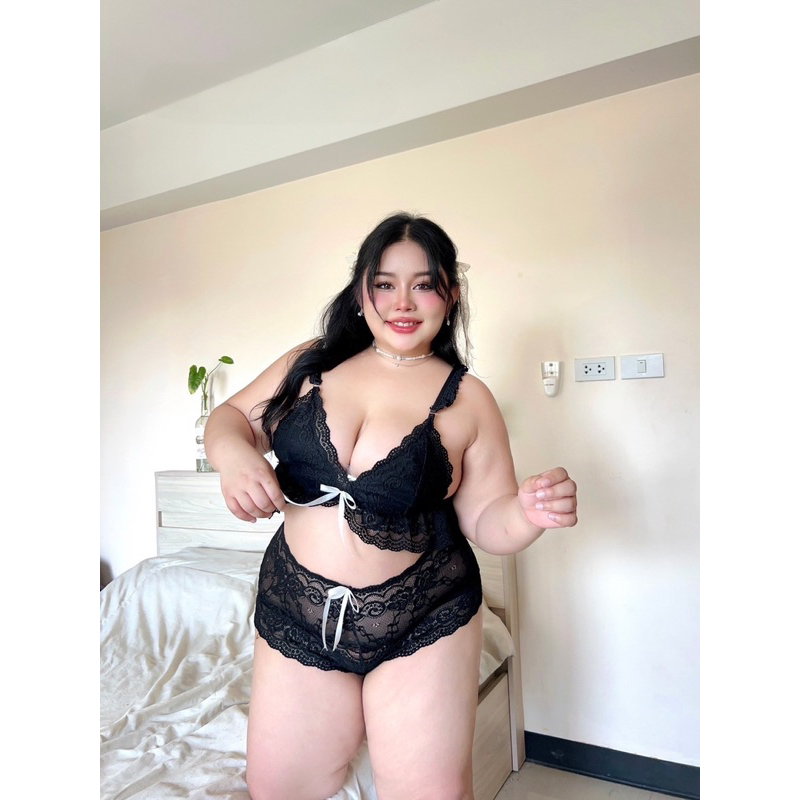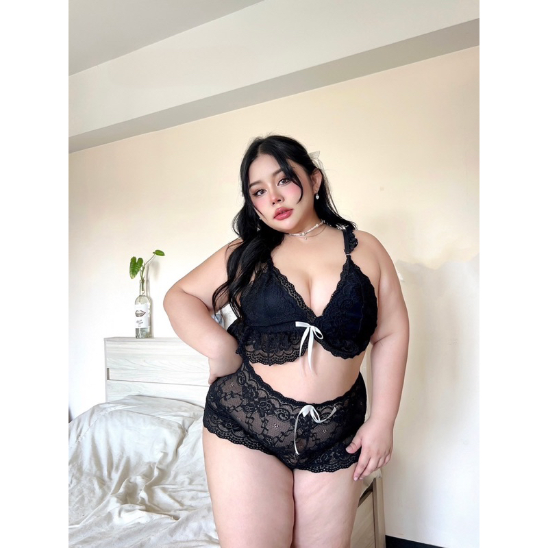 เซ็ตบราลูกไม้สไตล์คุณหนู❤️Plussize❤️ มีถึง 3ไซส์ แต่งริบบิ้นชายระบาย ผ้าลูกไม้เนื้อนิ่ม