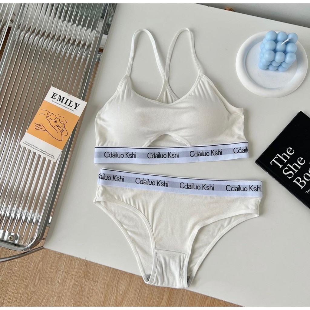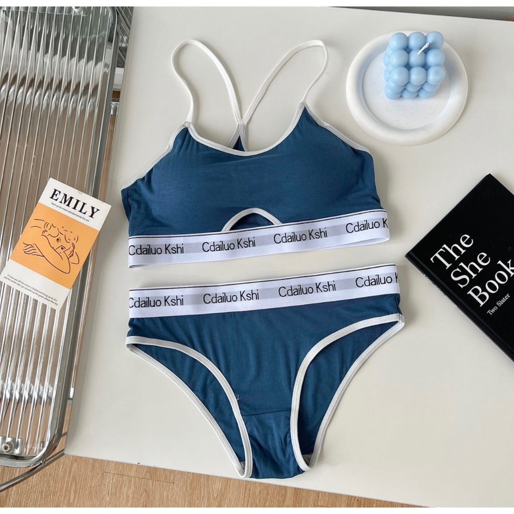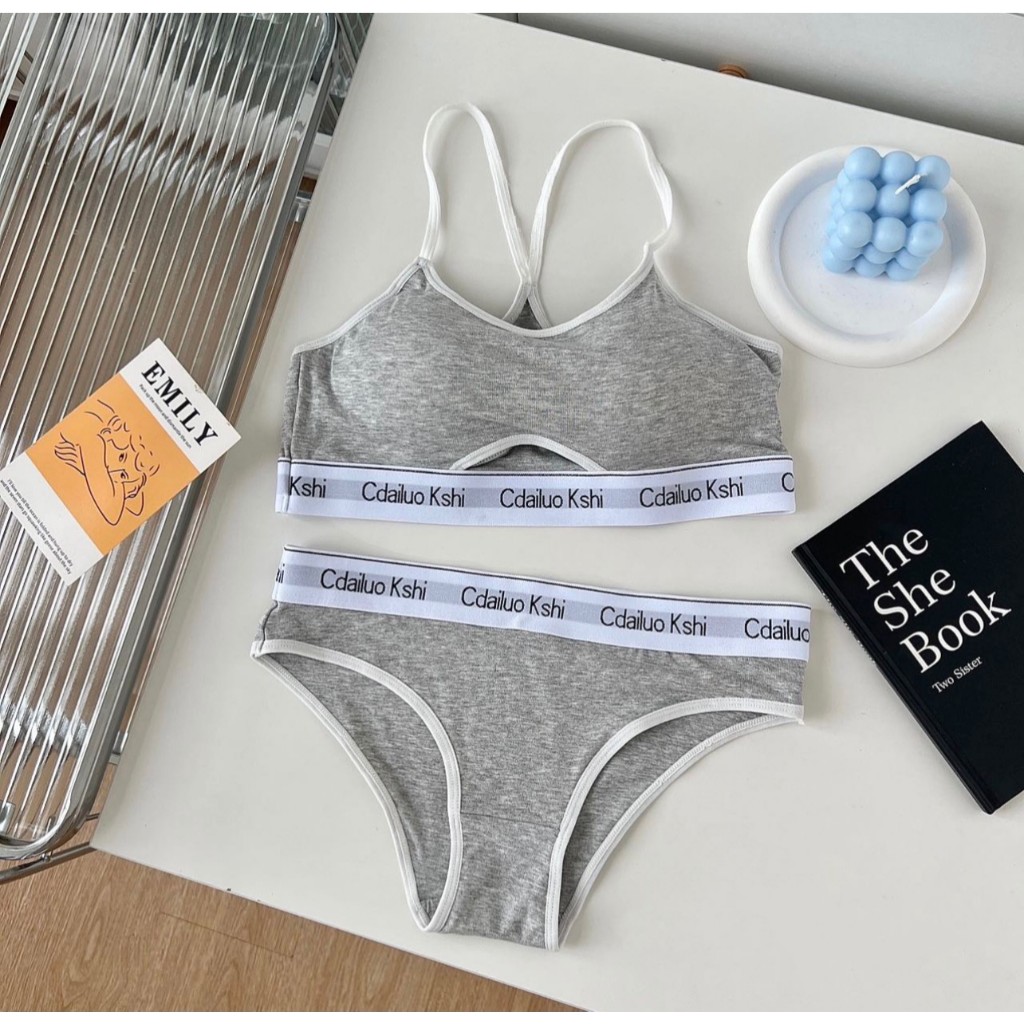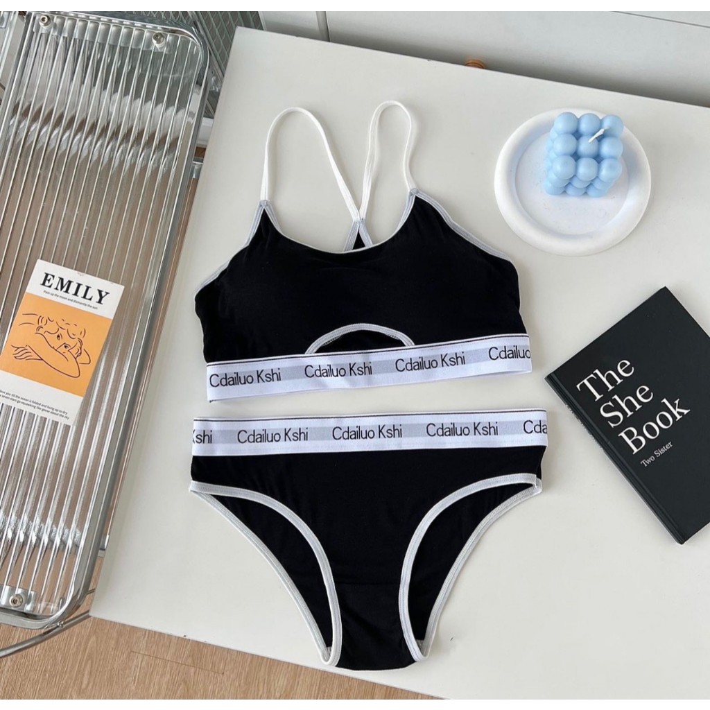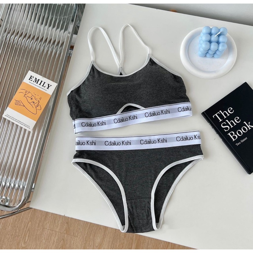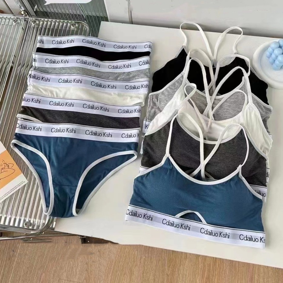 เซ็ตชุดชั้นใน2ชิ้น สำหรับผู้หญิง เสื้อใน+กางเกงใน บราไร้โครง กระชับผิว แนวสปอร์ตใส่สวย ผ้านิ่มใส่สบาย