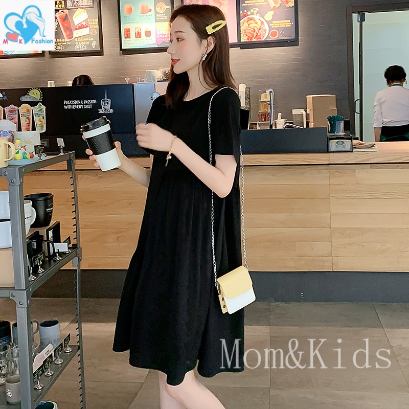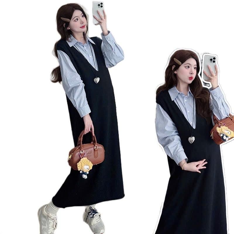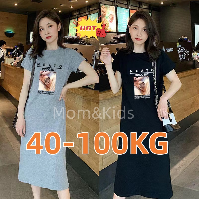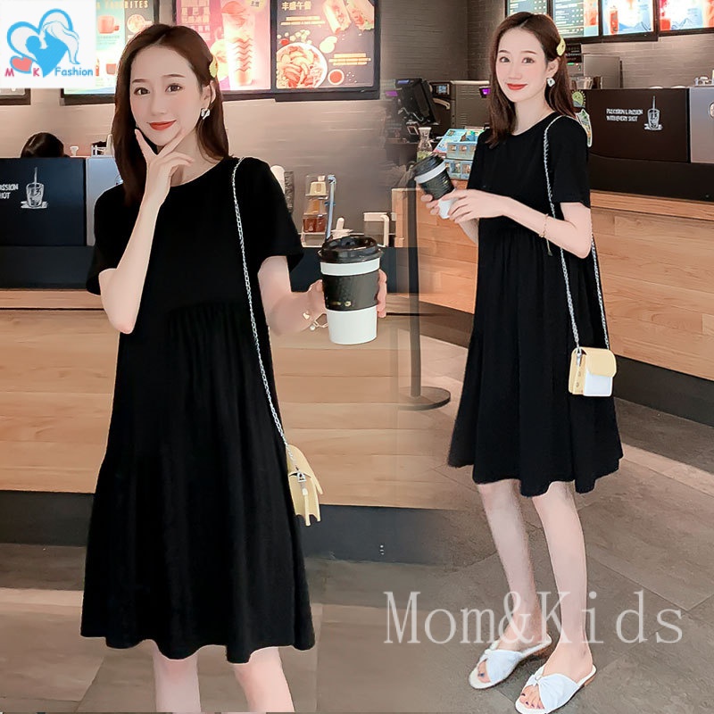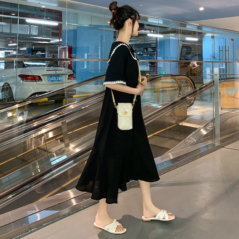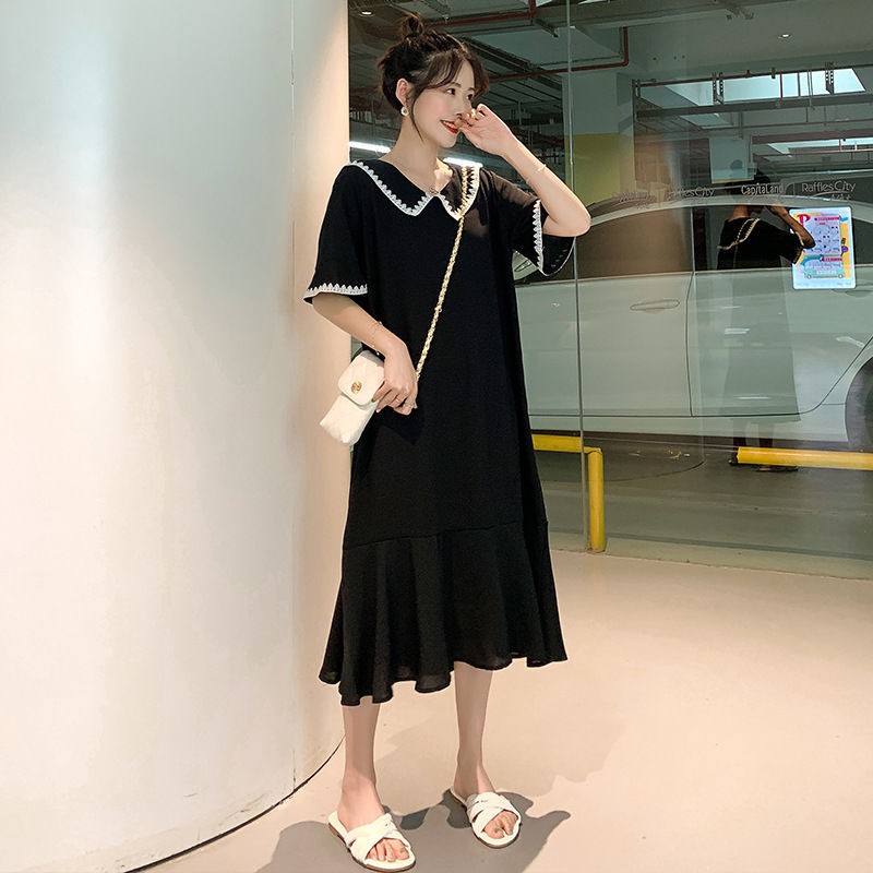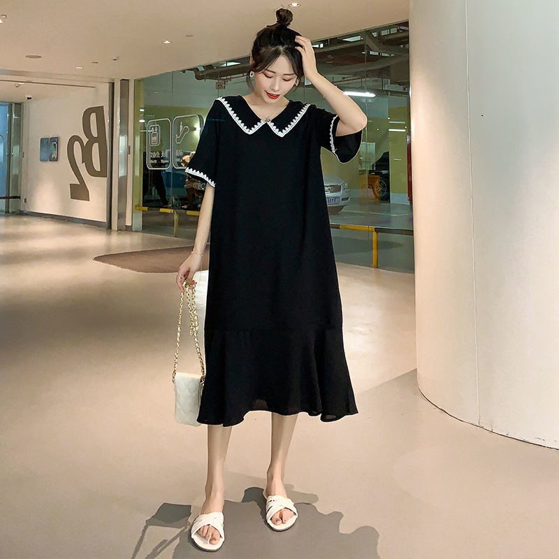 ?เดรสพลัสไซส์เสื้อผ้าคนอ้วนแฟชั่นเกาหลีชุดดำสวมใส่ได้ 100 กกชุดคลุมท้องแฟชั่น