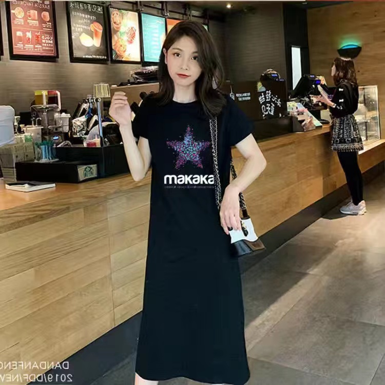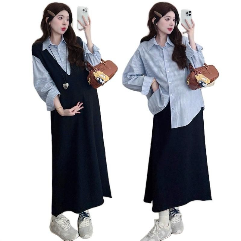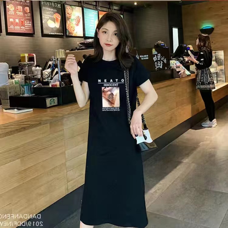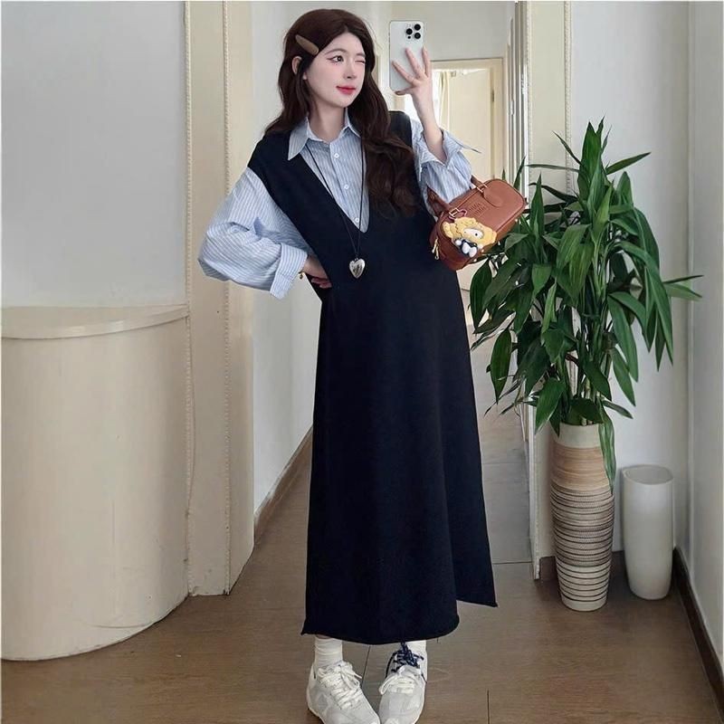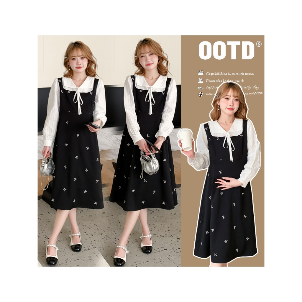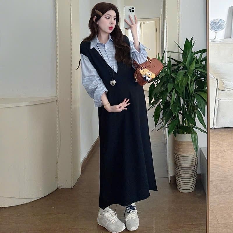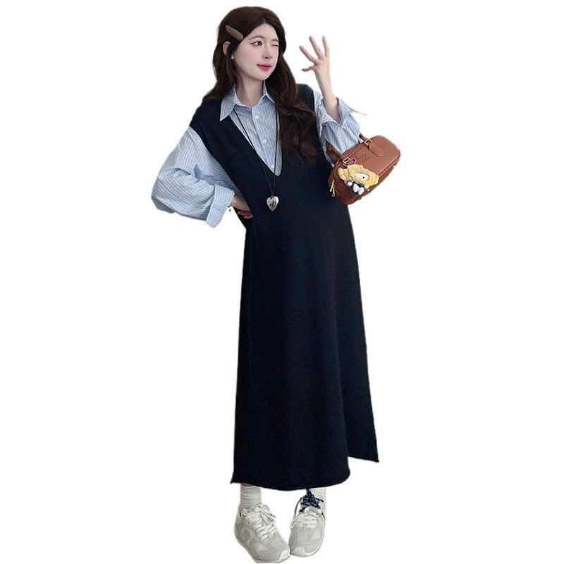 ?เดรสพลัสไซส์เสื้อผ้าคนอ้วนแฟชั่นเกาหลีชุดดำสวมใส่ได้ 100 กกชุดคลุมท้องแฟชั่น