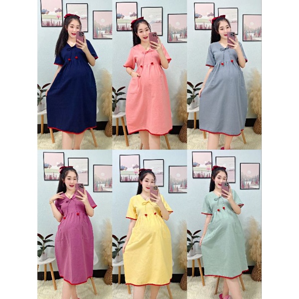 ❗พร้อมส่ง ชุดคลุมท้อง ชุดเดรสคอวีแขนสั้นใส่สบาย ผ้าฝ้ายสีพาสเทลมี12สีให้เลือก คนไม่ท้องก็ใส่ได้จ้า♥