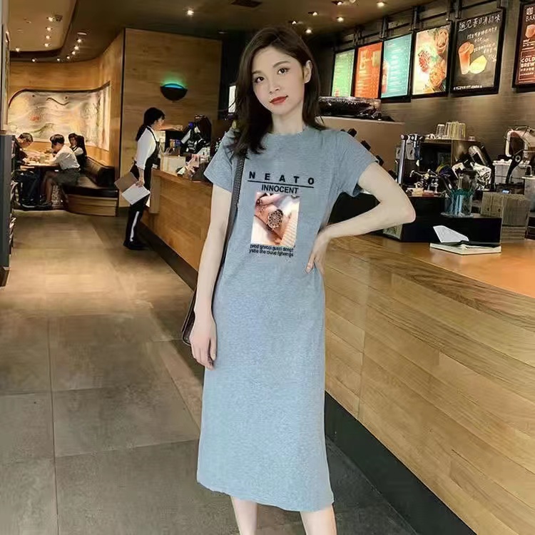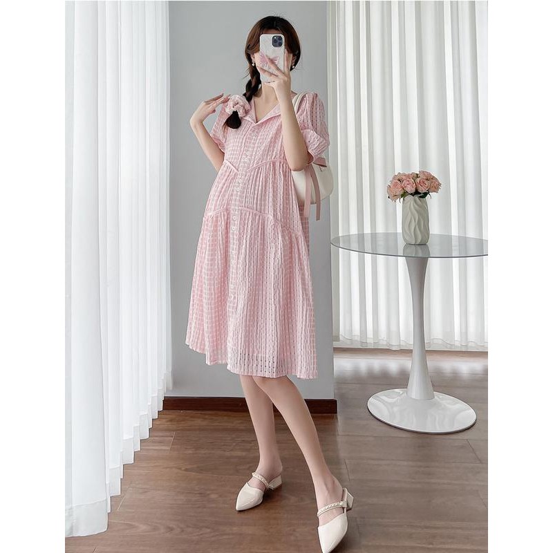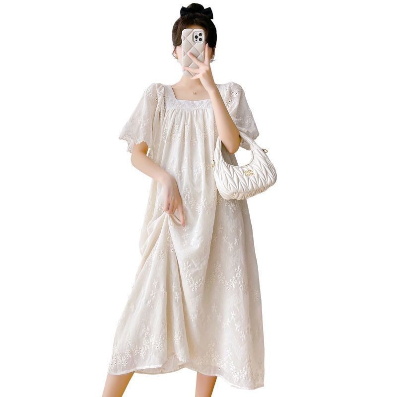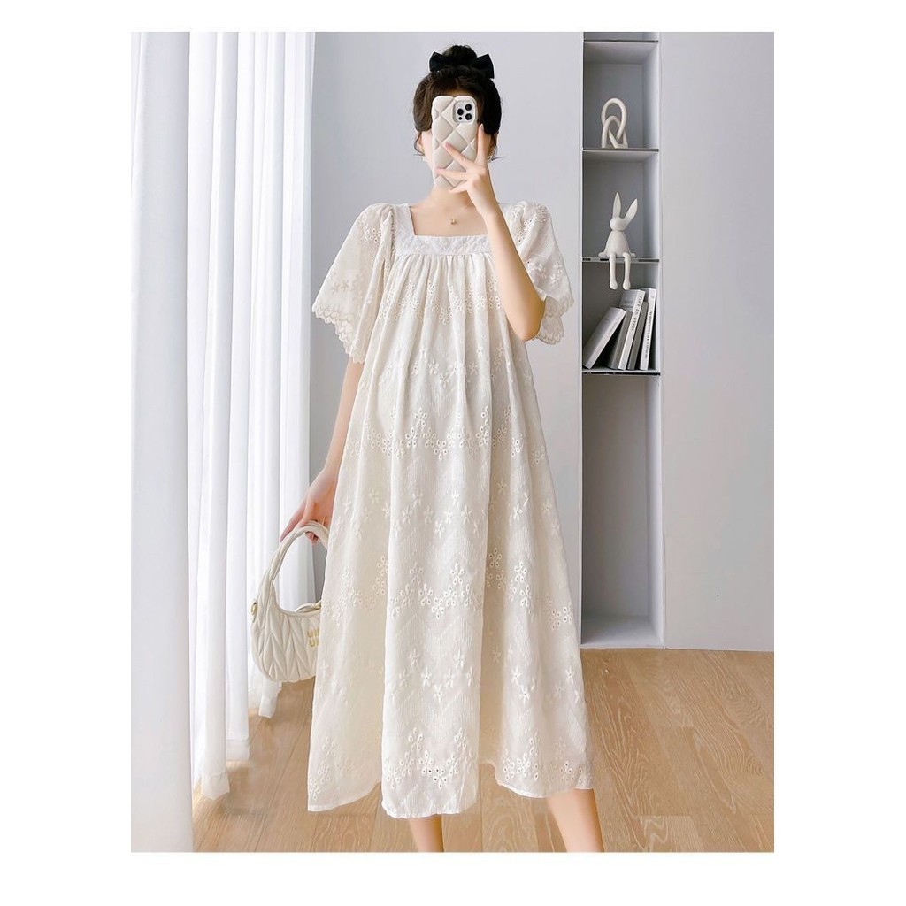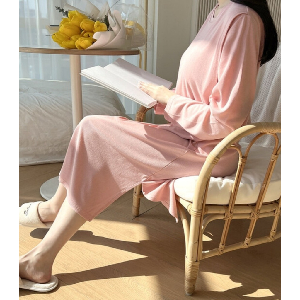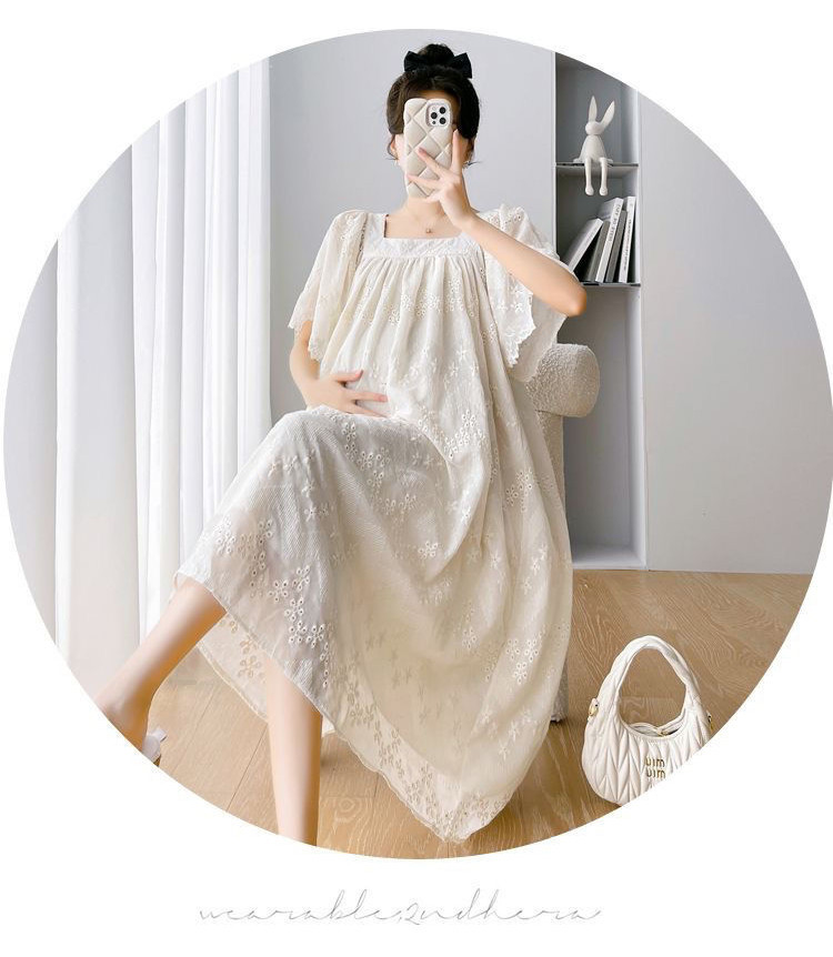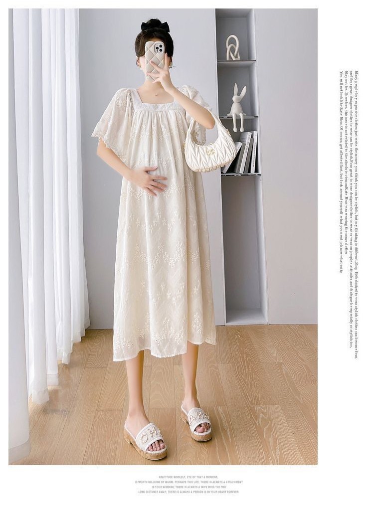 ? ชุดคลุมท้องแฟชั่น เดรสสีแอปริคอท ผ้านุ่ม ทรงหลวม แบบใหม่ กระโปรงยาว