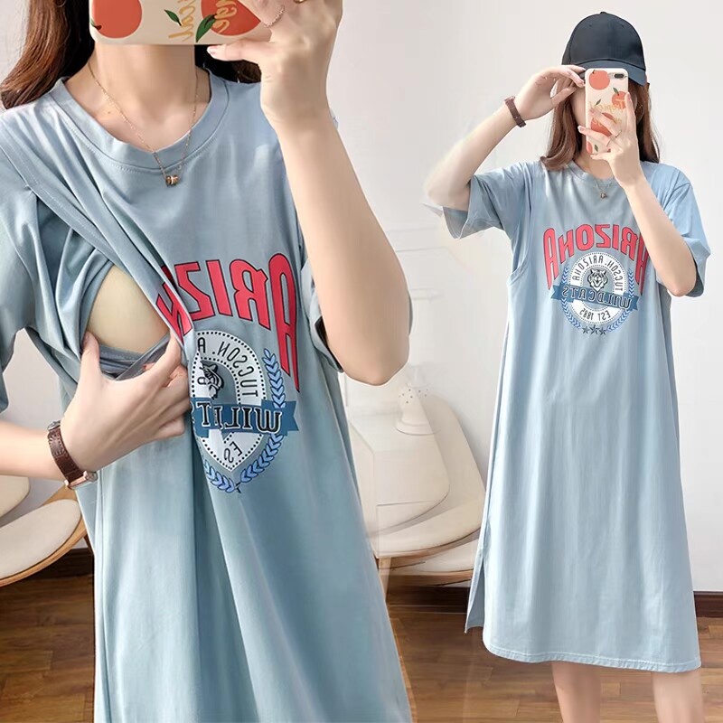 Mom & Kids M-3XL พลัสไซซ์ ชุดคลุมท้อง พยาบาล ชุดนอน ชุดคลุมท้อง ฤดูร้อน แขนสั้น Seluar Mengandung
