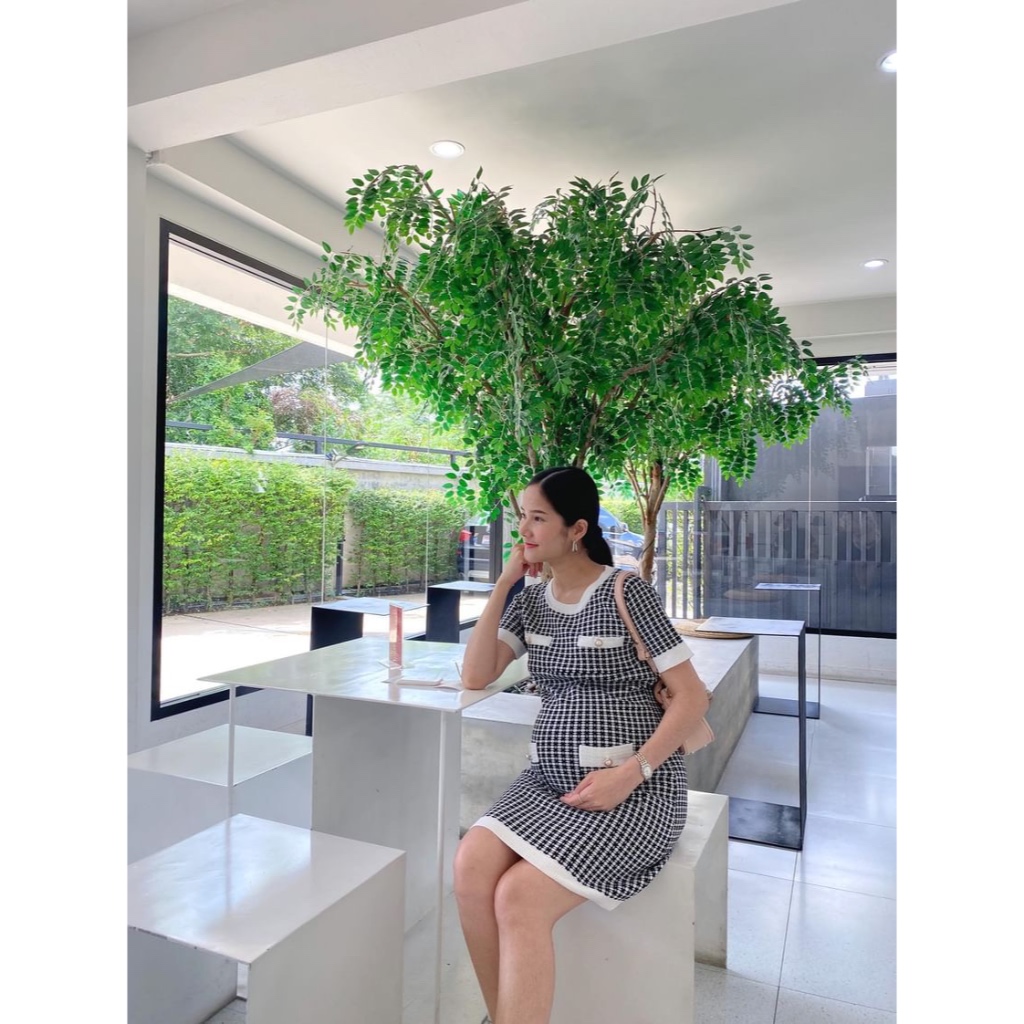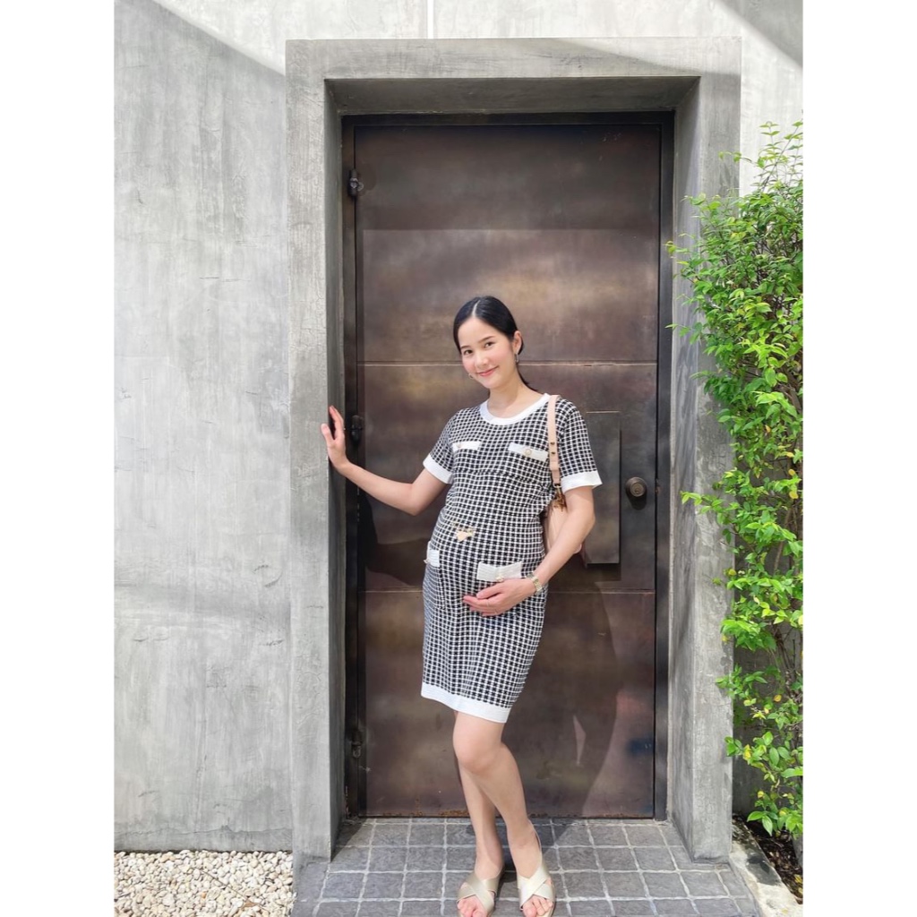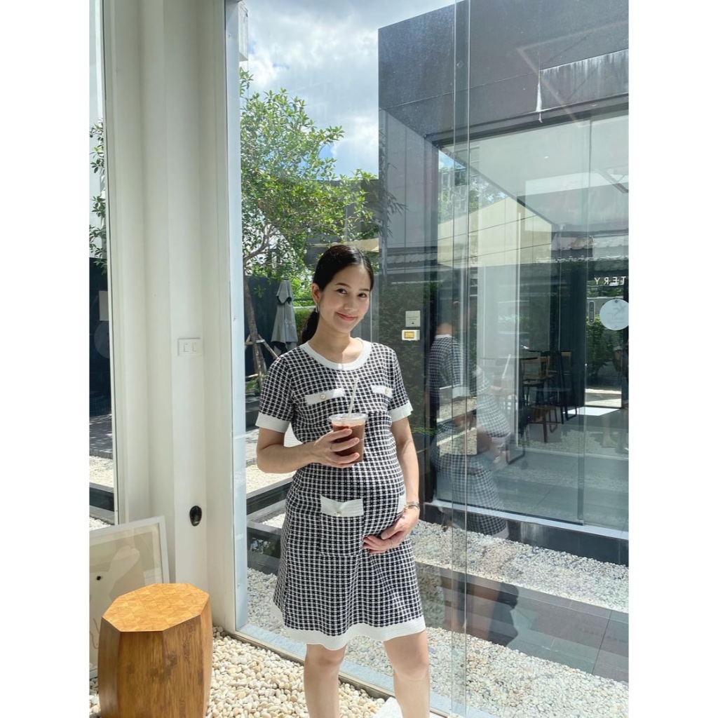 AA4115 เดรสคลุมท้องแฟชั่น ผ้าคอตตอนลายตาราง ดีเทลสามารถใส่ได้สองแบบ เก๋มาก ๆค่ะชุดนี้ มีซับในทั้งชุดจ้า (งานแฟชั่น)