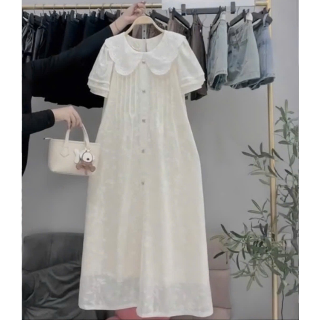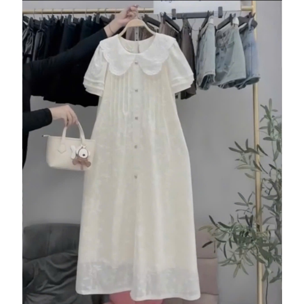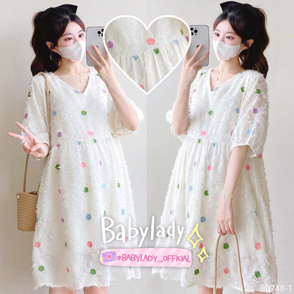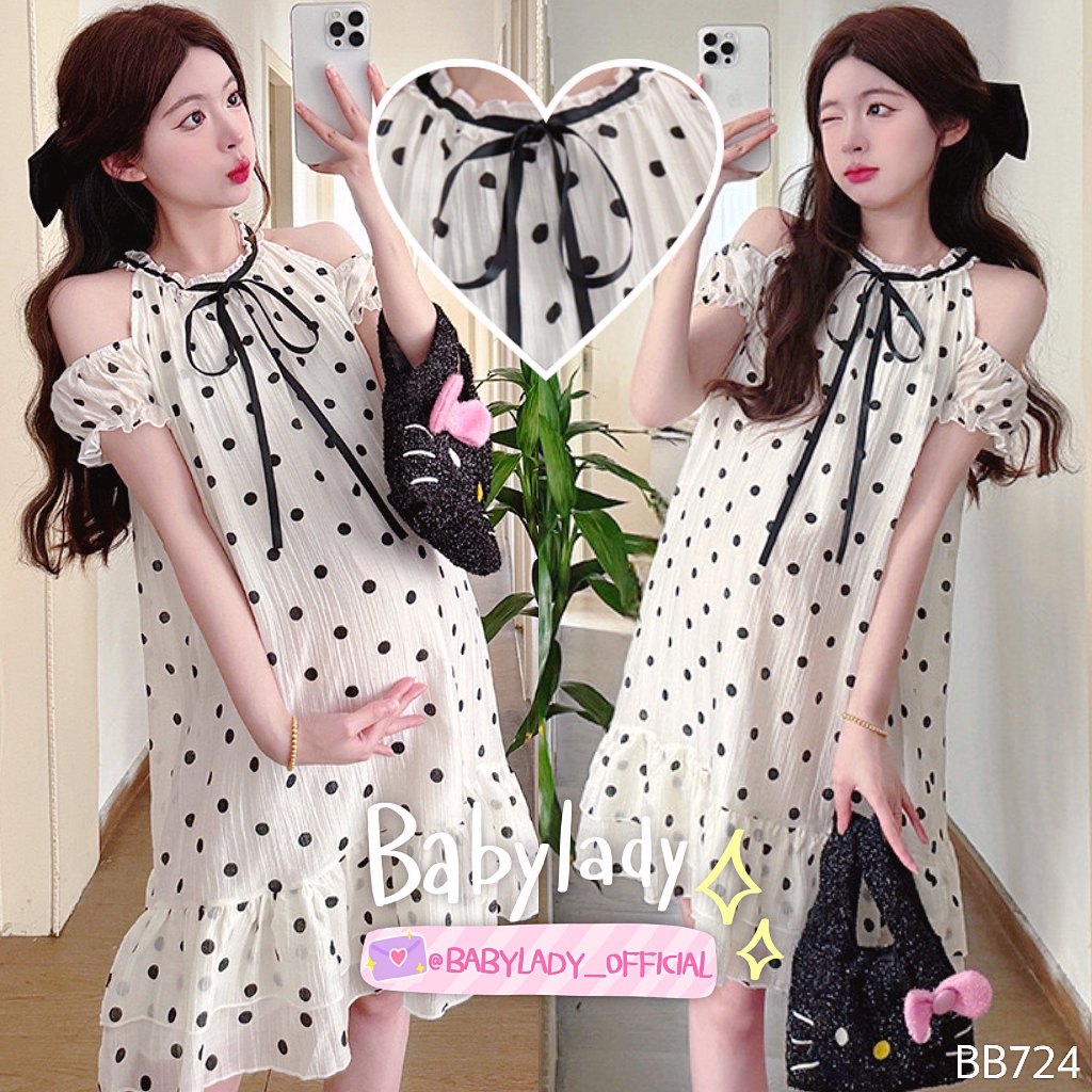 BB 724 **ล็อตใหม่สีครีมขาว** ชุดคลุมท้อง ชุดให้นม BABYLADY ผ้าไหมญี่ปุ่น เปิดไหล่ มีซิบซ่อนแนวตั้ง