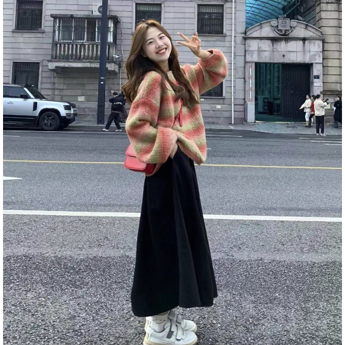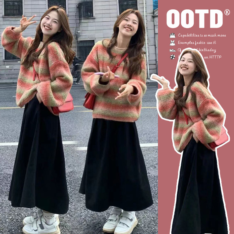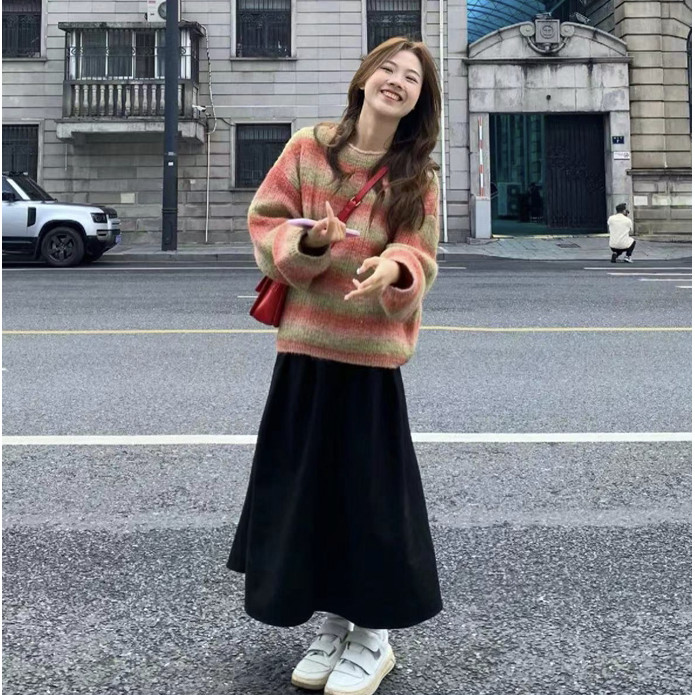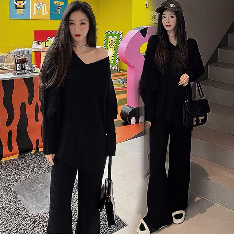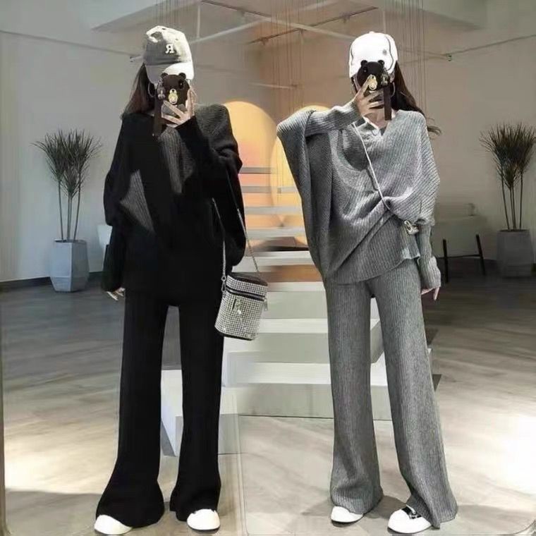ชุดคลุมท้อง ต้นฤดูใบไม้ร่วงรูปแบบใหม่เฉพาะแขนค้างคาวเสื้อกันหนาวเสื้อกันหนาวกางเกงขากว้างสบายๆฤดูใบไม้ผลิฤดูใบไม้ร่วงสุภาพสตรีสองชิ้นเสื้อผ้าสตรี[พร้อมสต