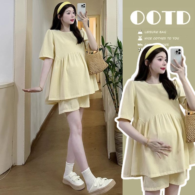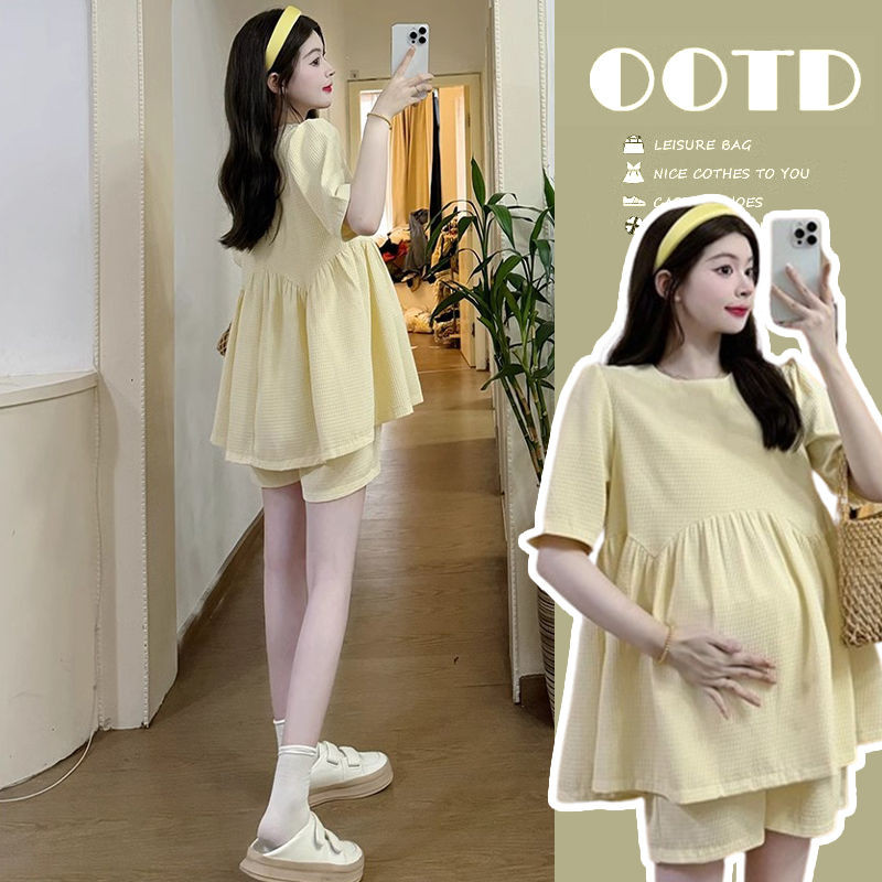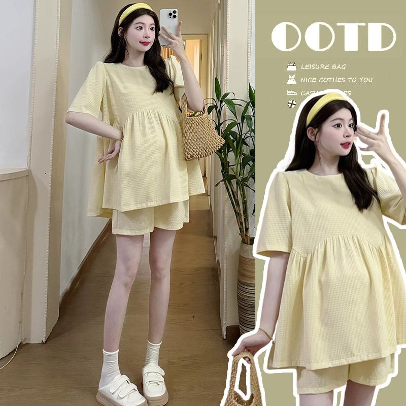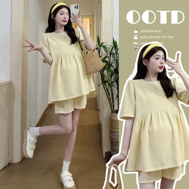 ?✨ชุดคลุมท้อง ชุด2ชิ้นสำหรับหญิงตั้งครรภ์ เสื้อ+กางเกงเลกกิ้ง ผ้านุ่ม ใส่สบาย ใส่เที่ยวทำงานได้⭐️ปรับเอวได้ตามอายุครรภ์